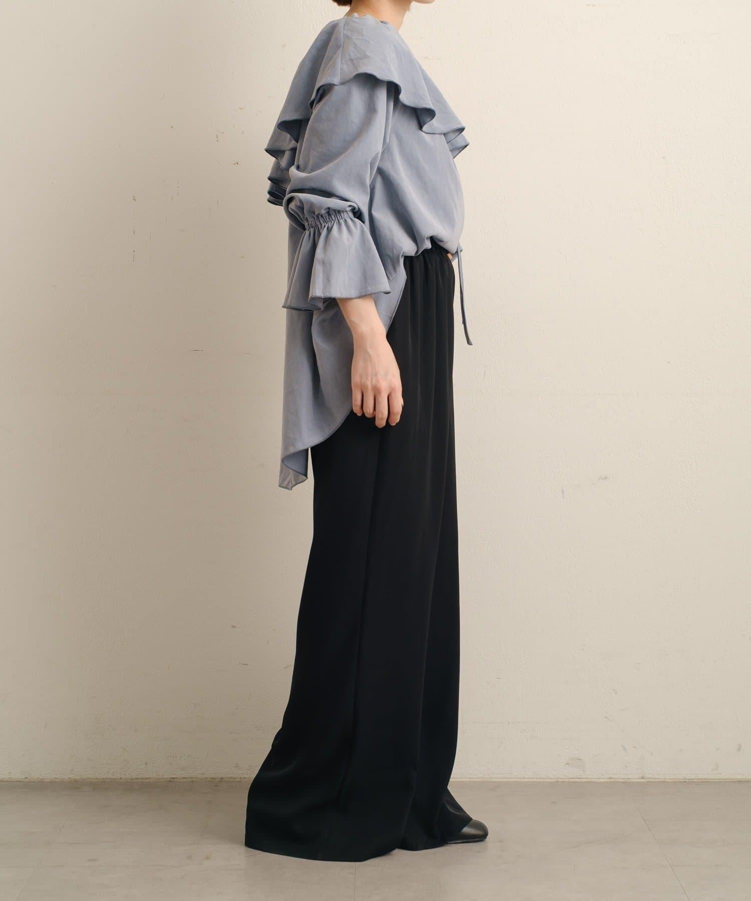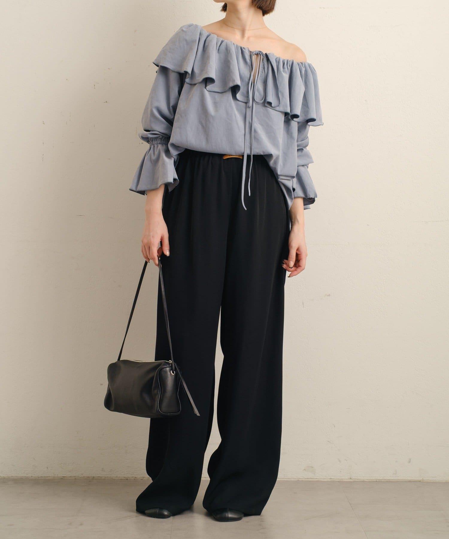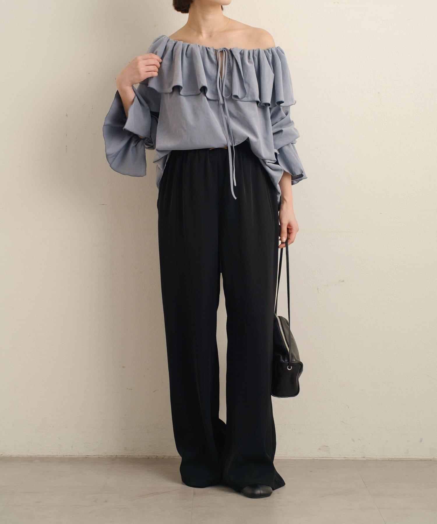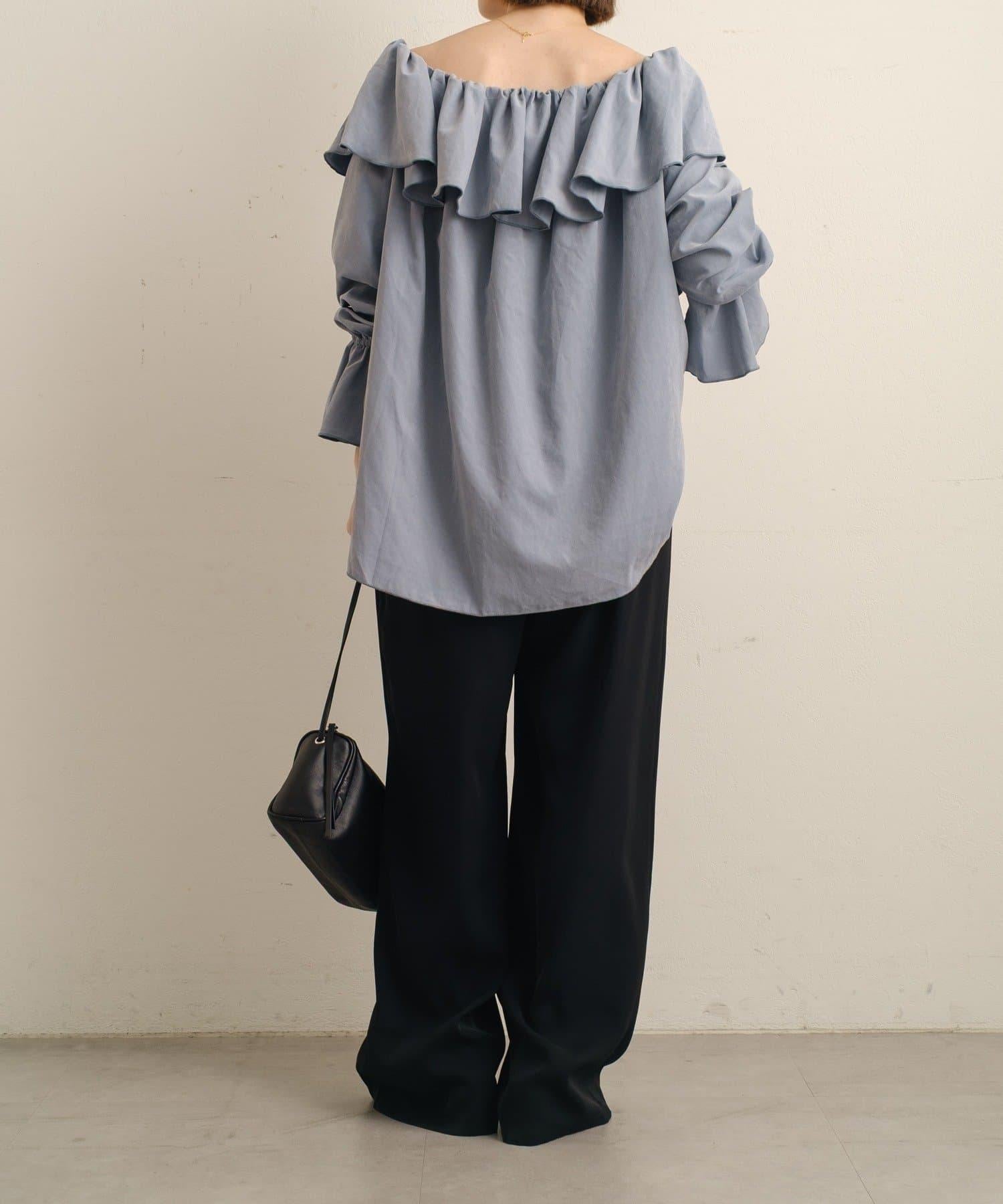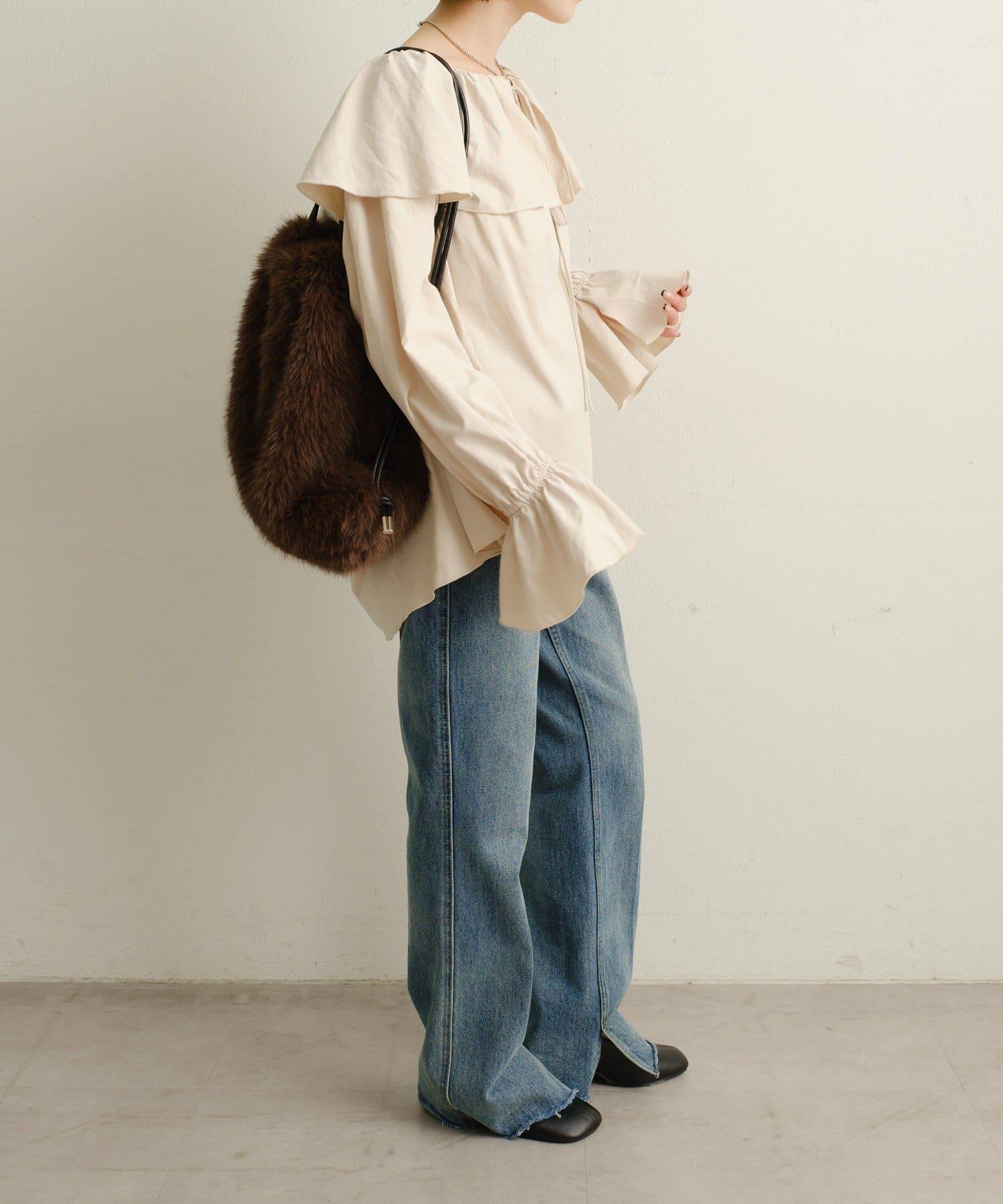 這款荷葉邊上衣的大荷葉邊設計,給人一種成熟可愛的感覺。