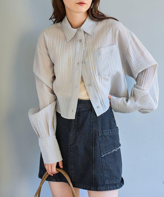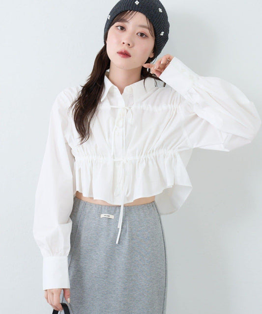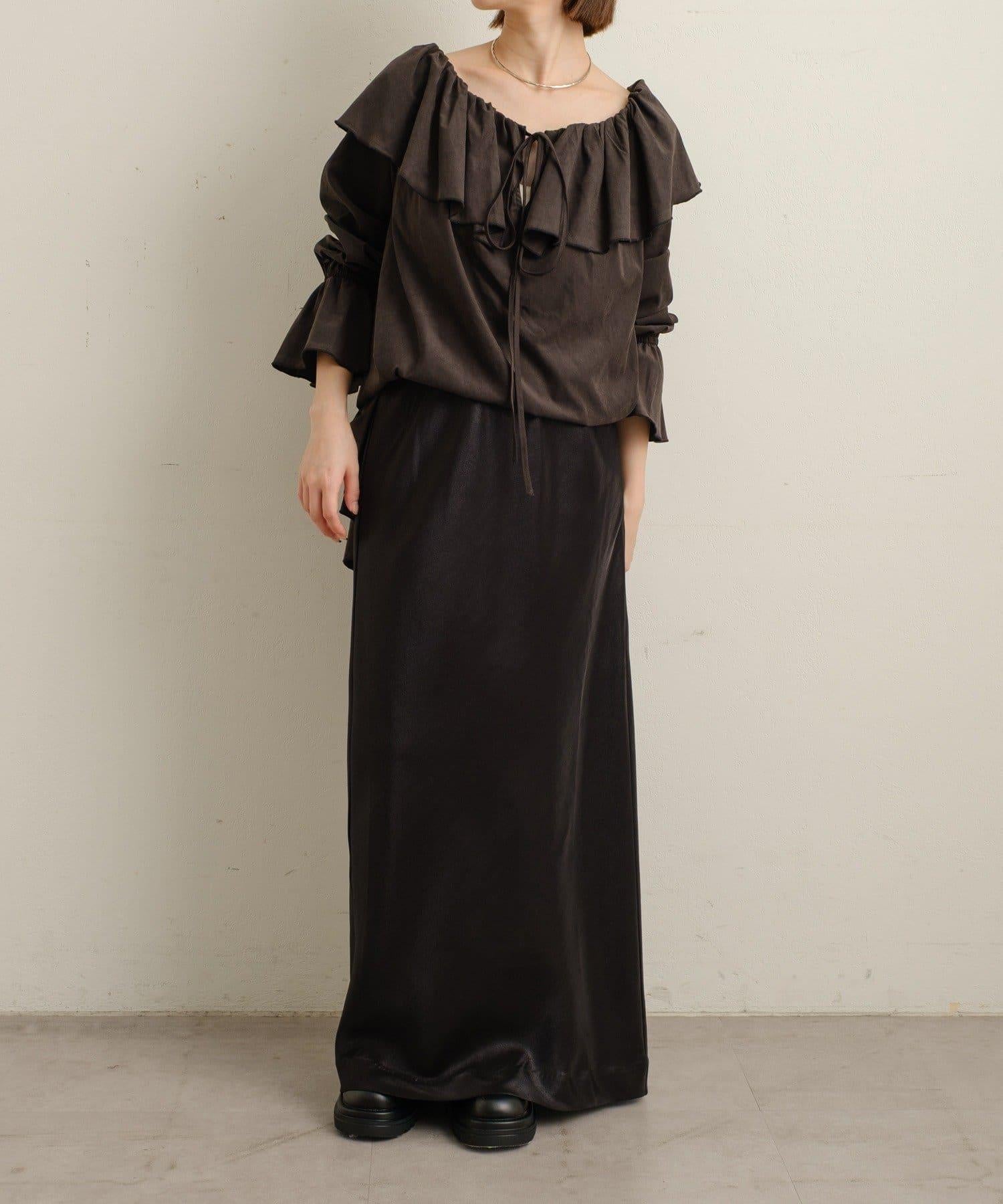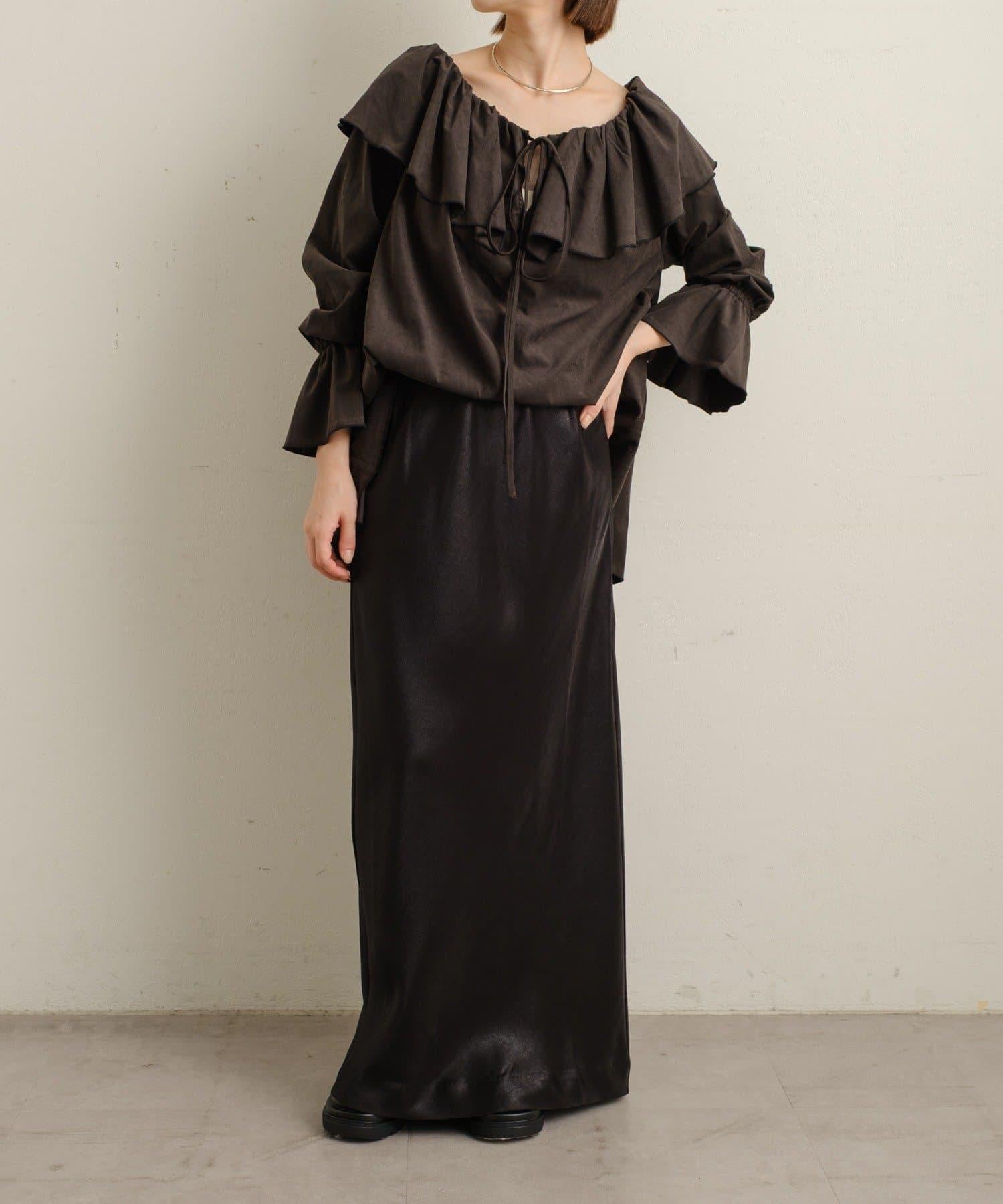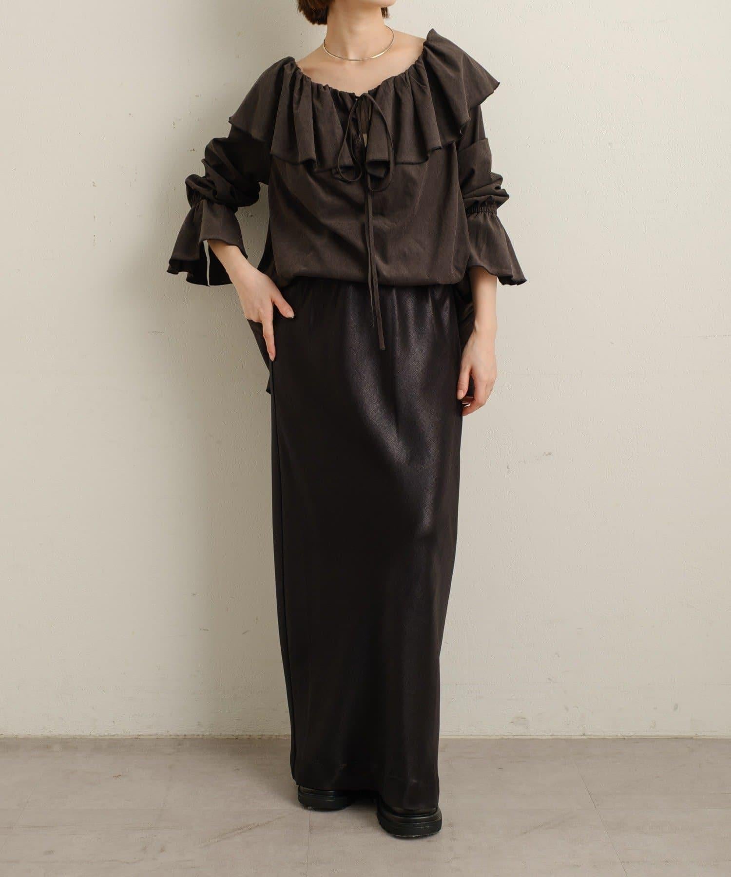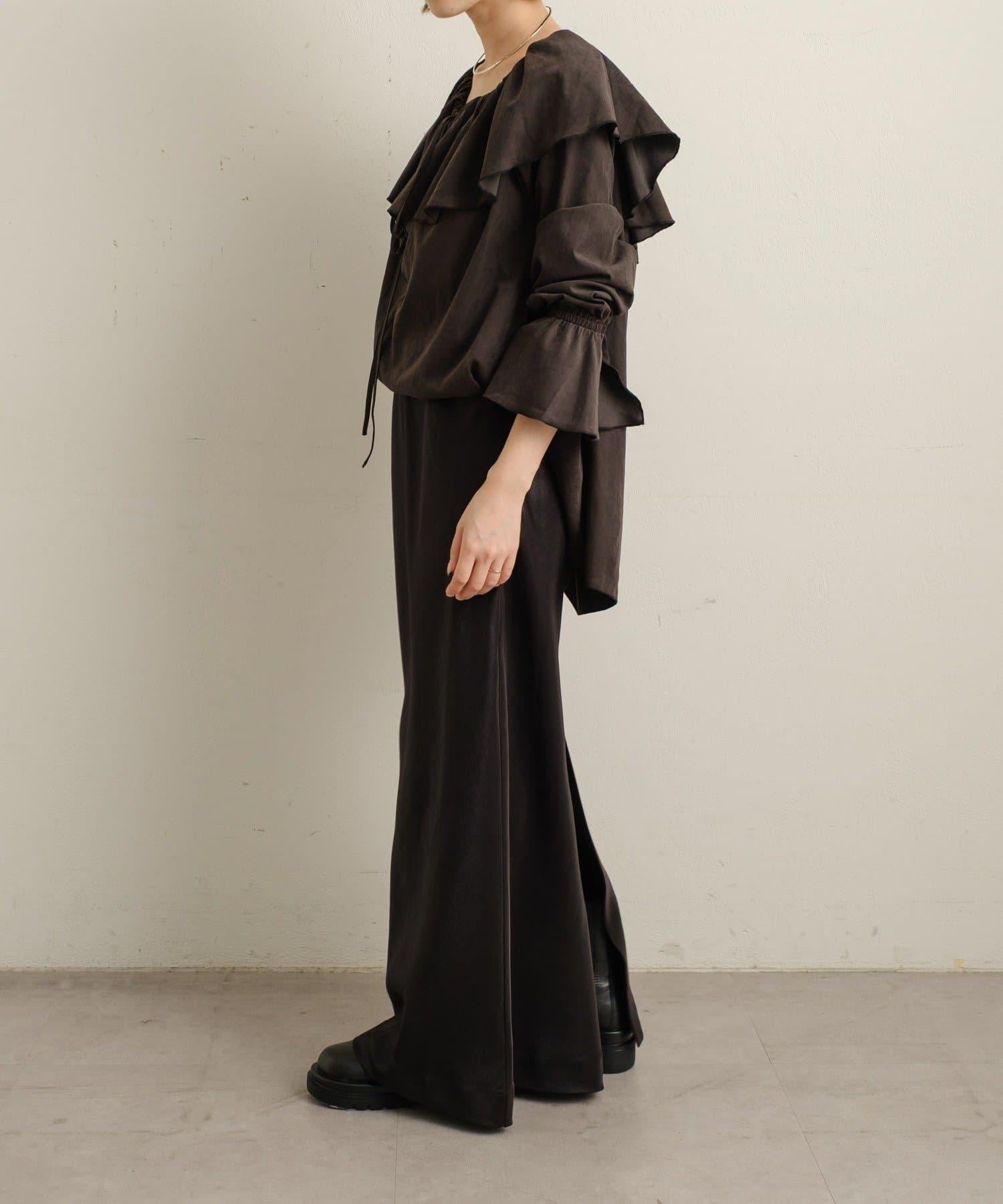 這款荷葉邊上衣的大荷葉邊設計,給人一種成熟可愛的感覺。