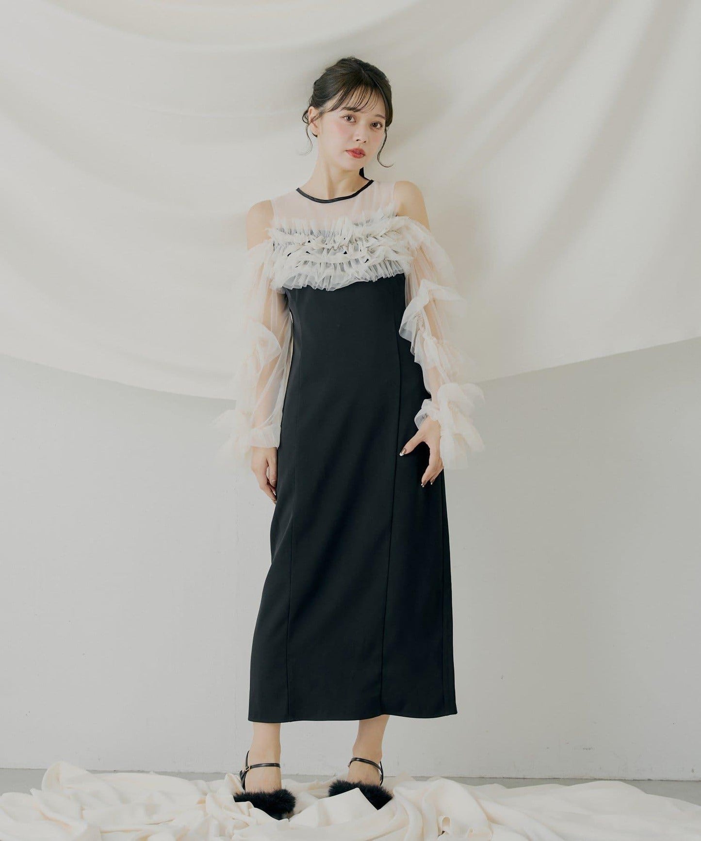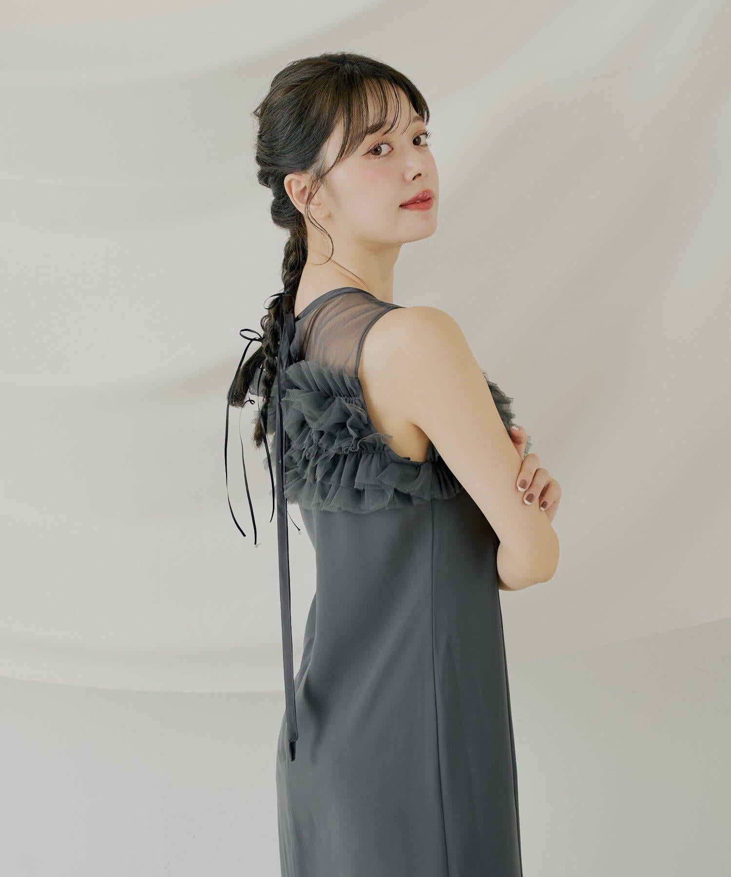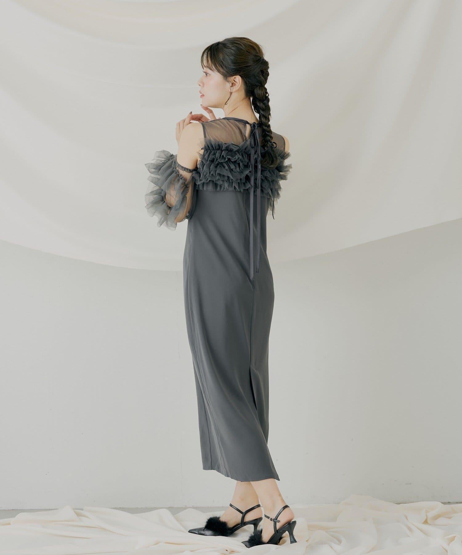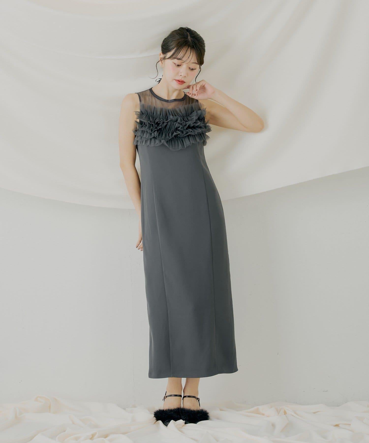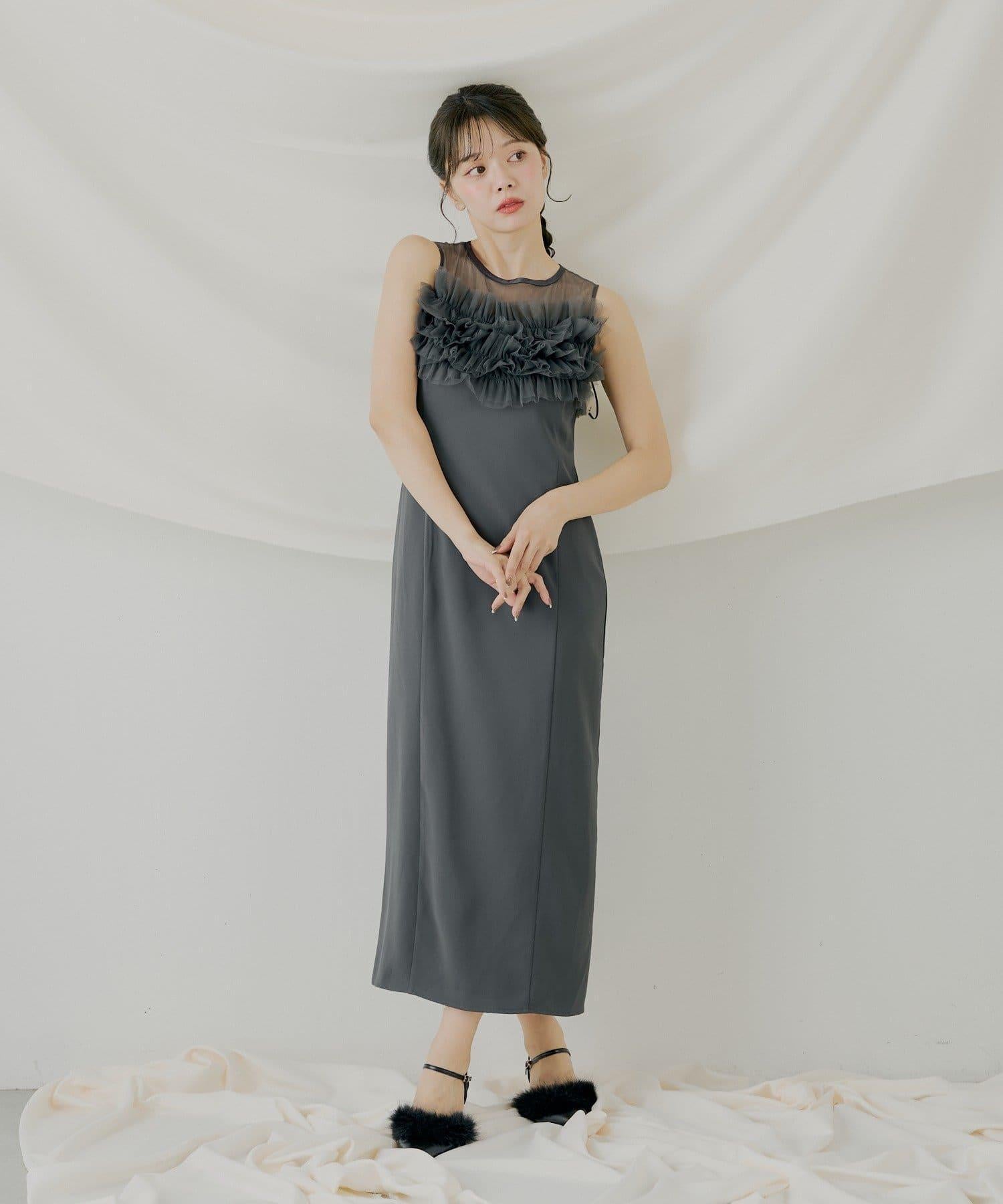 荷葉邊設計修身長款連衣裙【SALON by Chico】