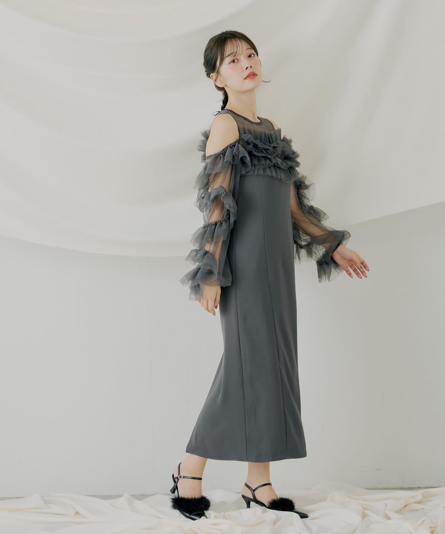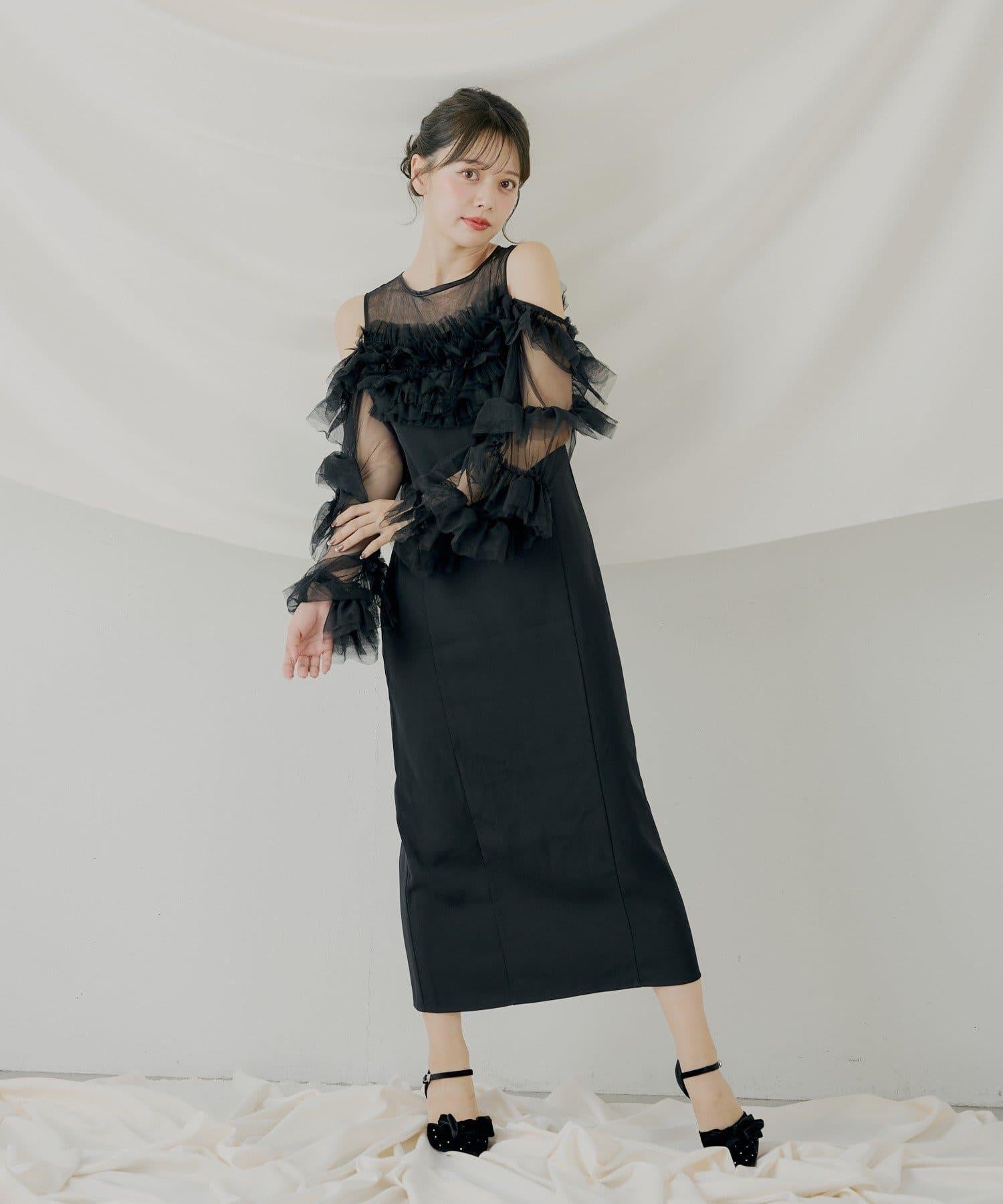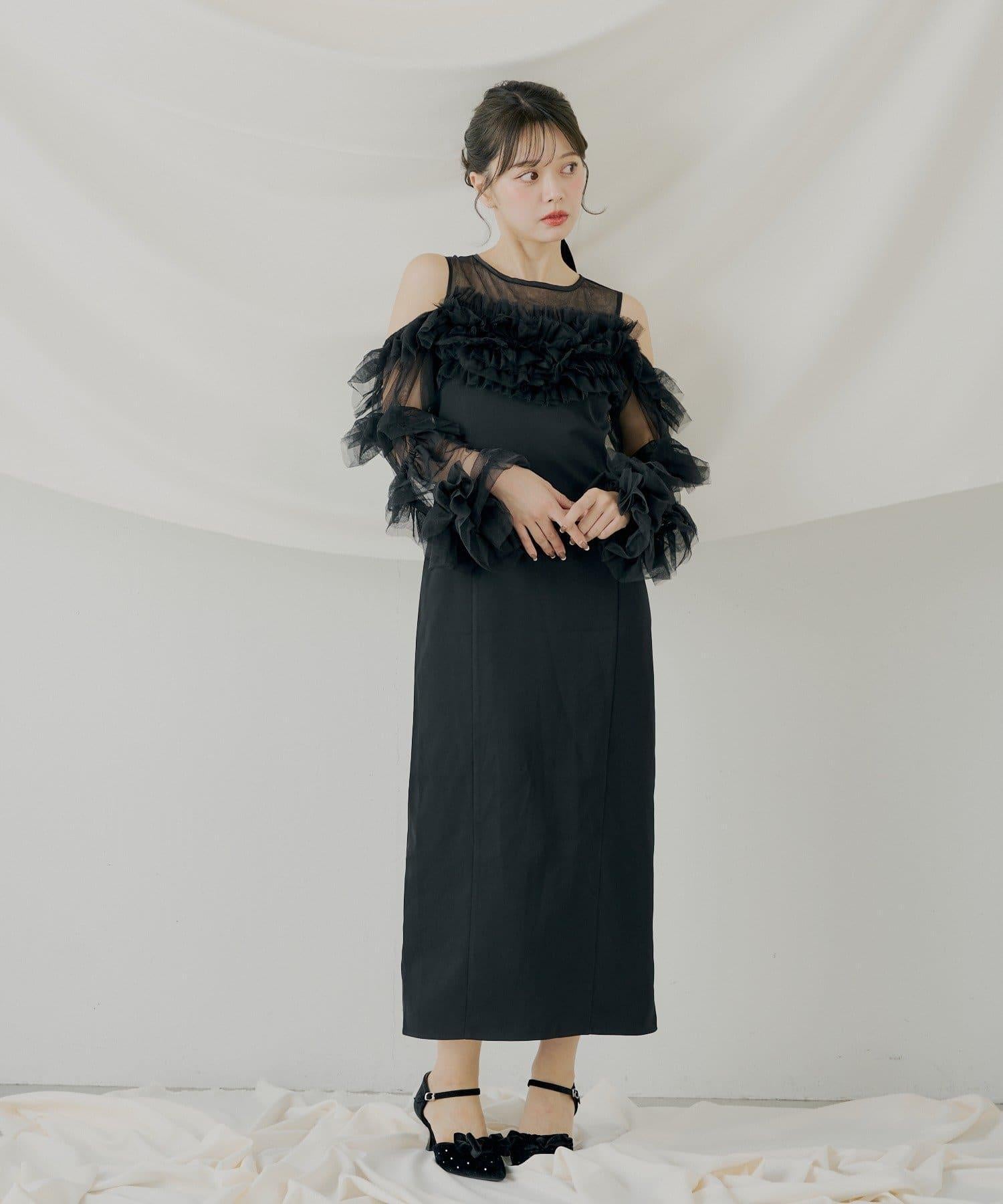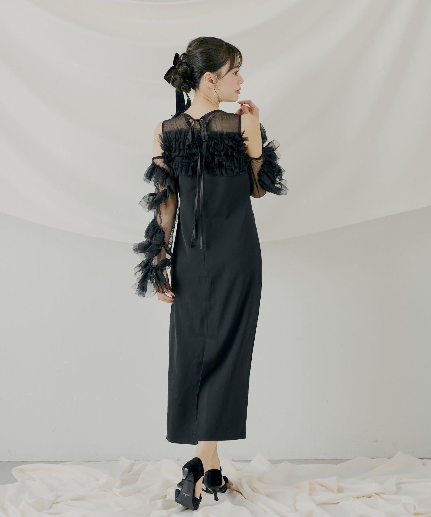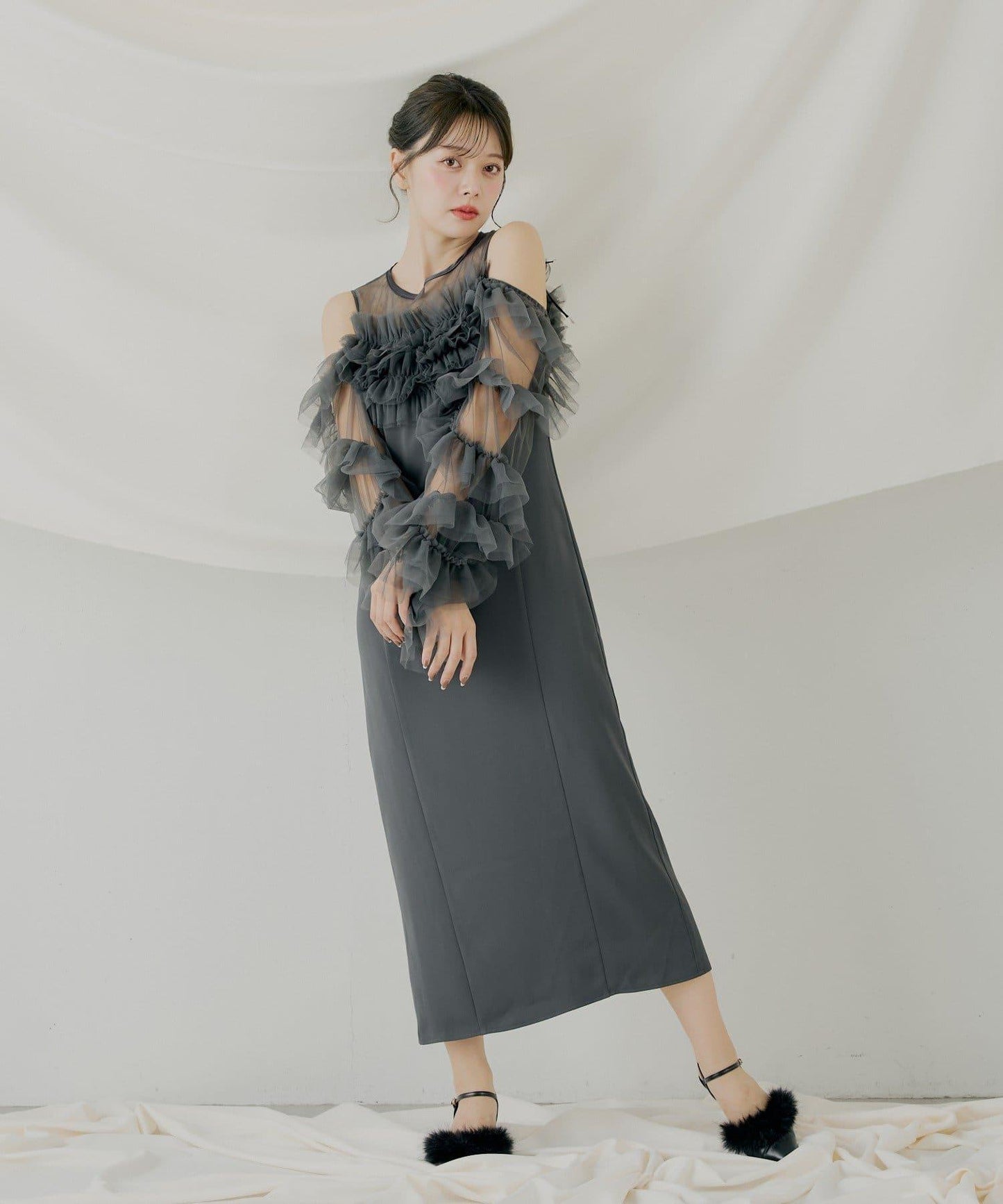 荷葉邊設計修身長款連衣裙【SALON by Chico】