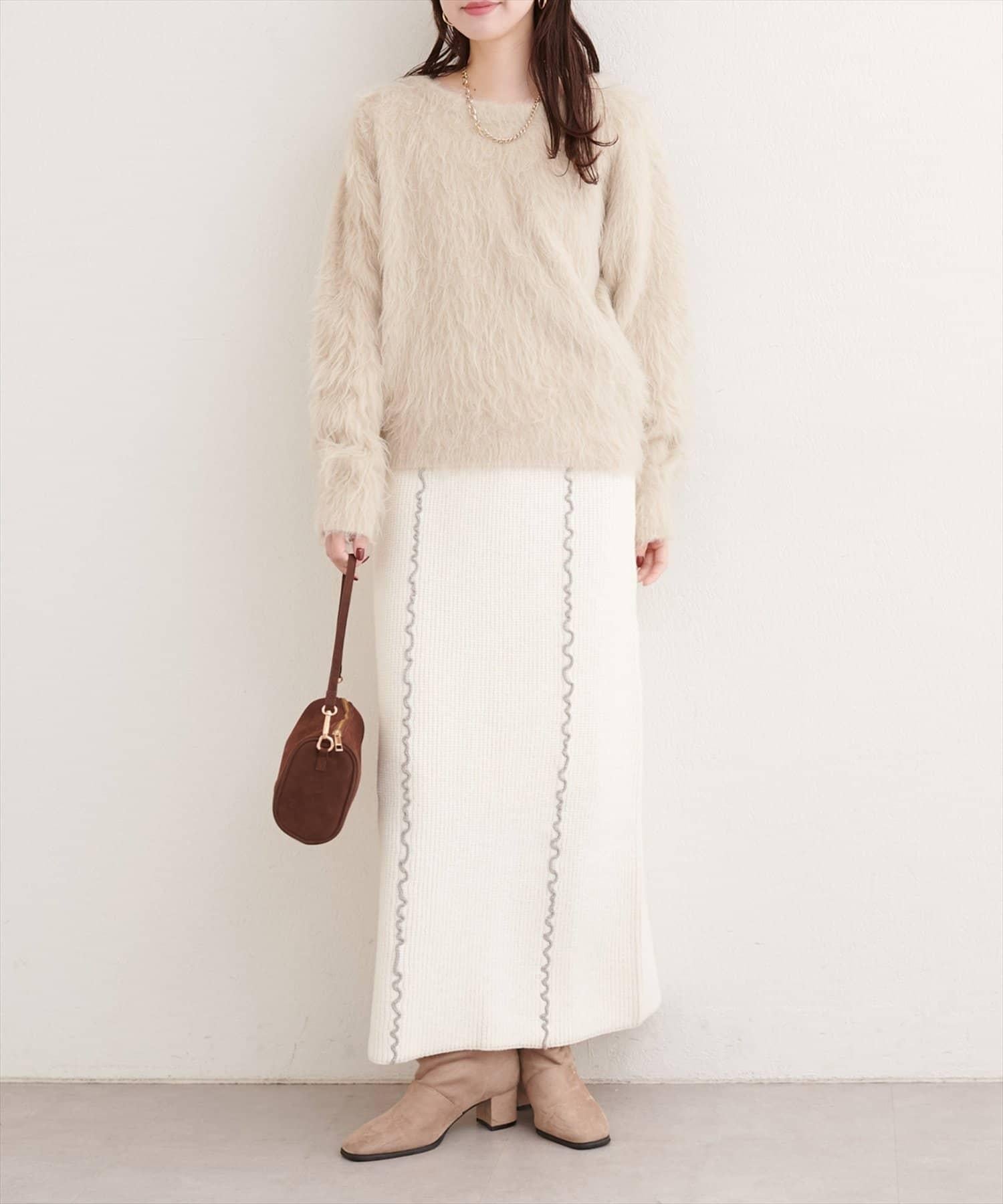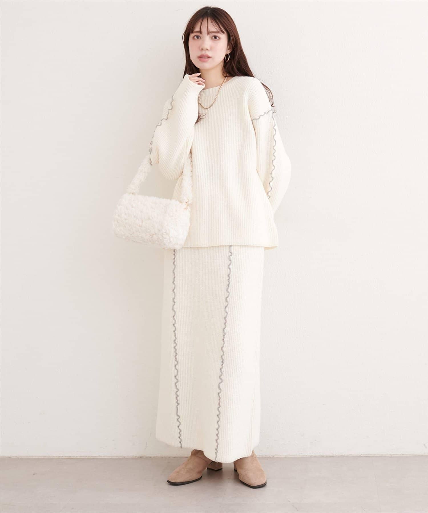 0352051590 與 Mellow 針織套頭衫搭配,打造精緻的針織造型。