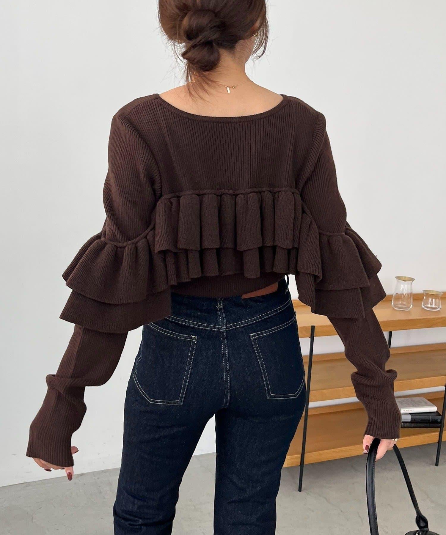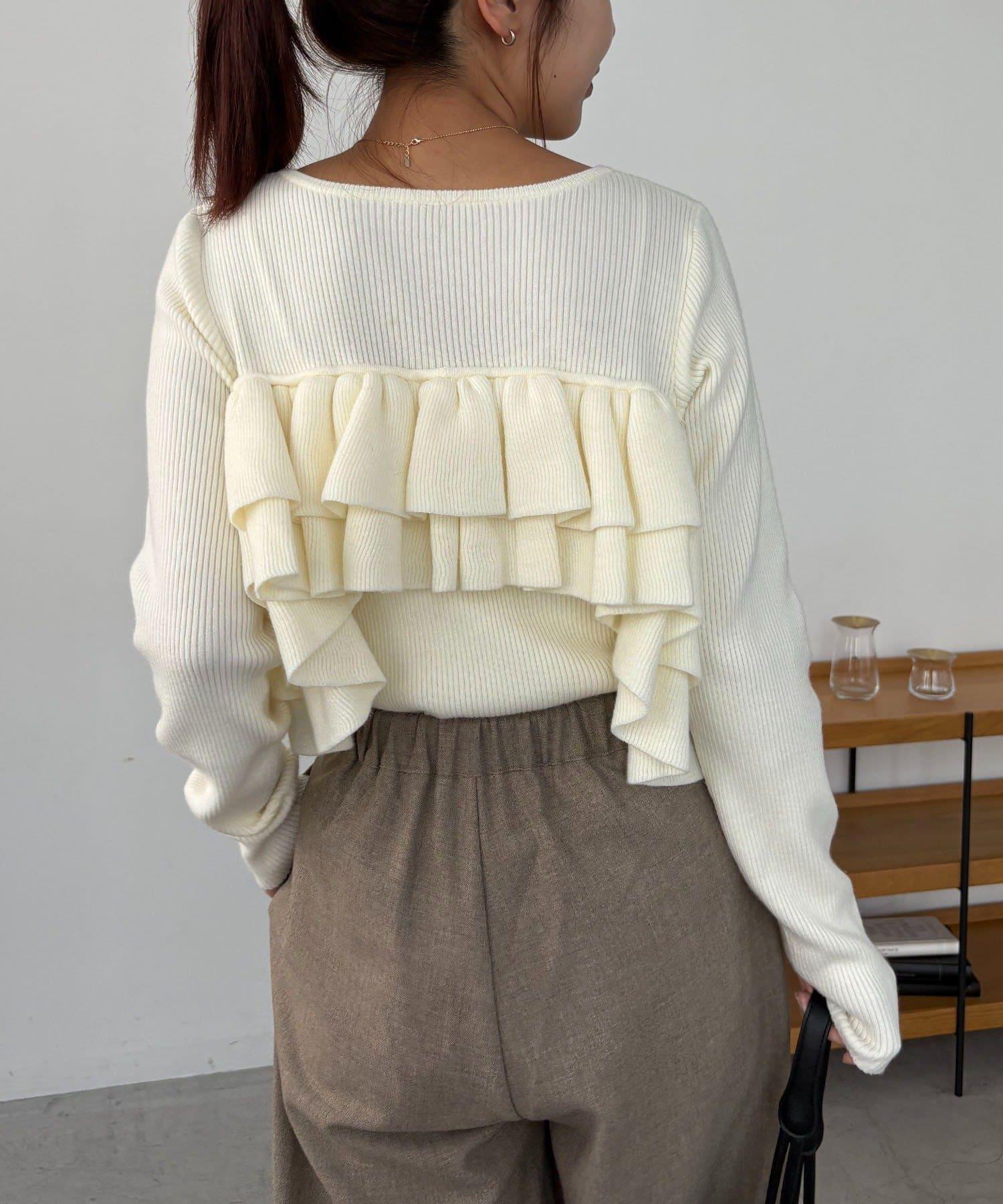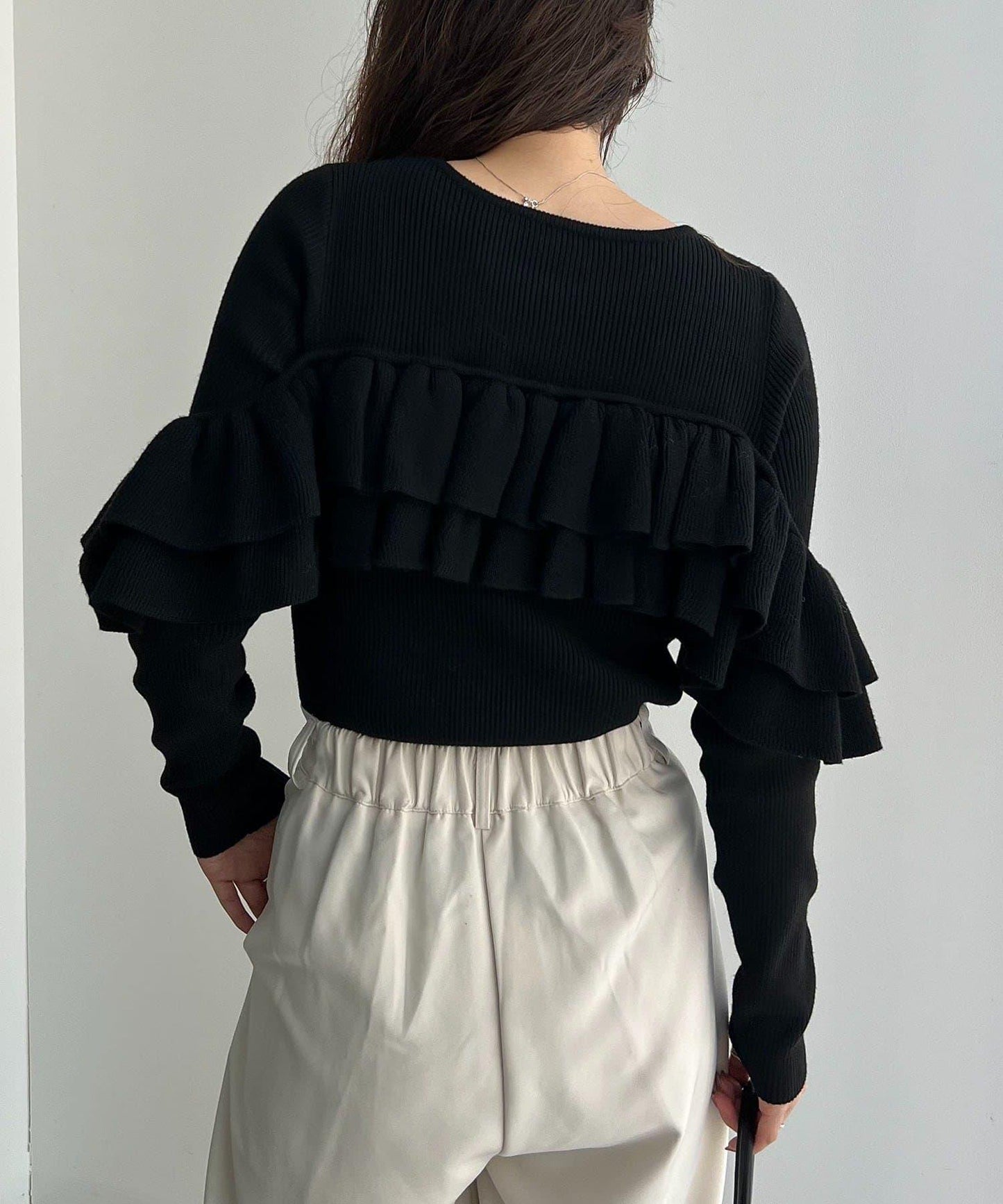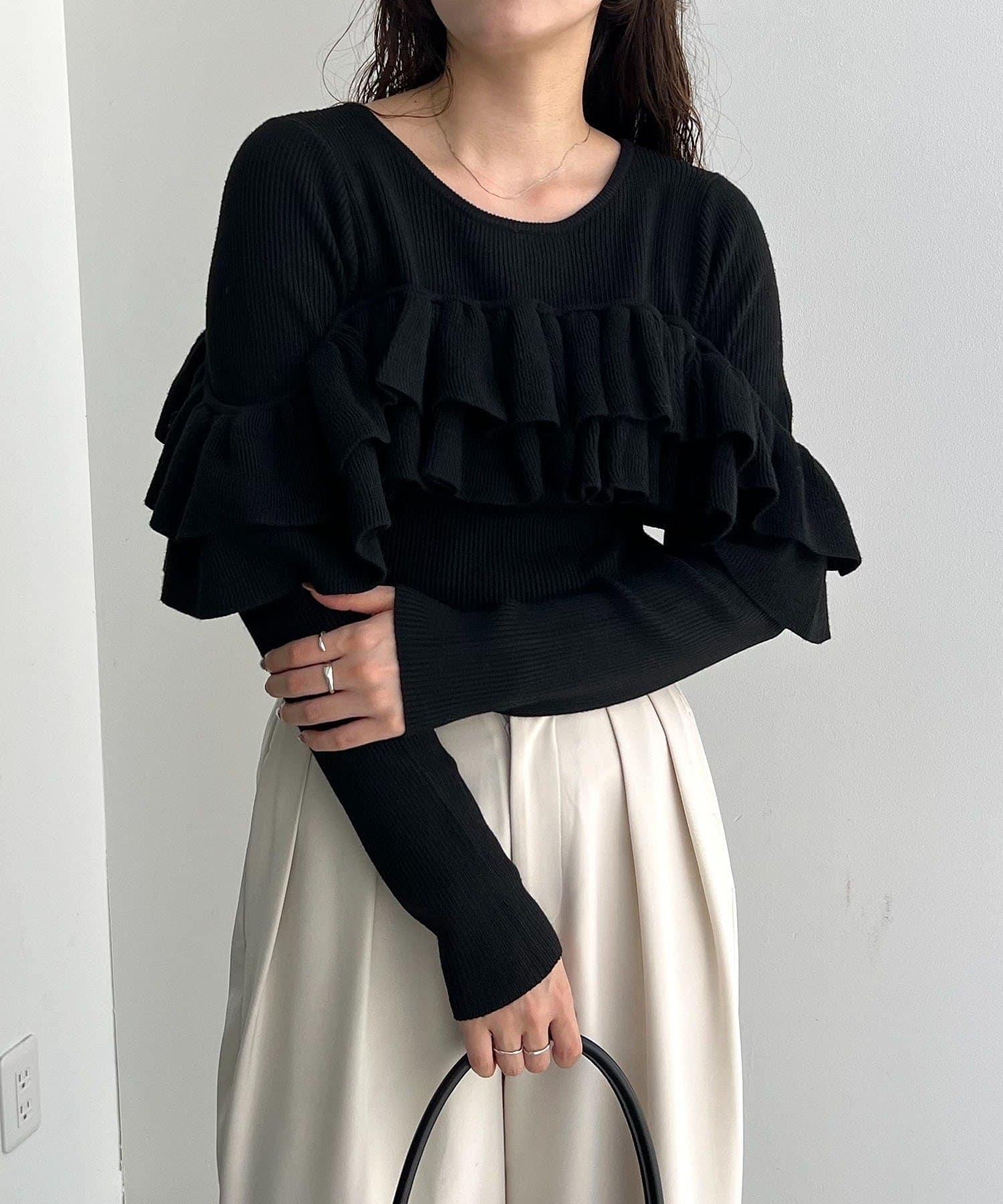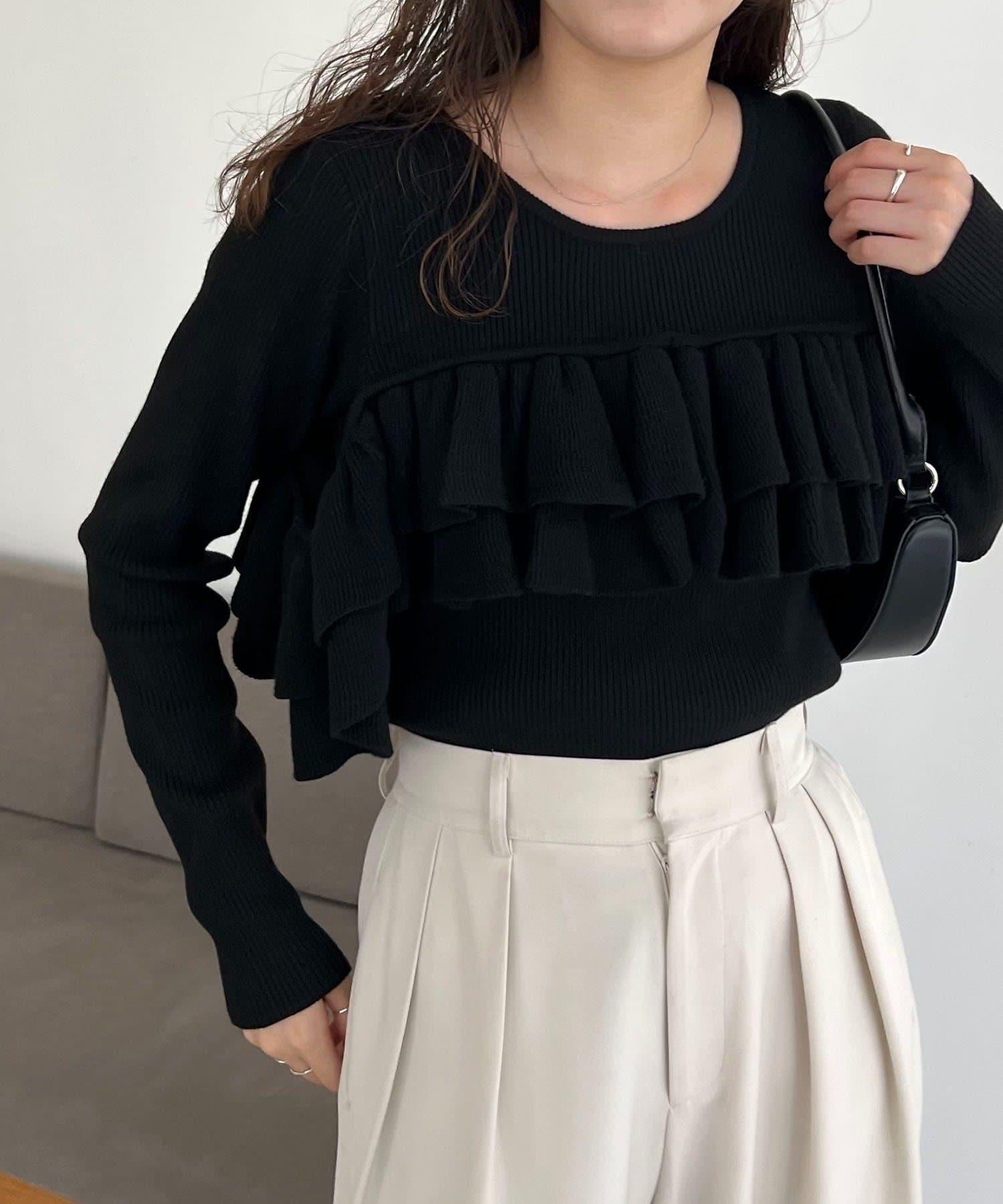 帶有荷葉邊的針織衫,設計嫵媚動人。