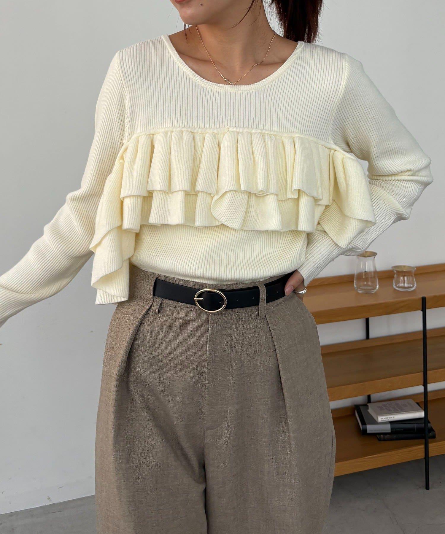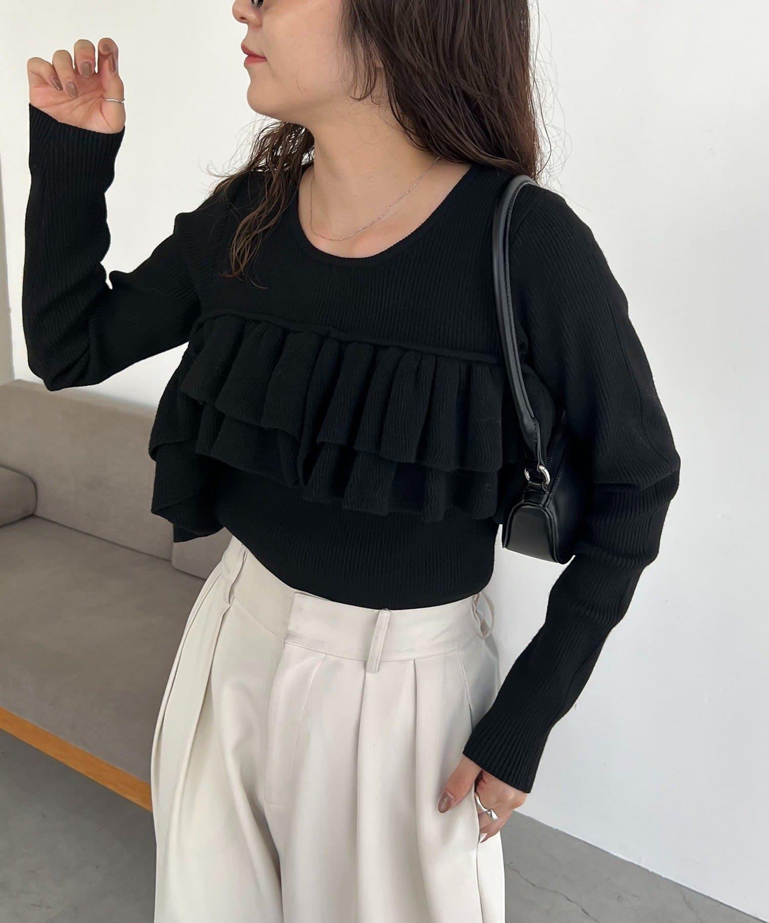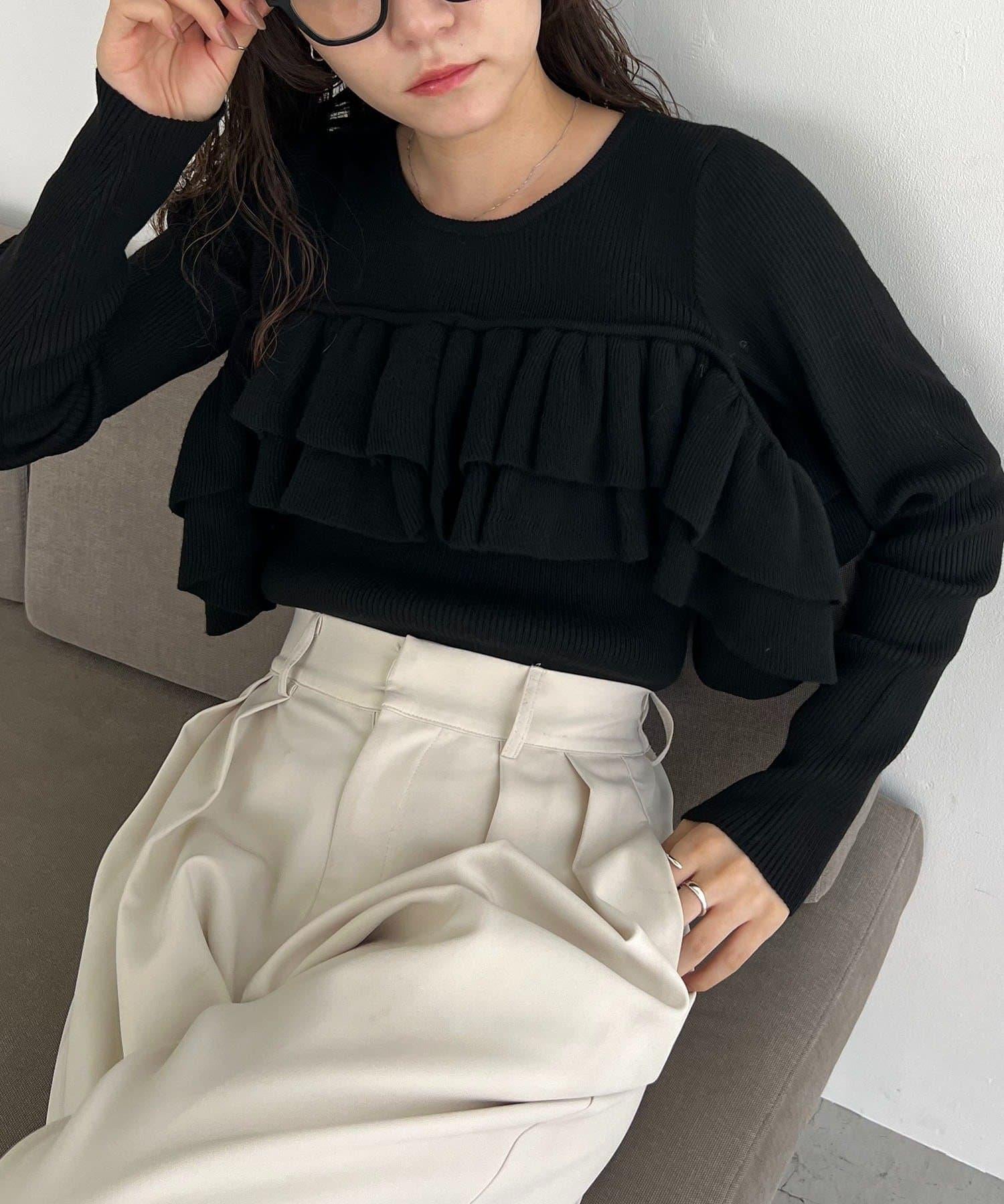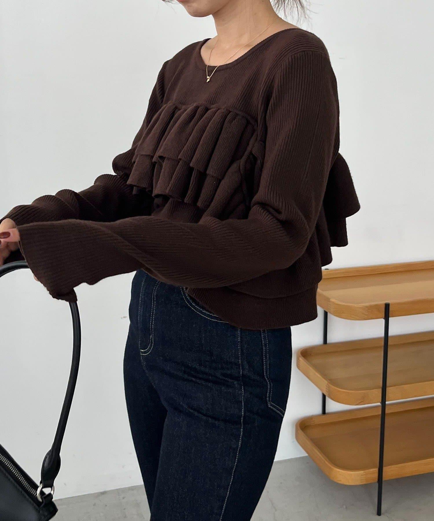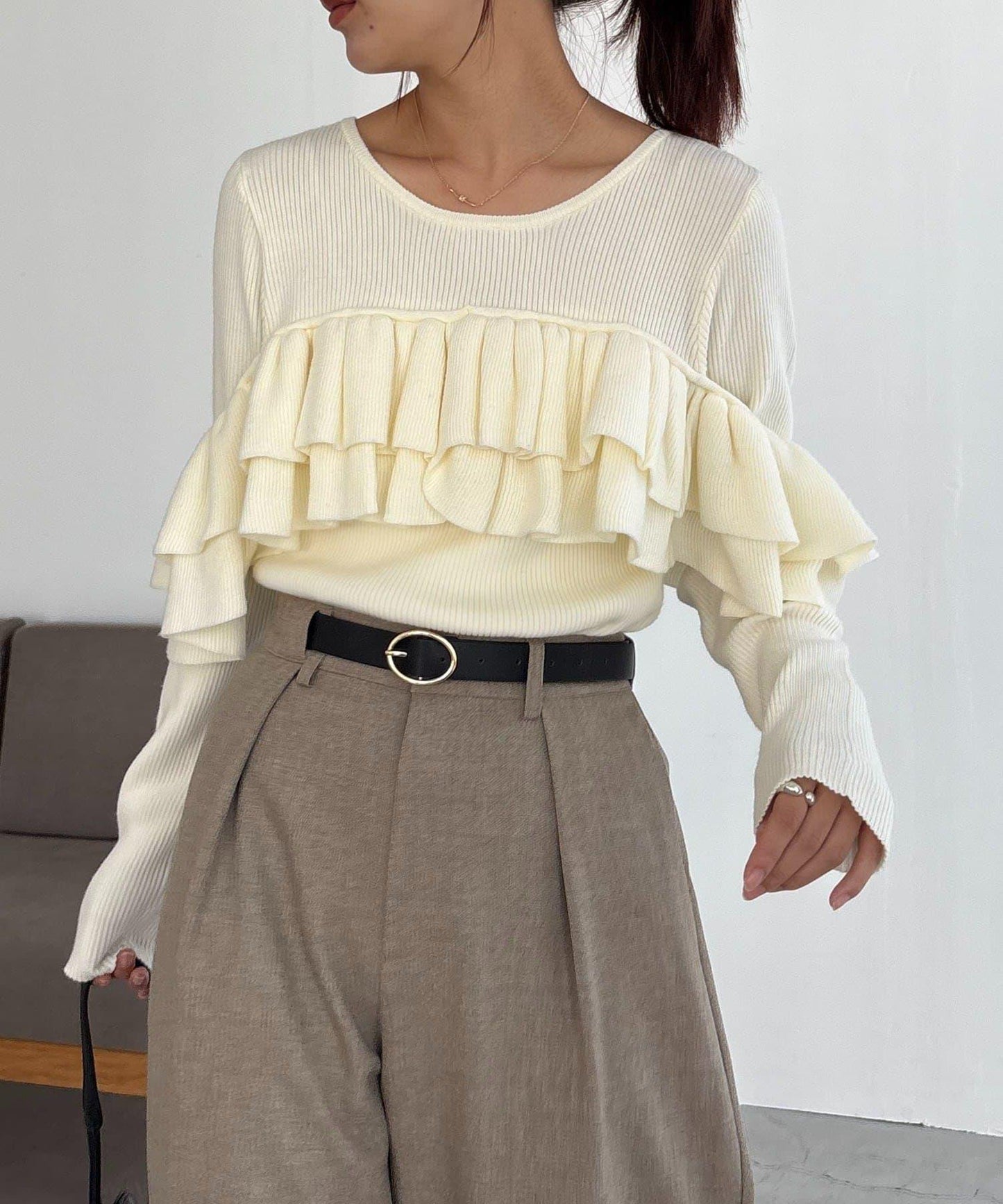 帶有荷葉邊的針織衫,設計嫵媚動人。