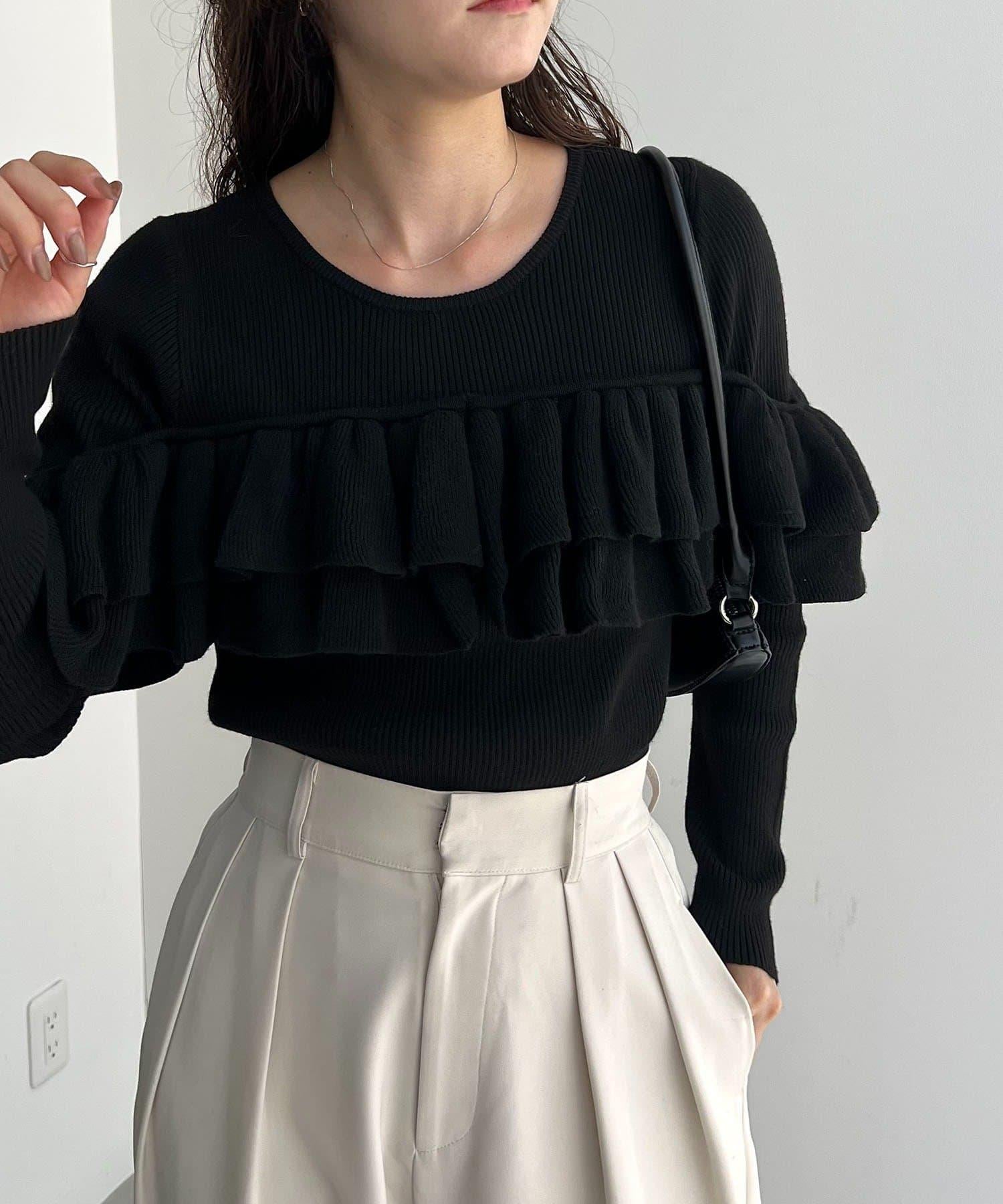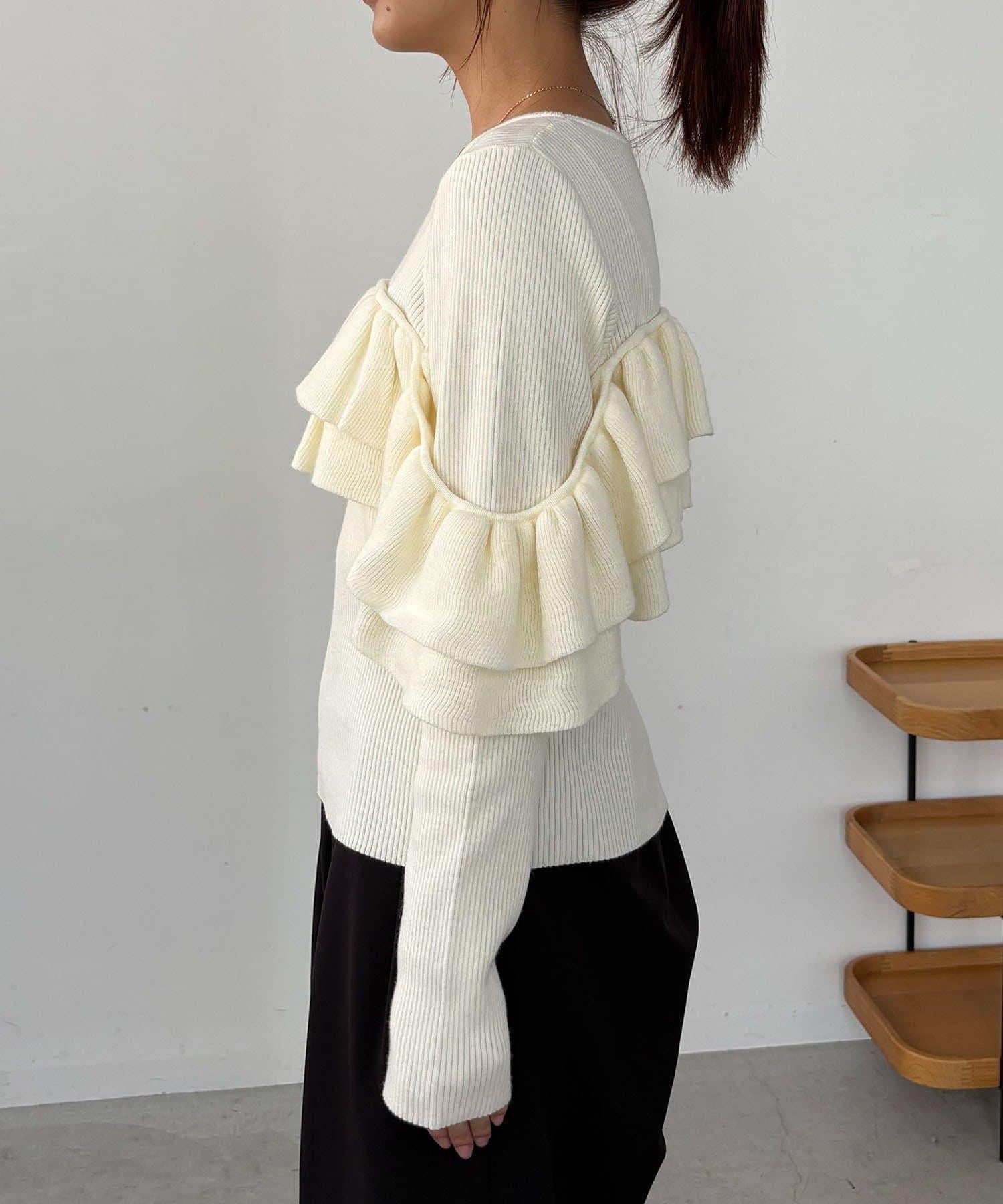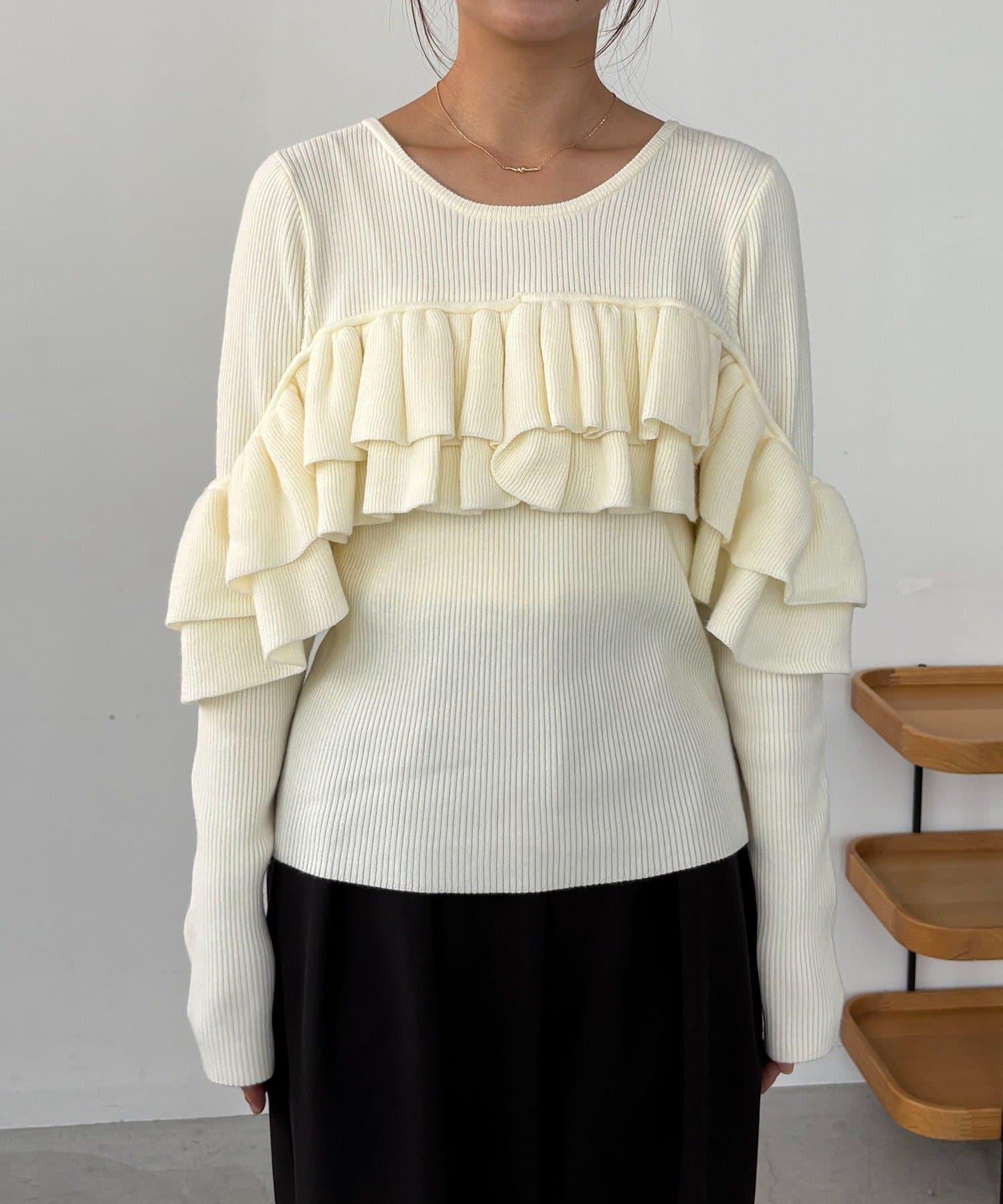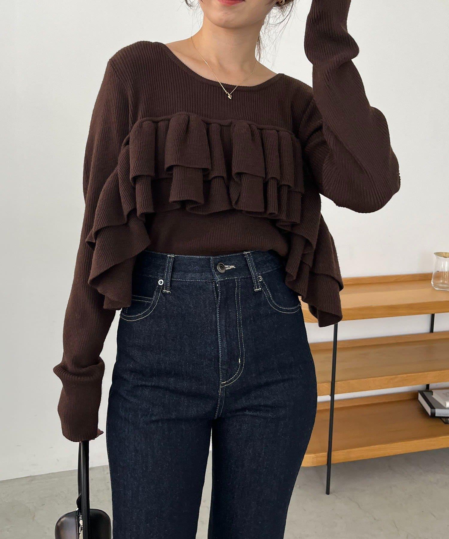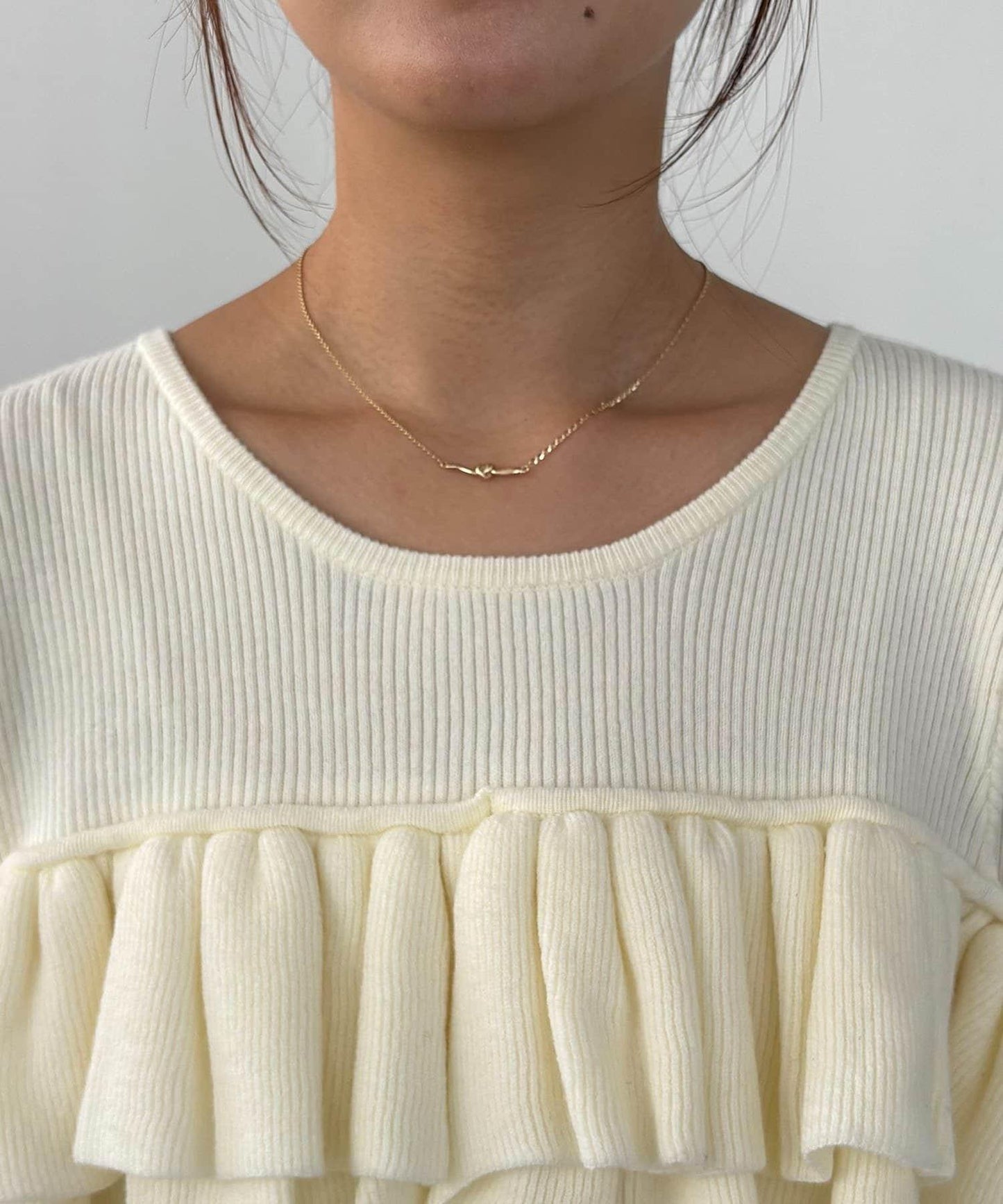 帶有荷葉邊的針織衫,設計嫵媚動人。