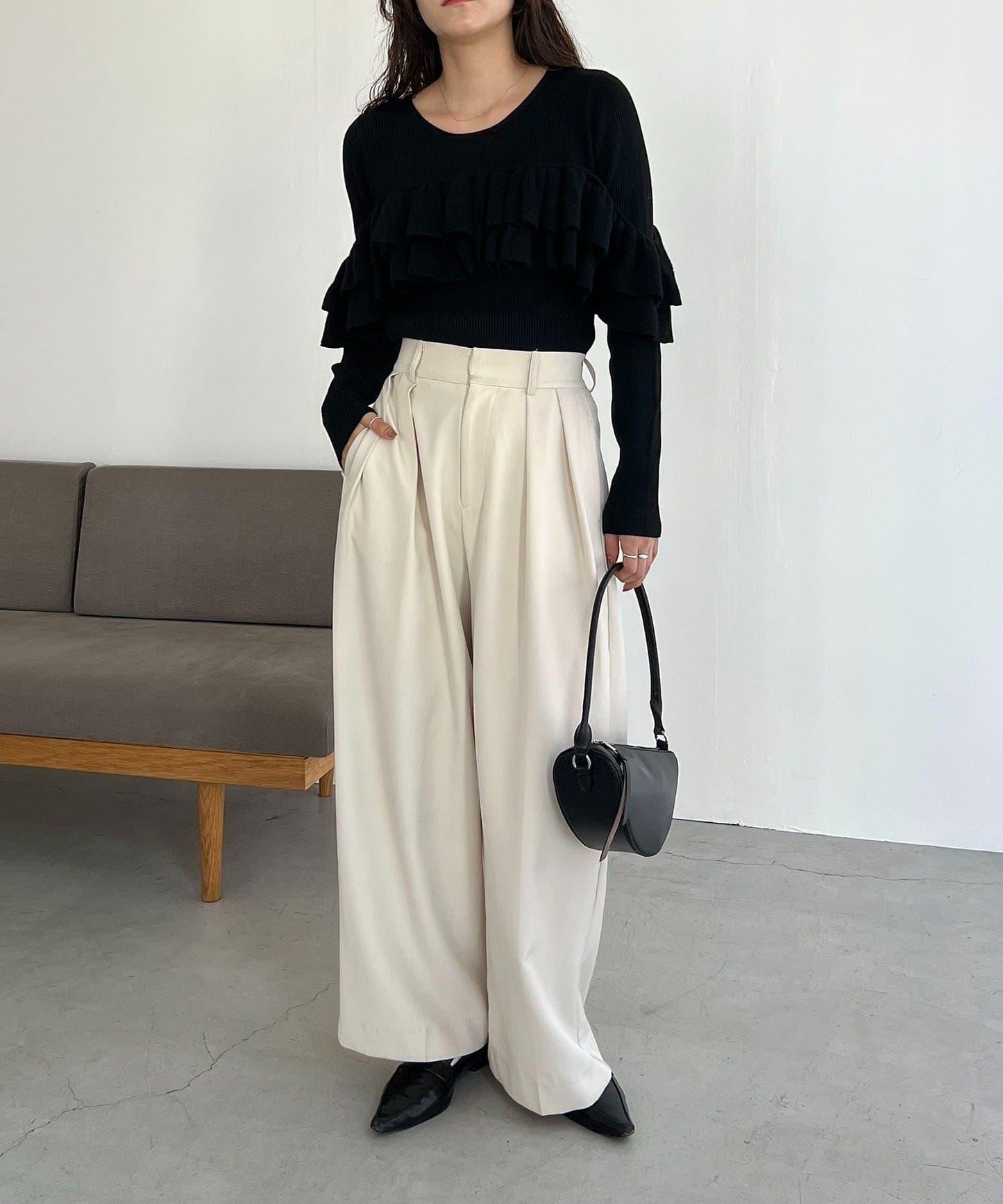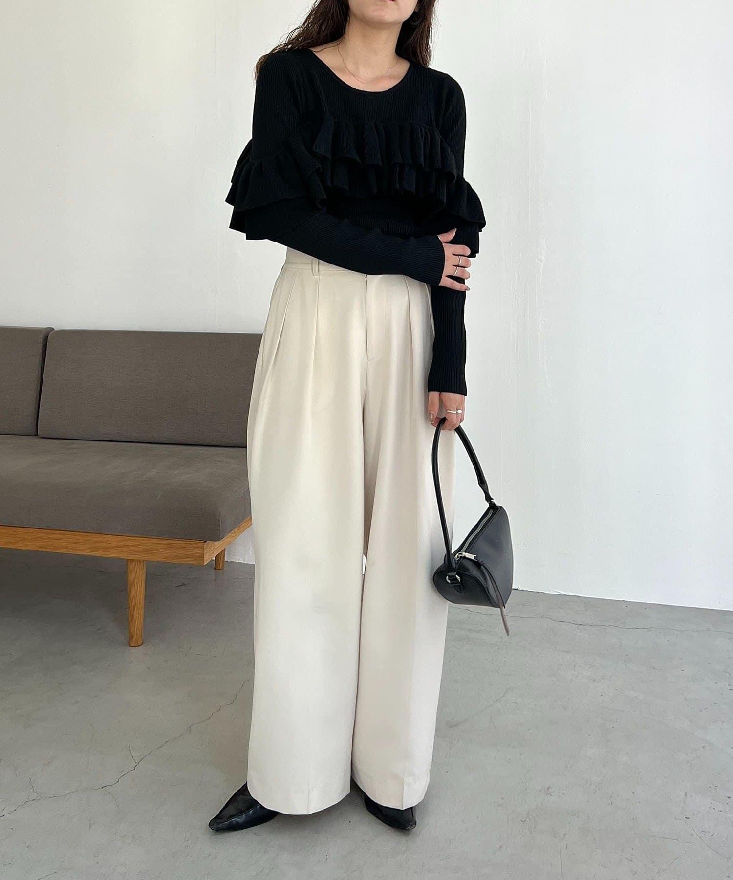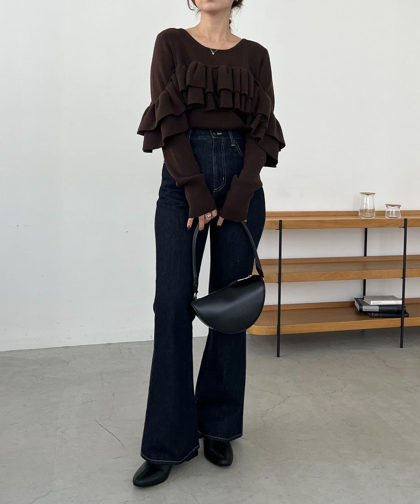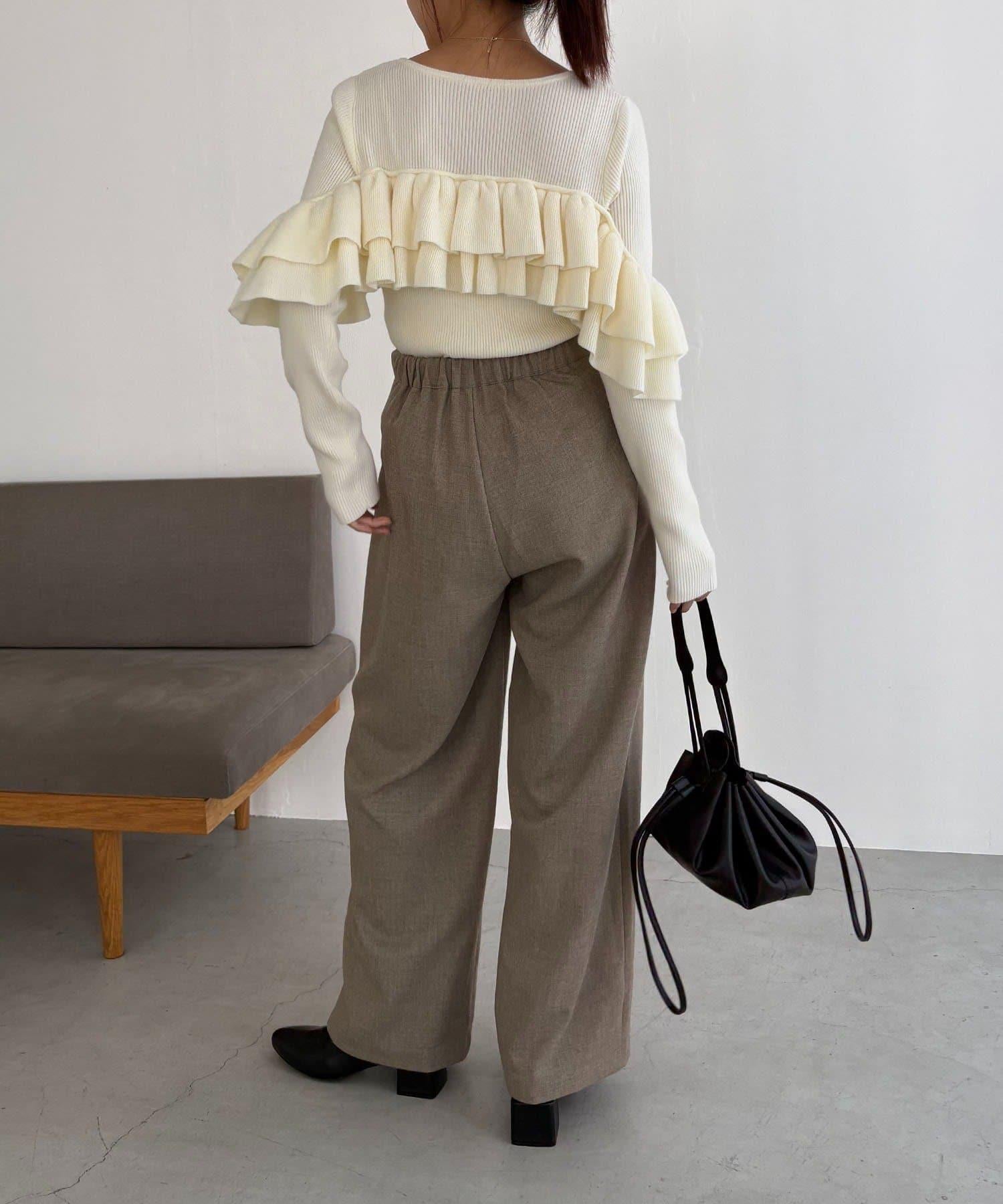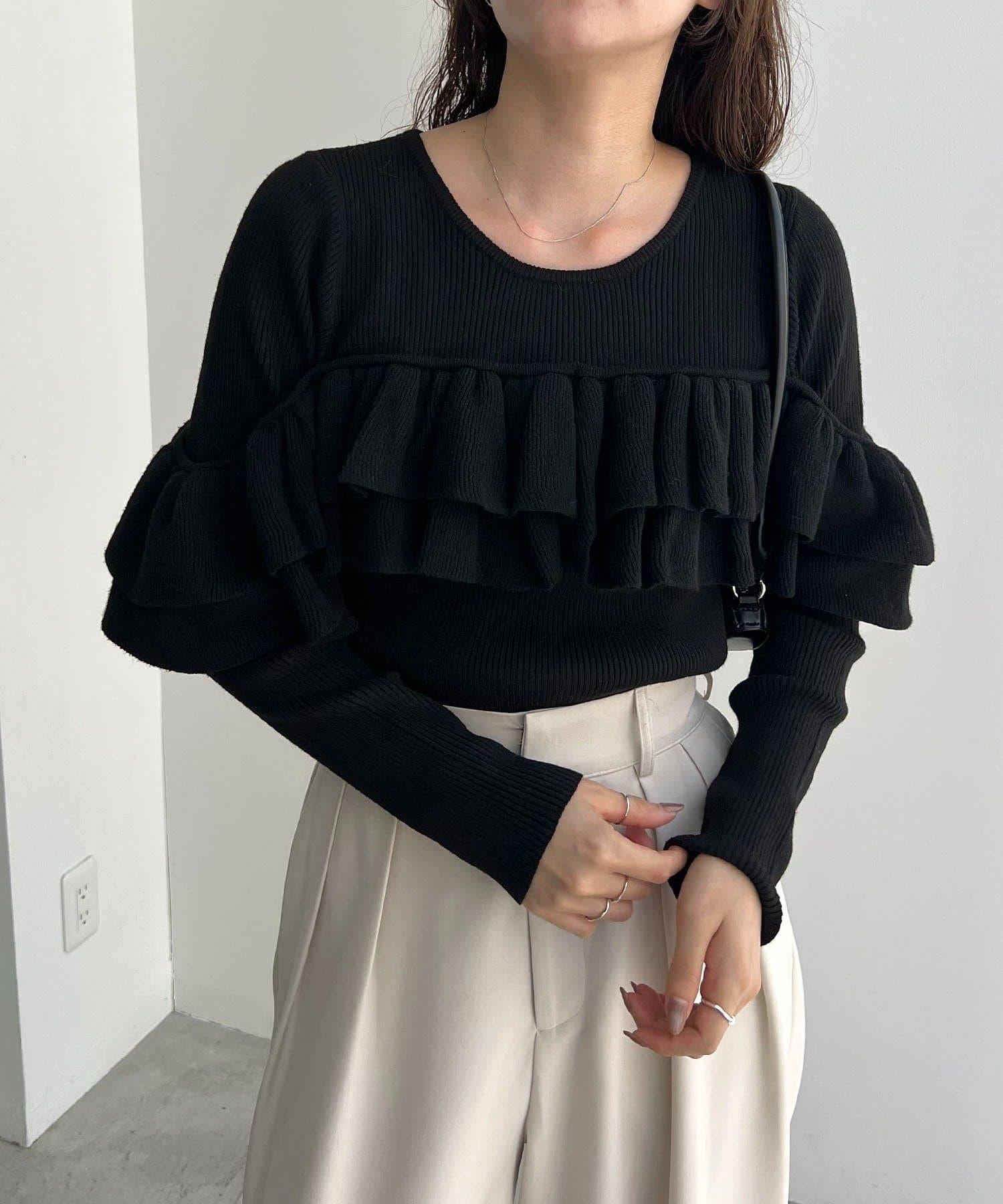 帶有荷葉邊的針織衫,設計嫵媚動人。