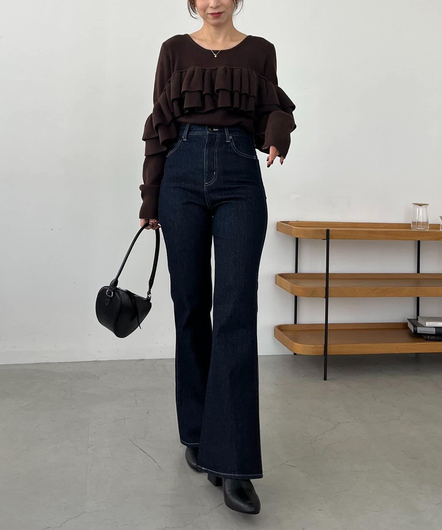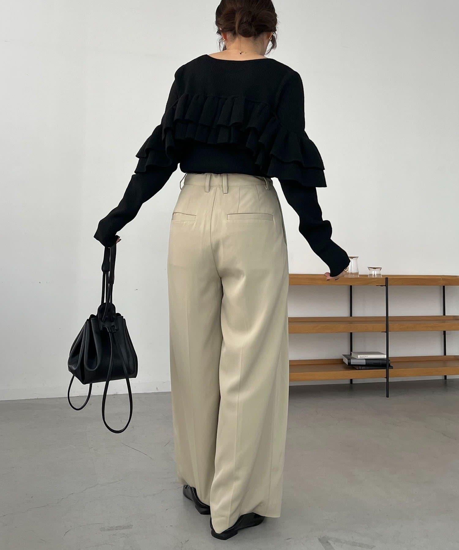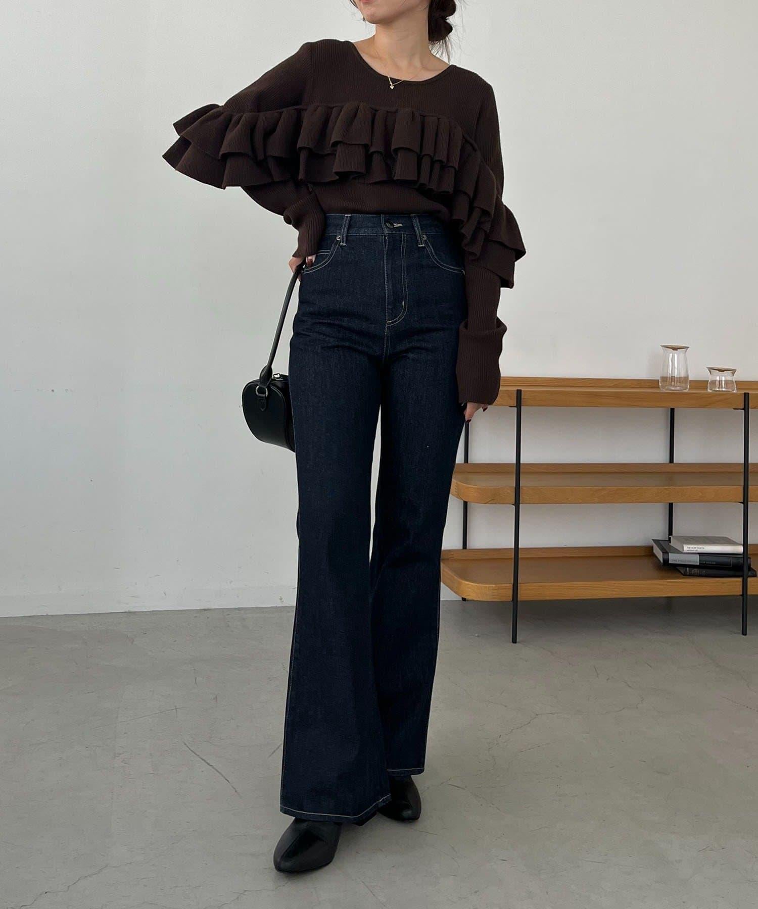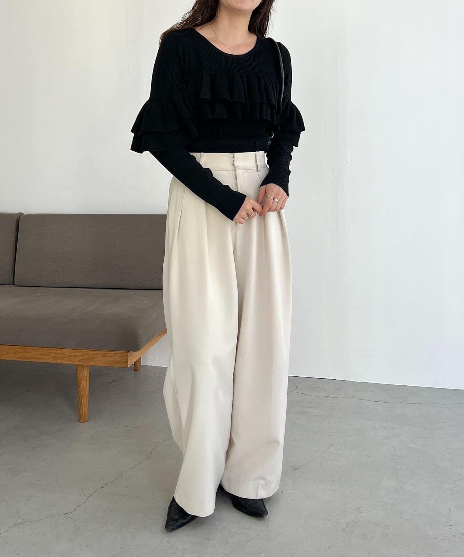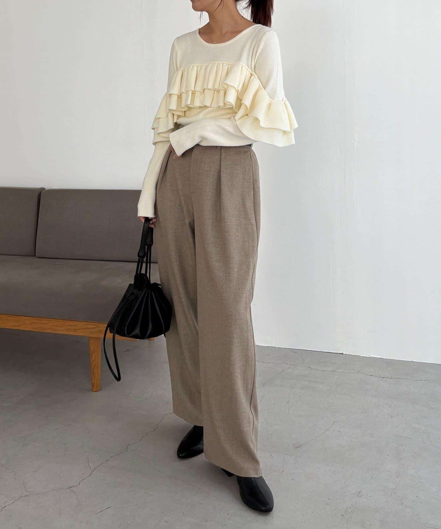 帶有荷葉邊的針織衫,設計嫵媚動人。