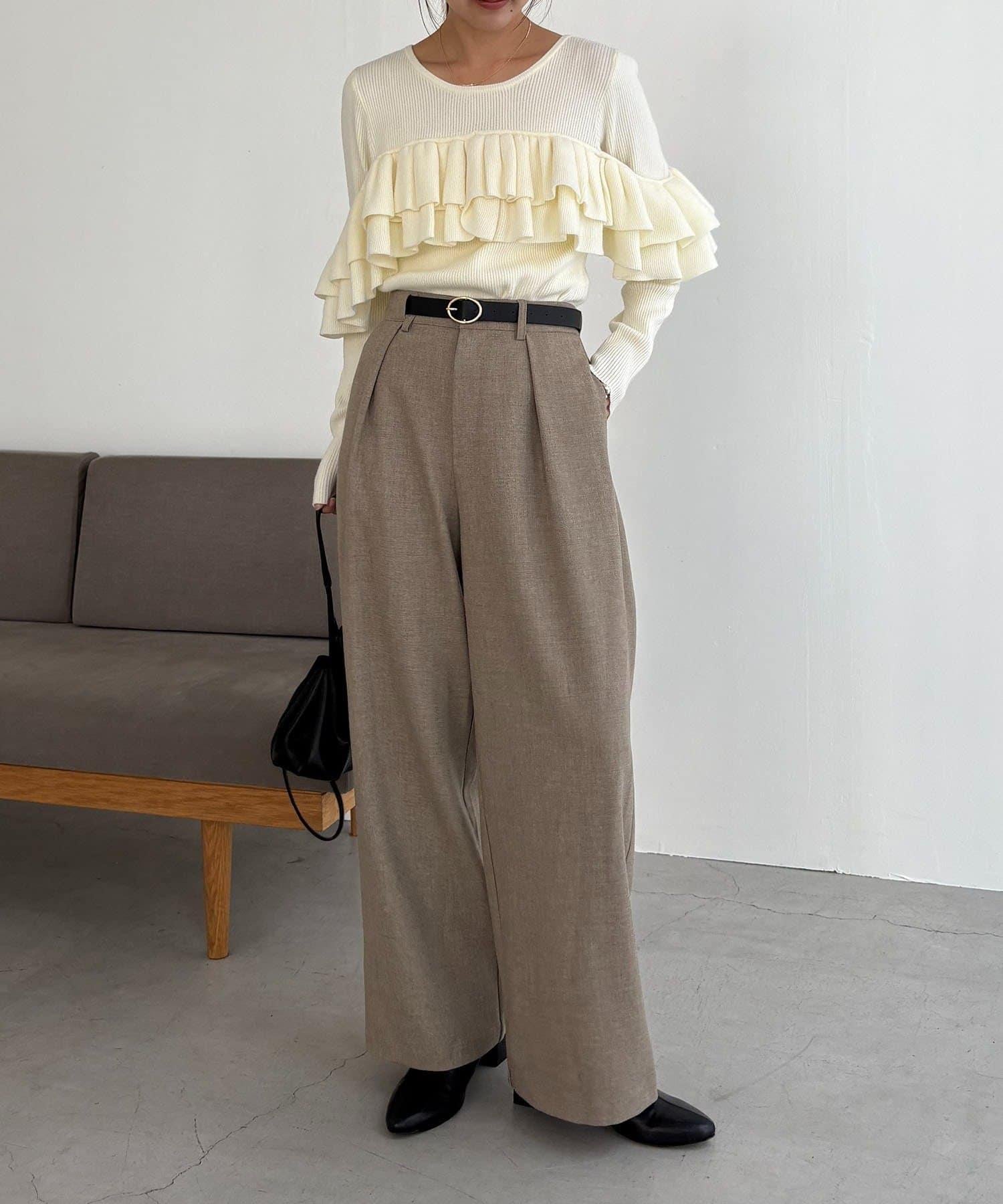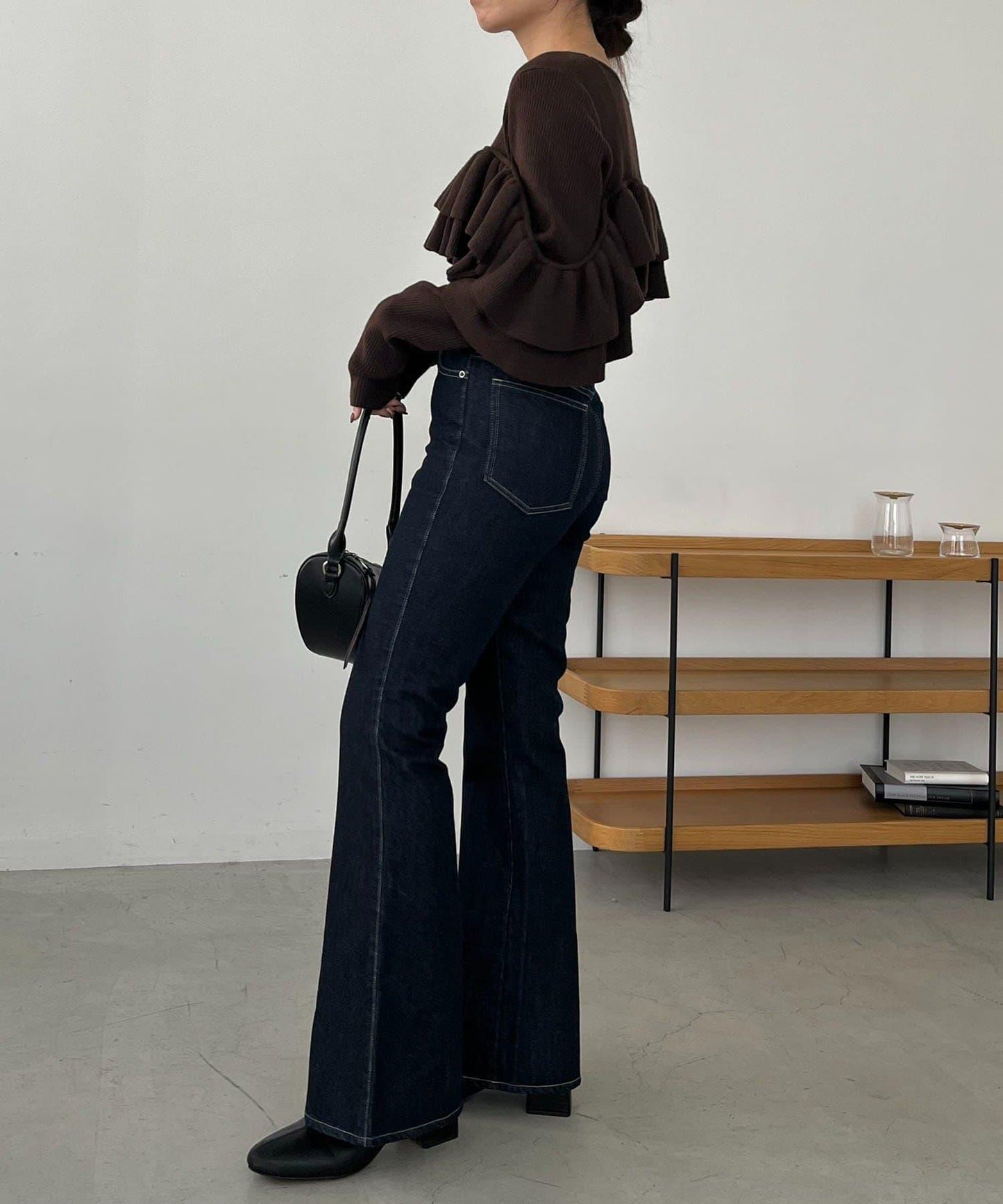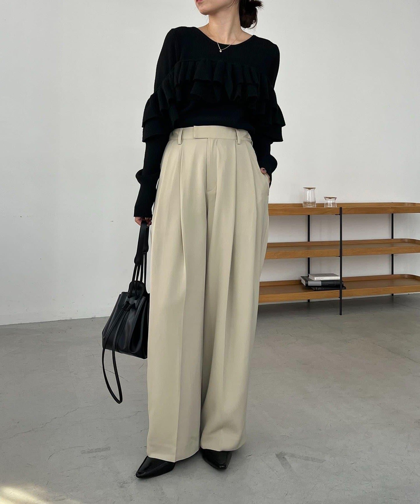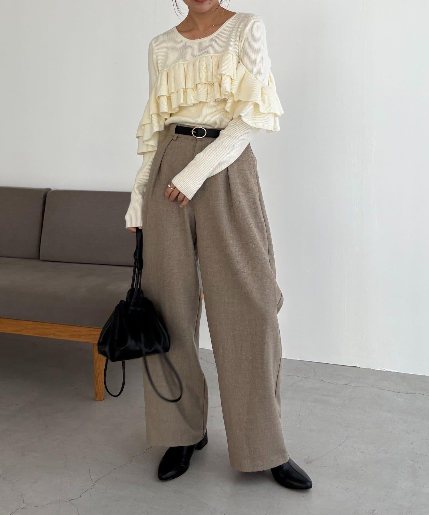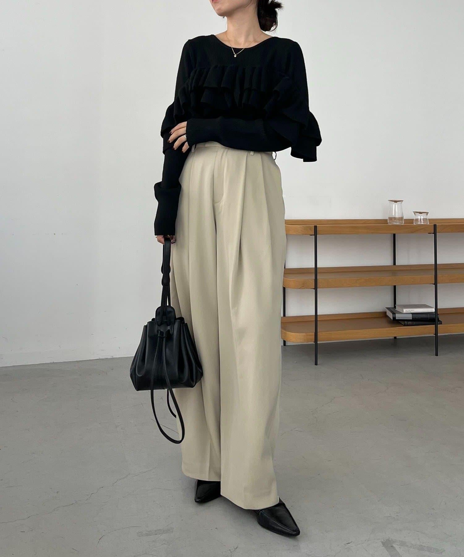 帶有荷葉邊的針織衫,設計嫵媚動人。
