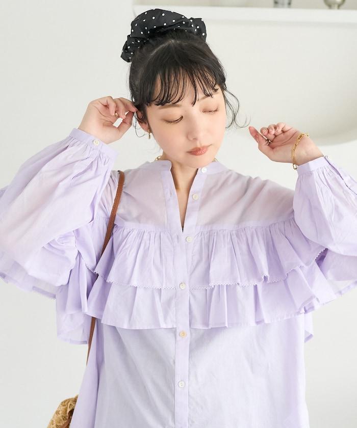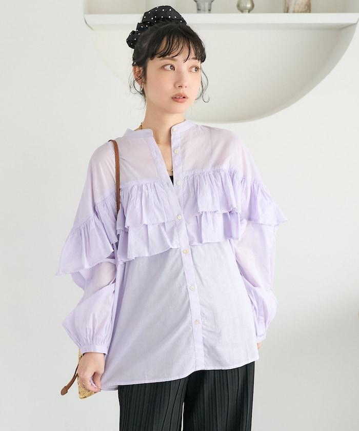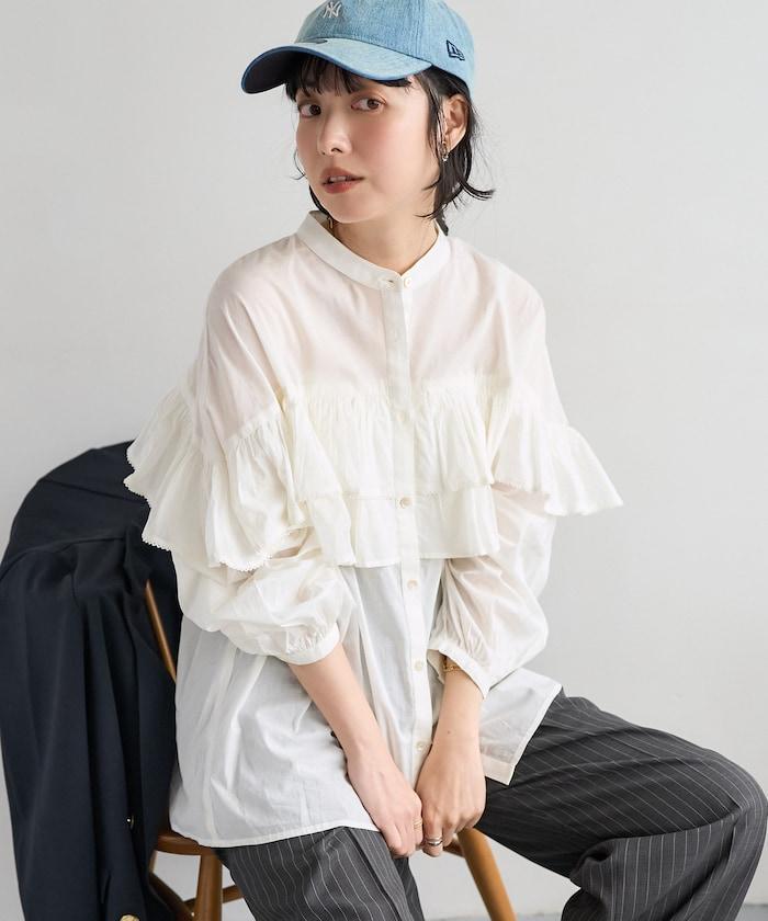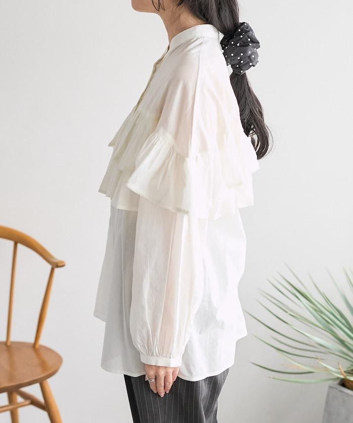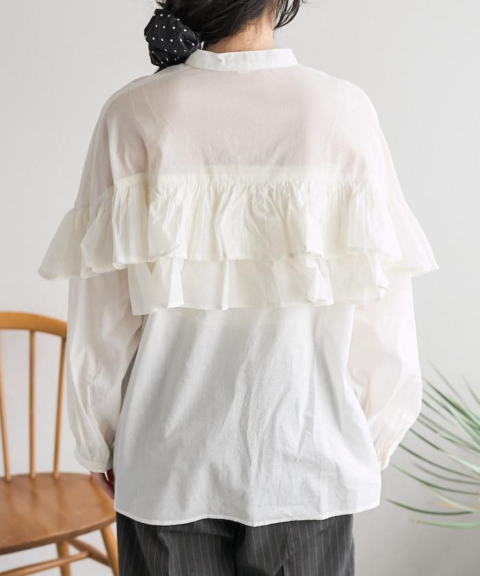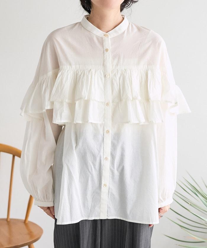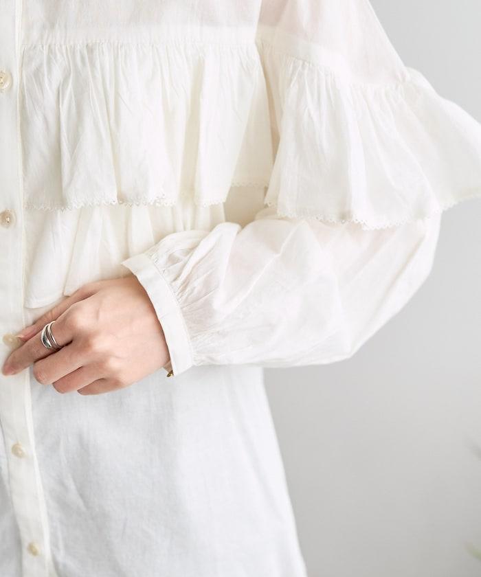 荷葉邊長袖印度薄紗女襯衫