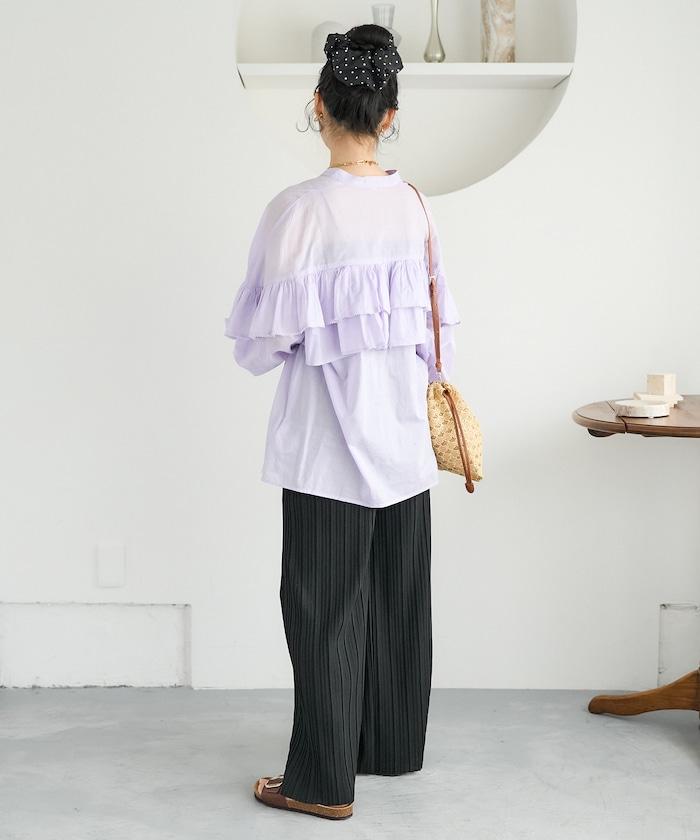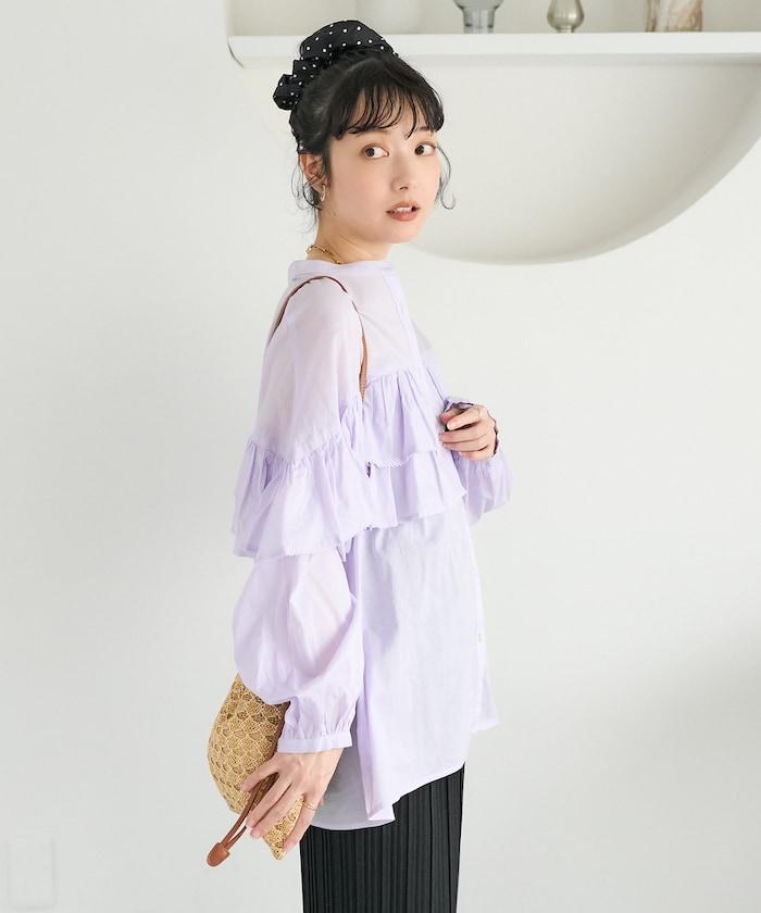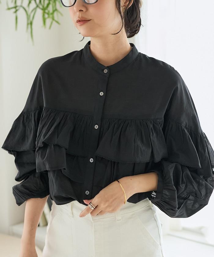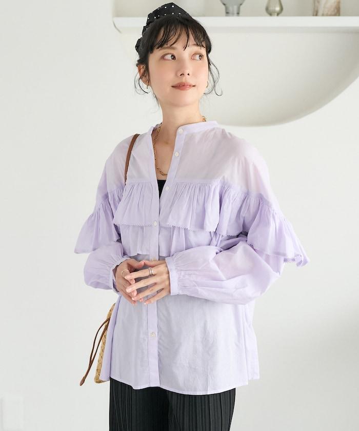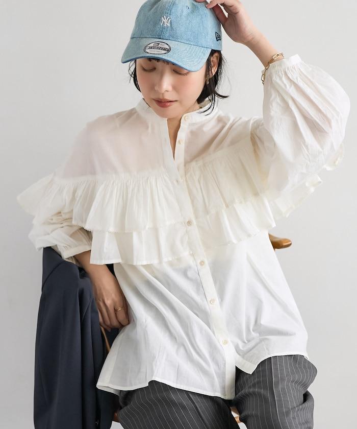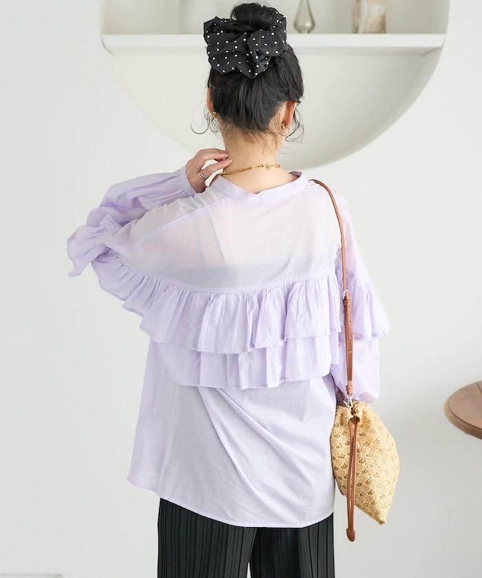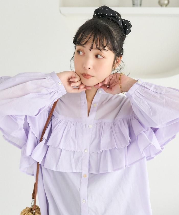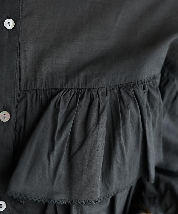 荷葉邊長袖印度薄紗女襯衫