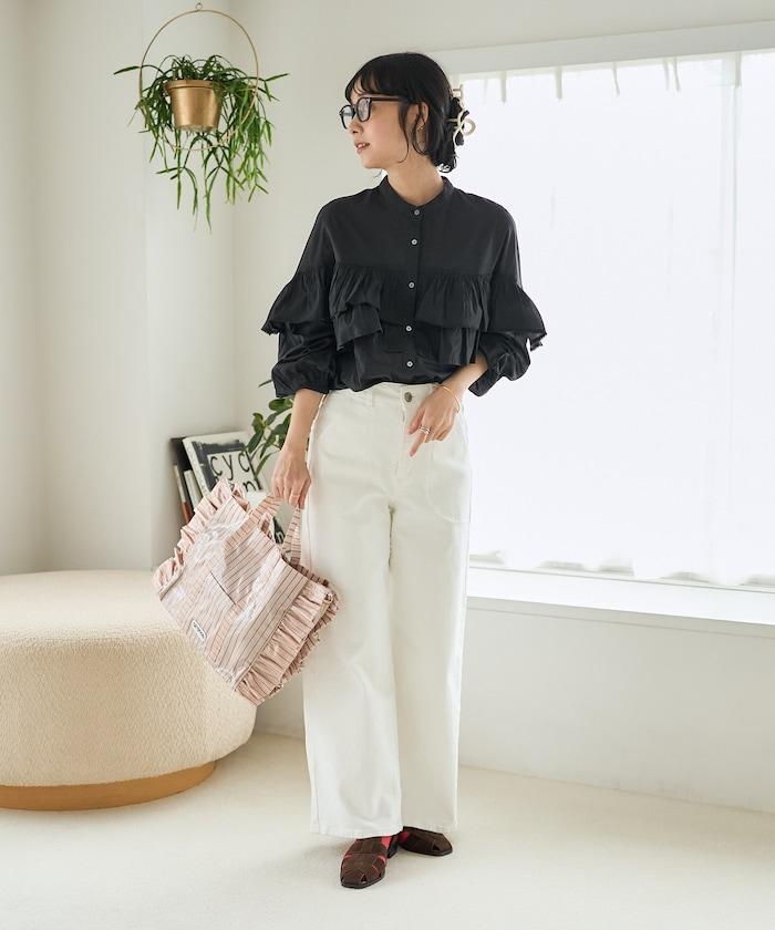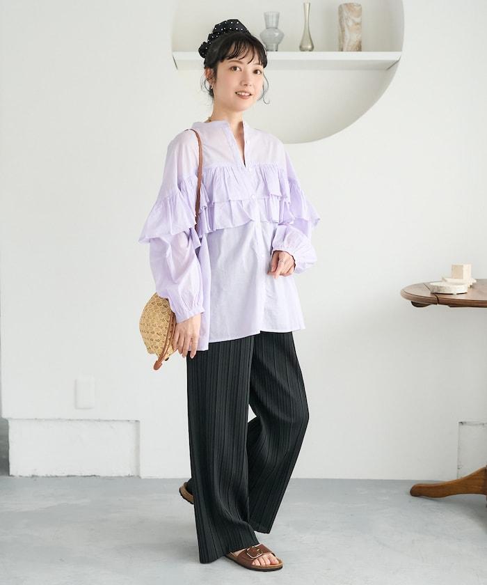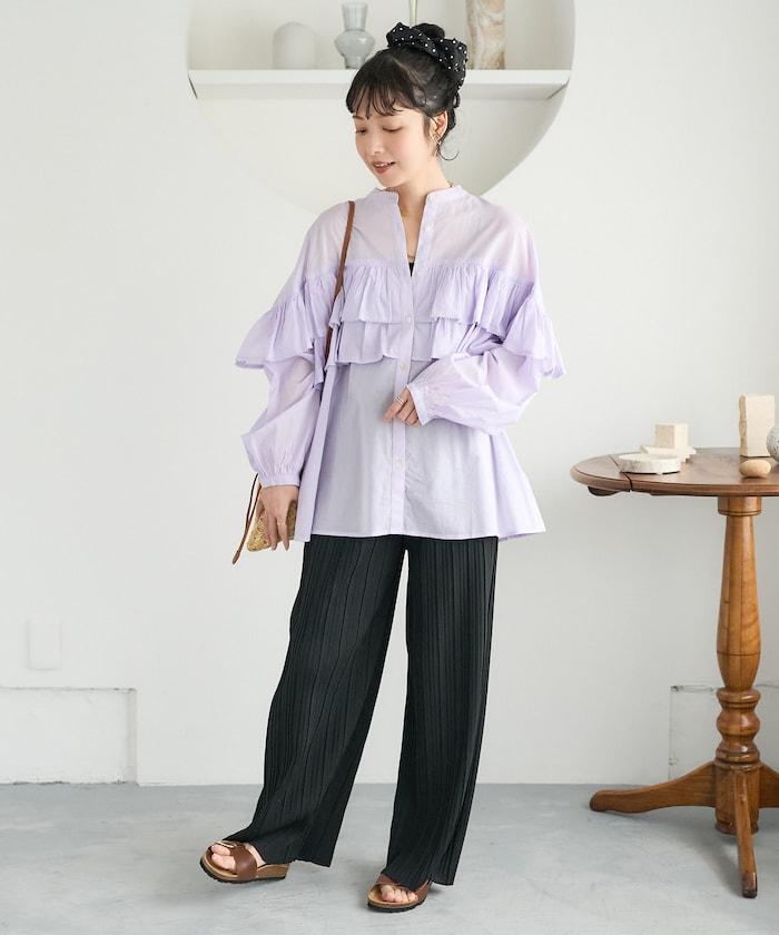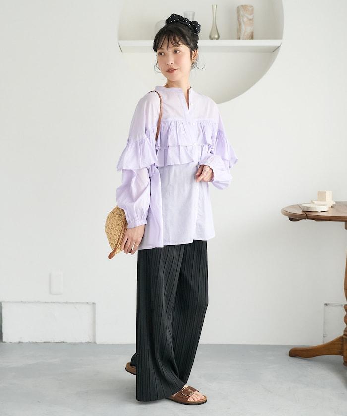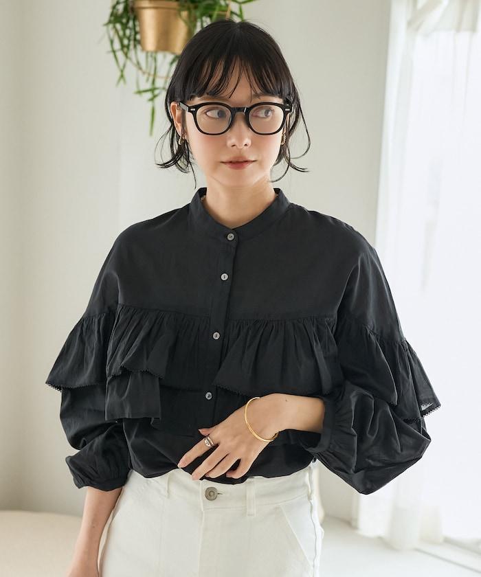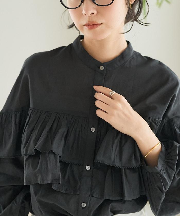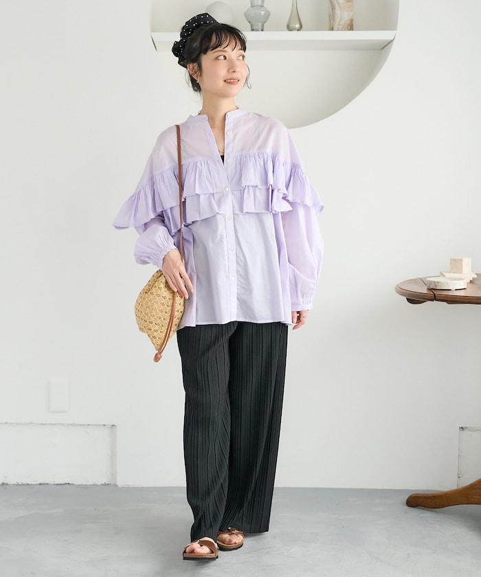 荷葉邊長袖印度薄紗女襯衫