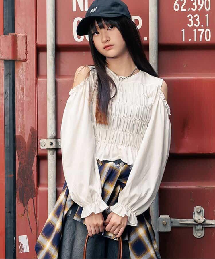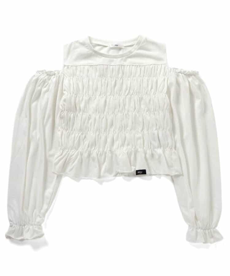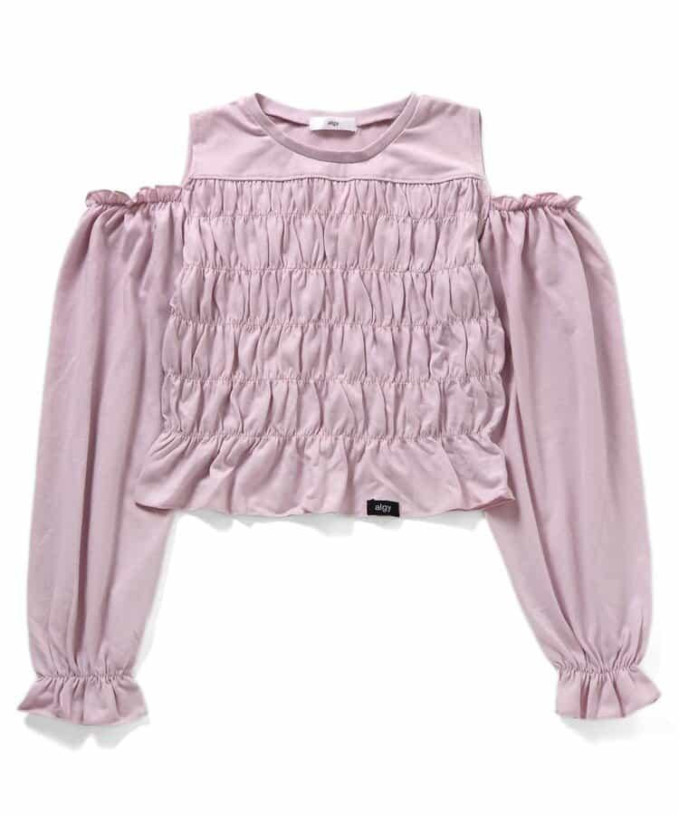 ALGY 長袖T恤 "Shirred Shoulder Tops"。