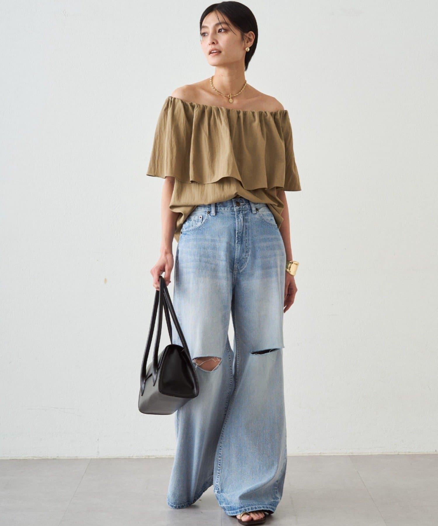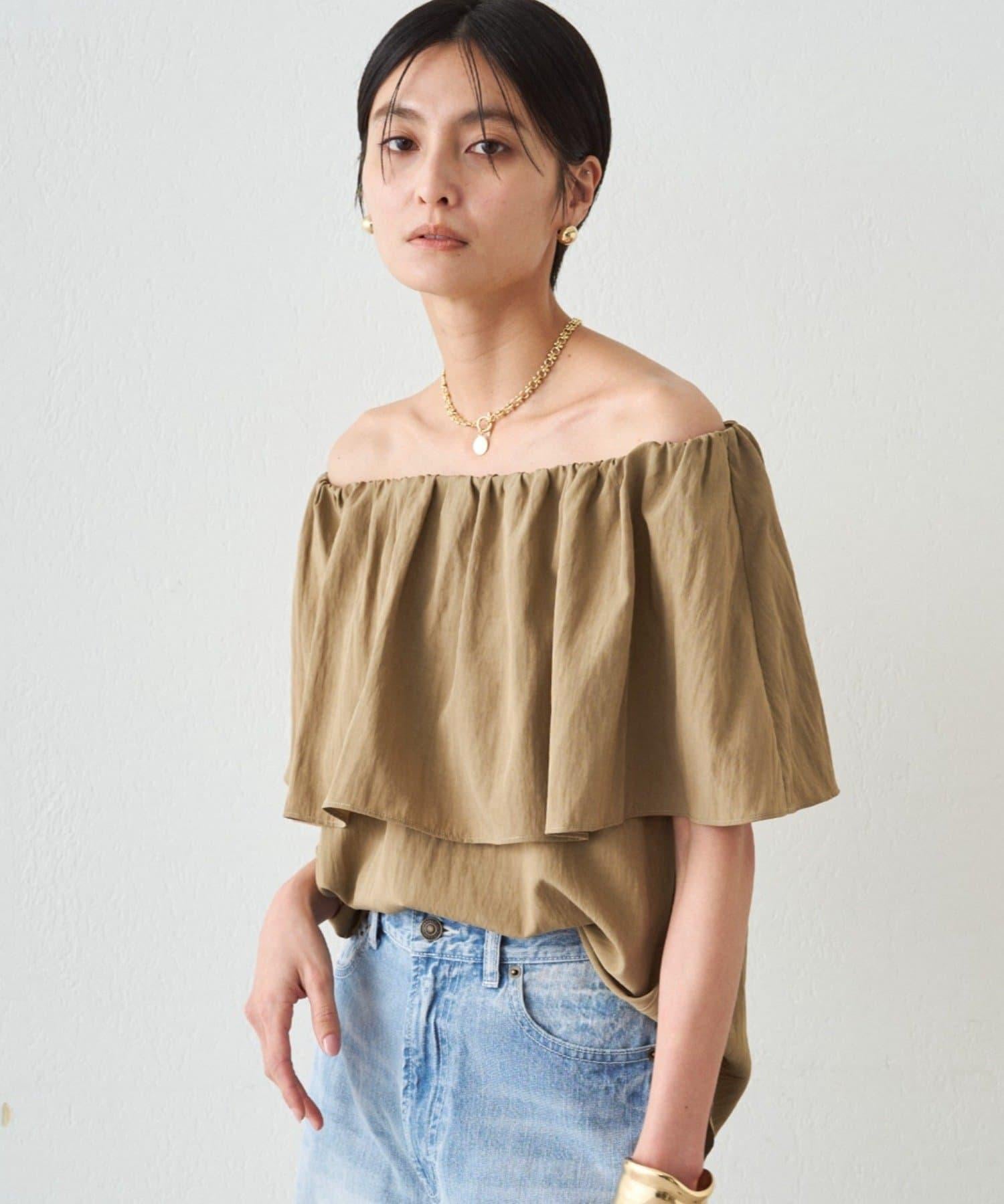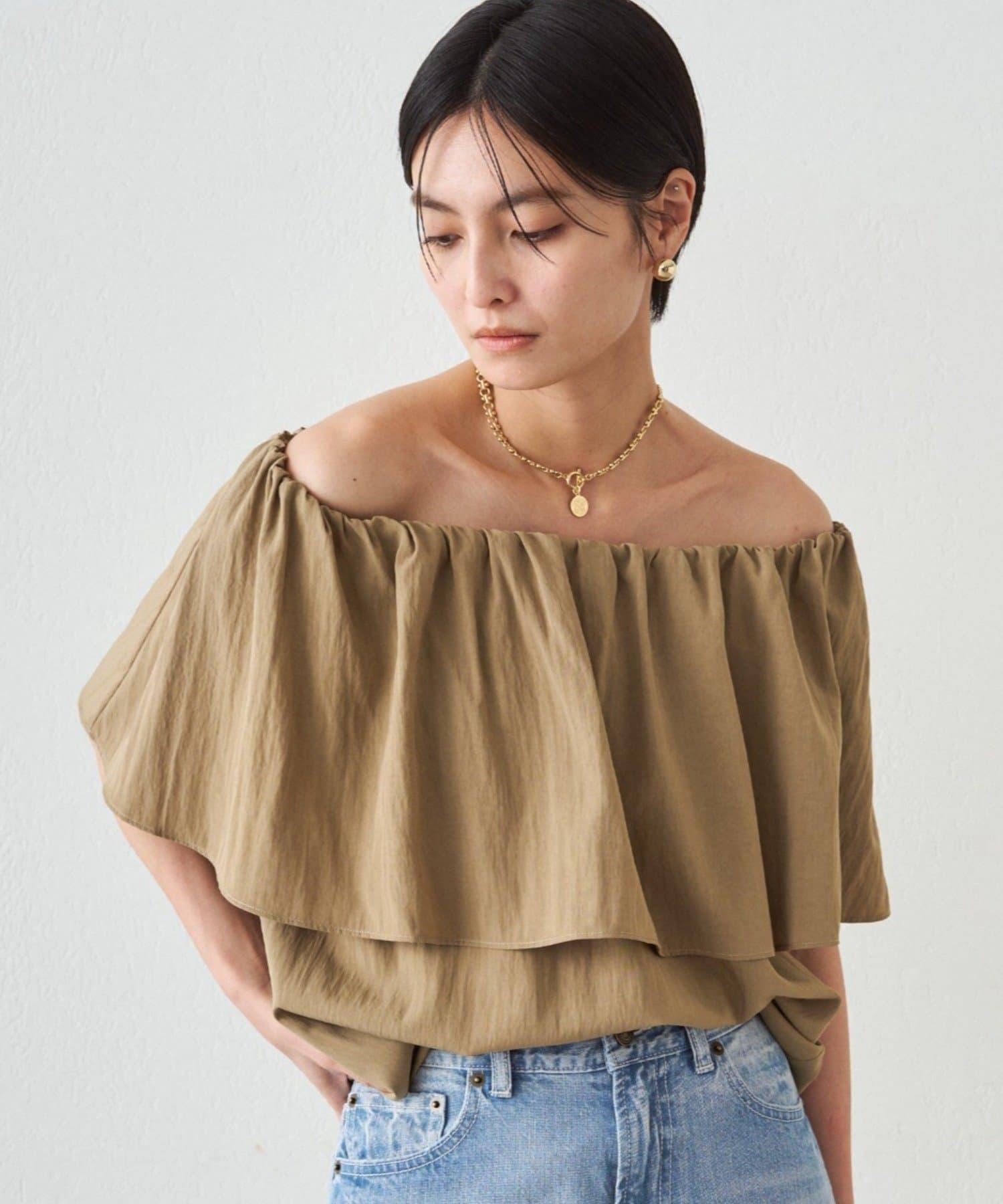 荷葉邊露肩設計 女式襯衫