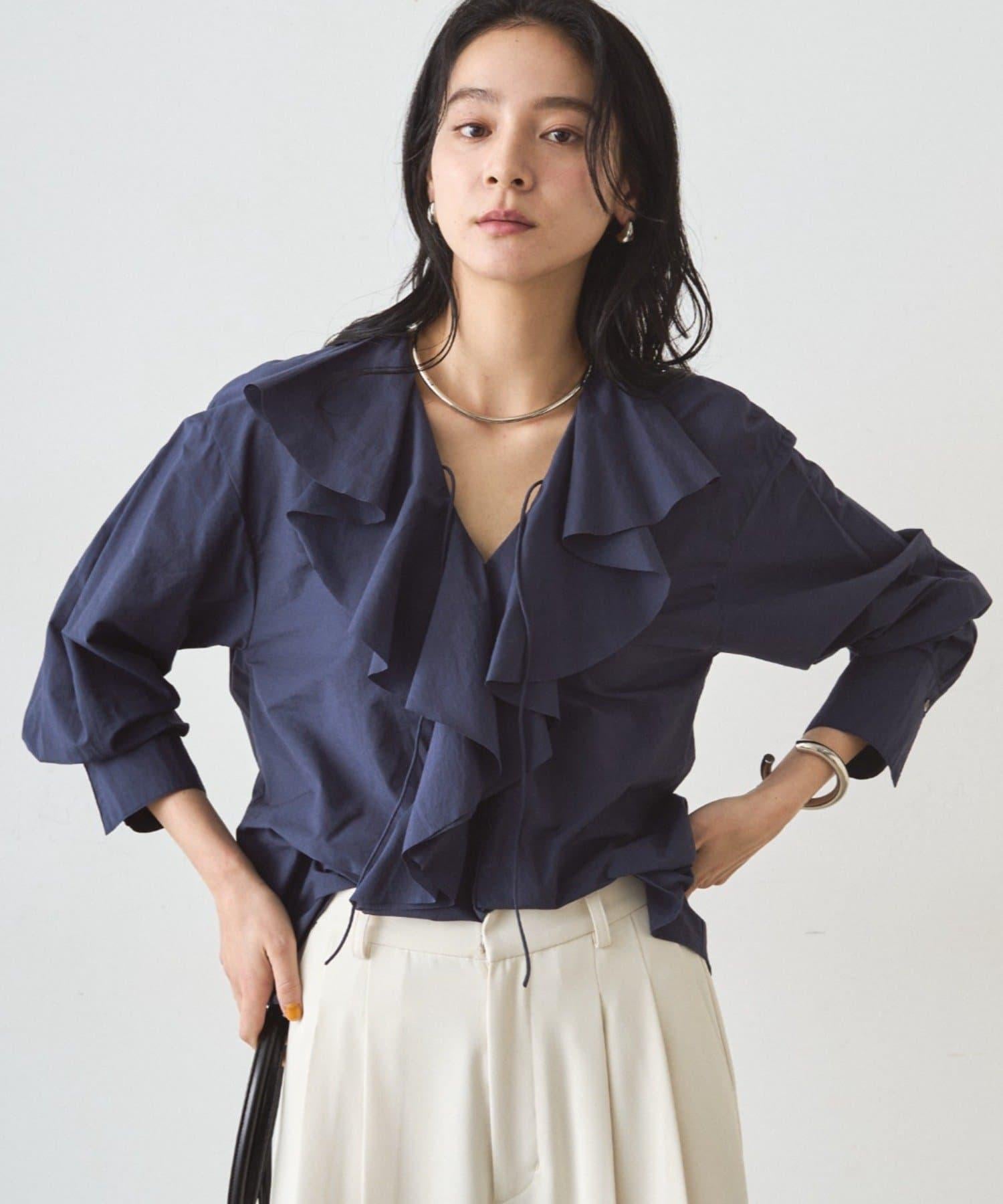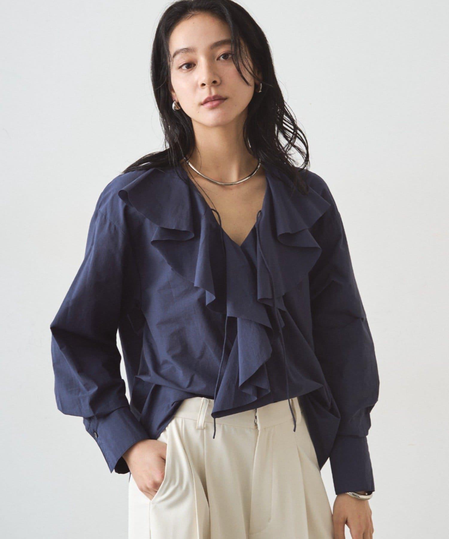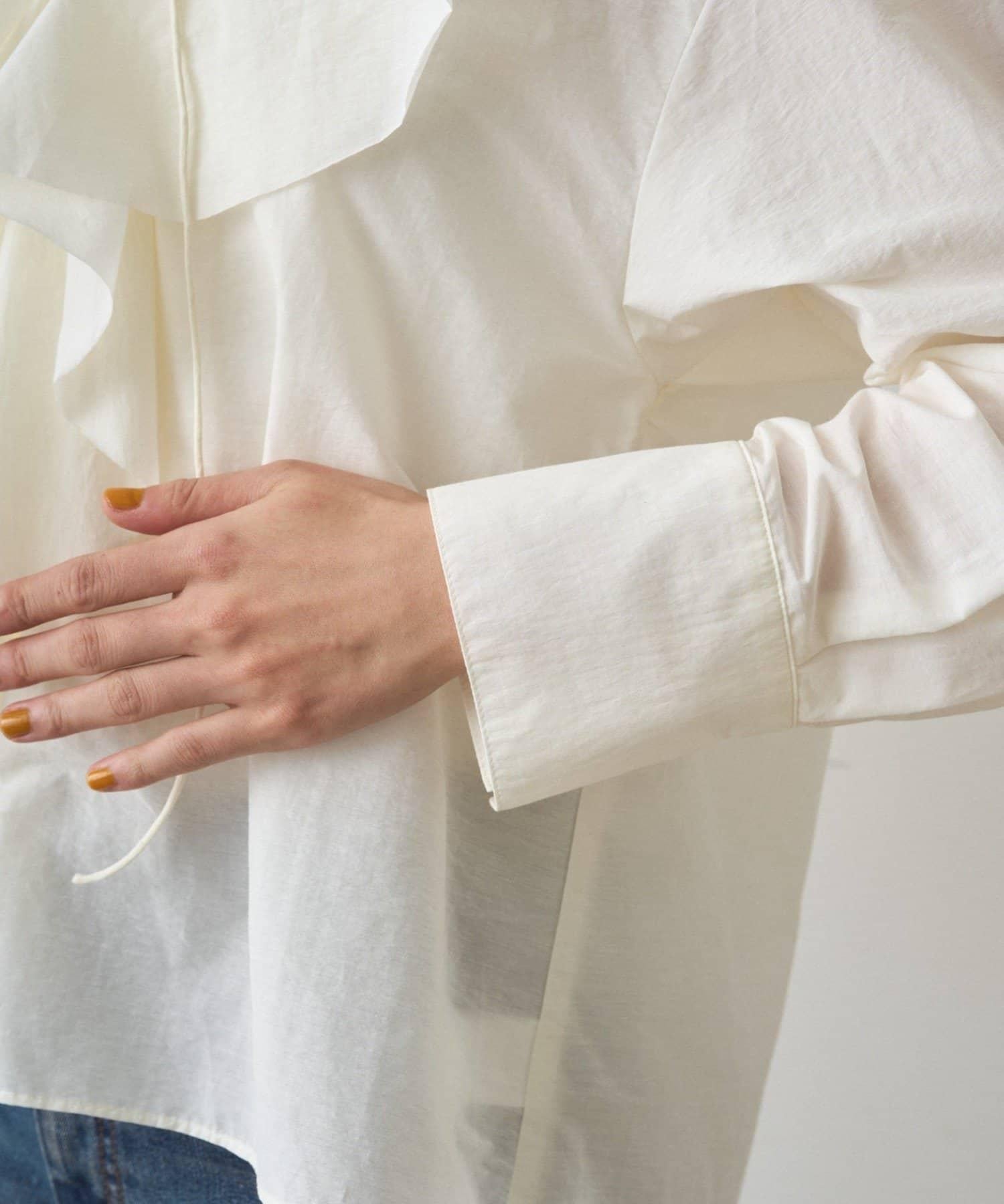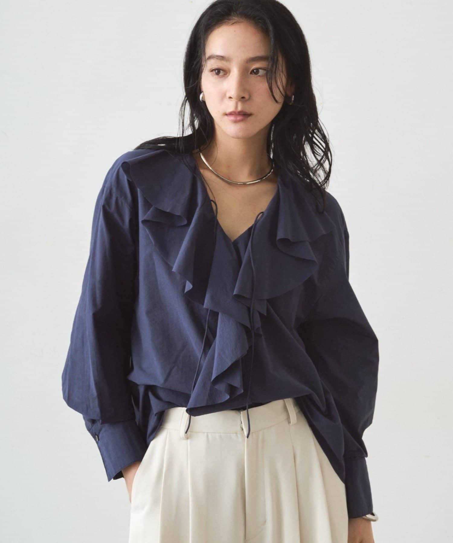 這款上衣的荷葉邊大膽醒目,為臉部增添了一絲魅力。
