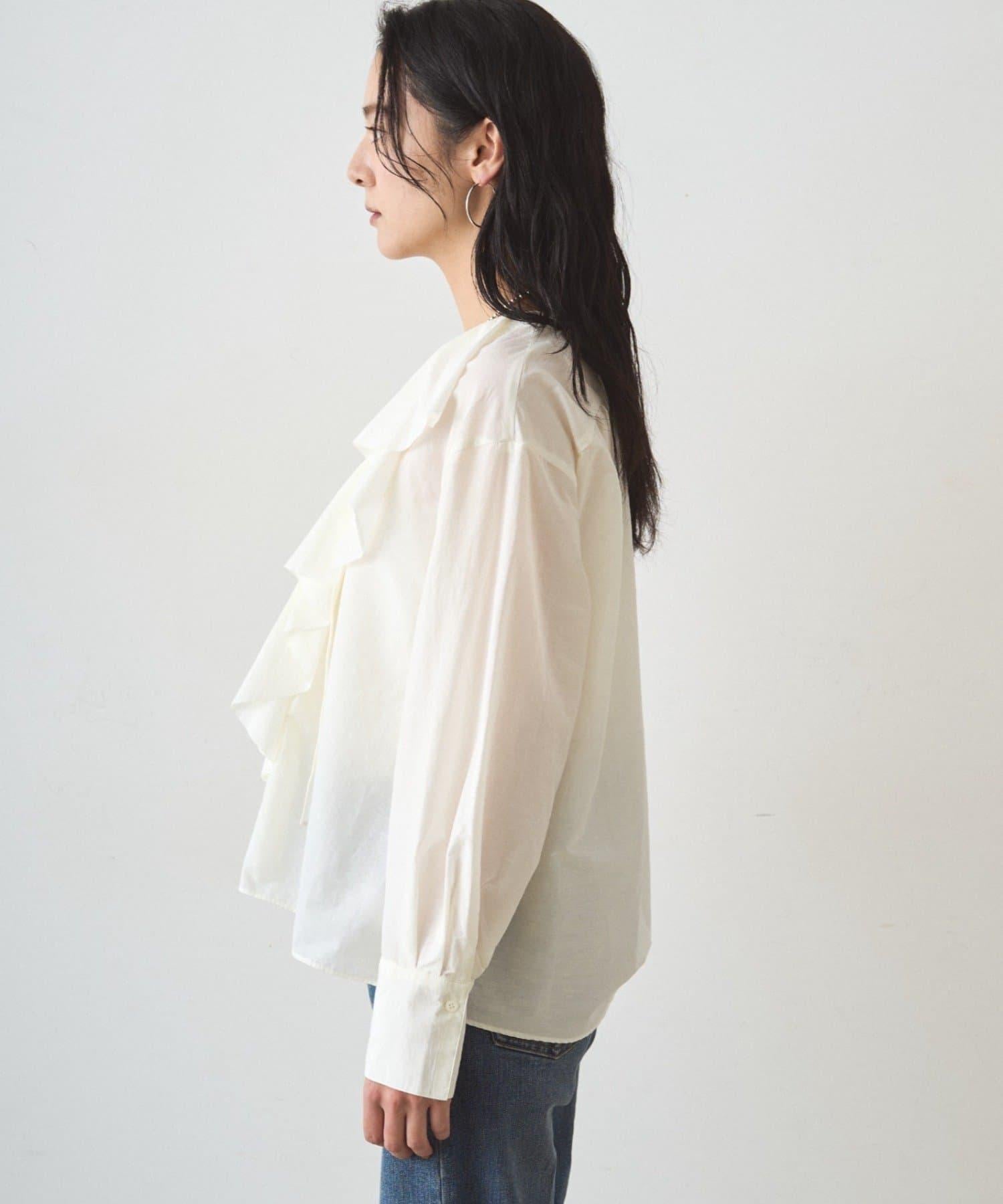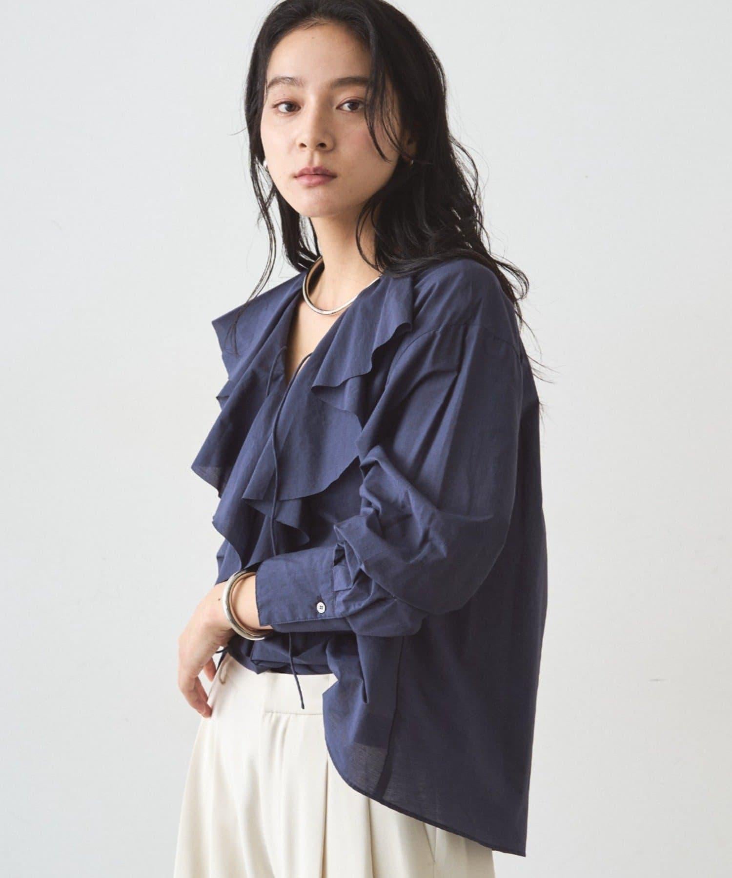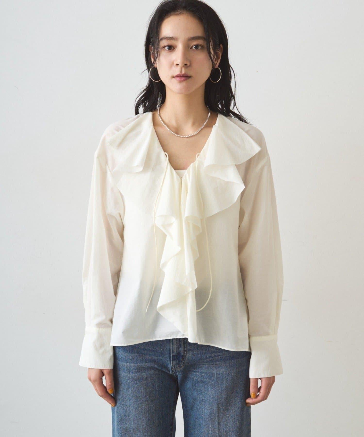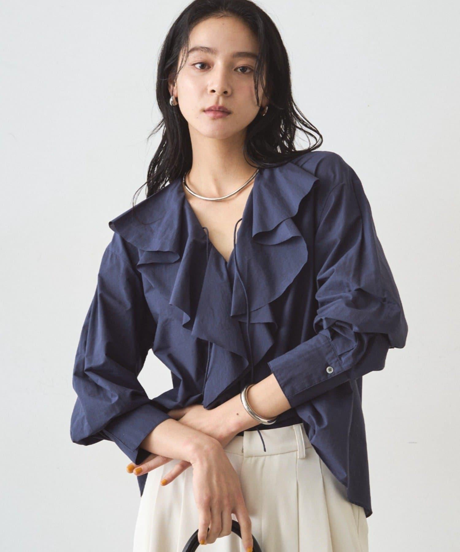 這款上衣的荷葉邊大膽醒目,為臉部增添了一絲魅力。
