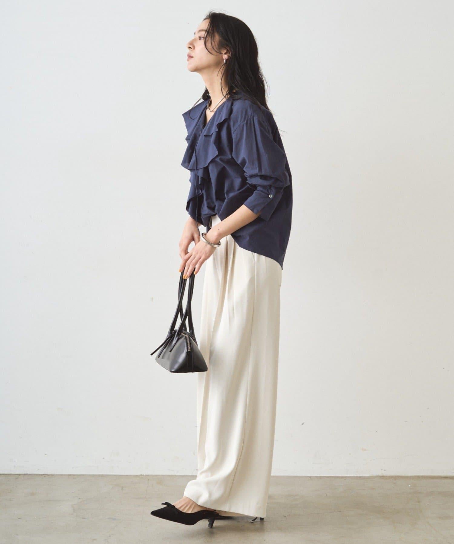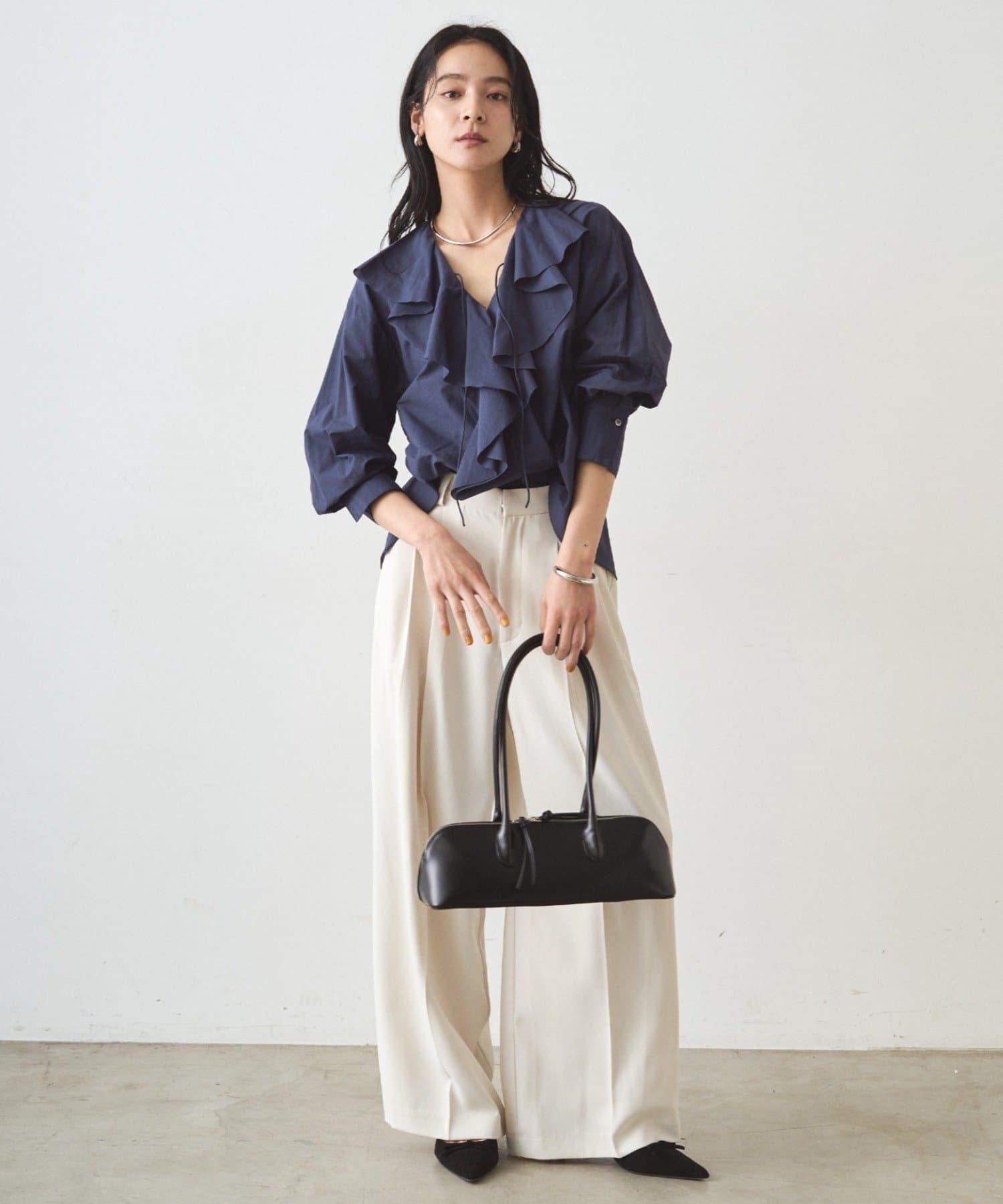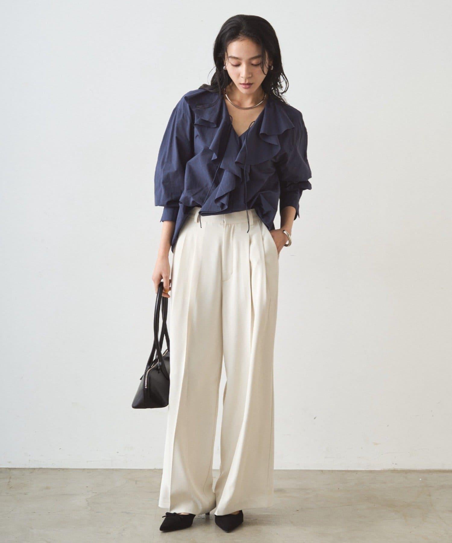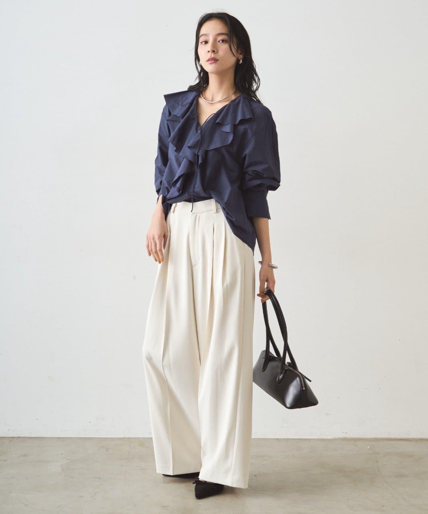 胸前的荷葉邊點睛之筆,也建議作為外套內搭。