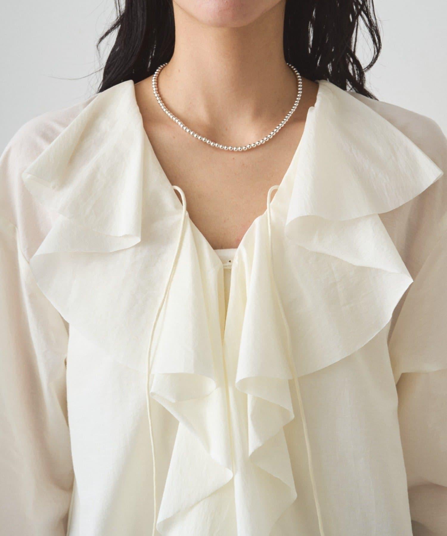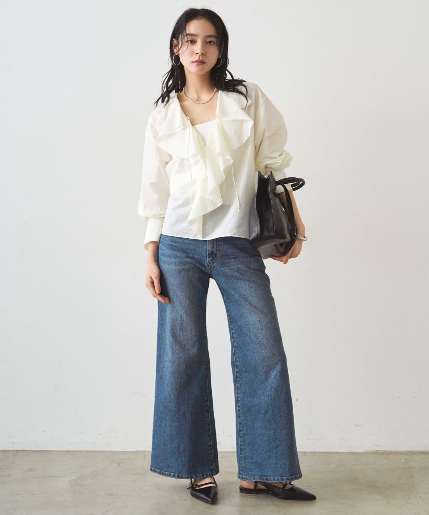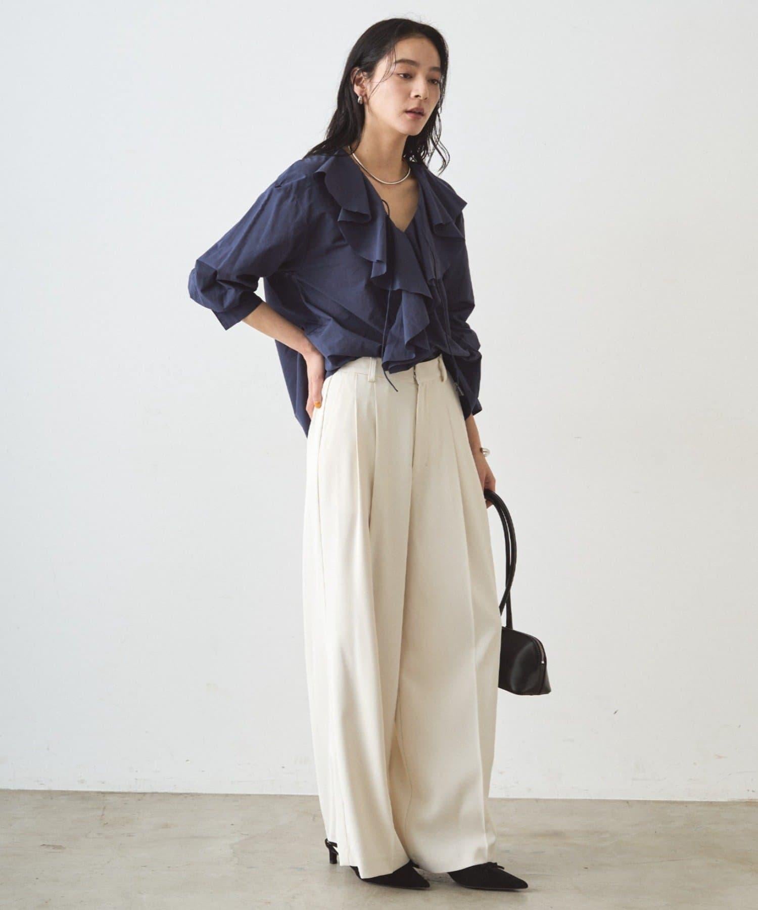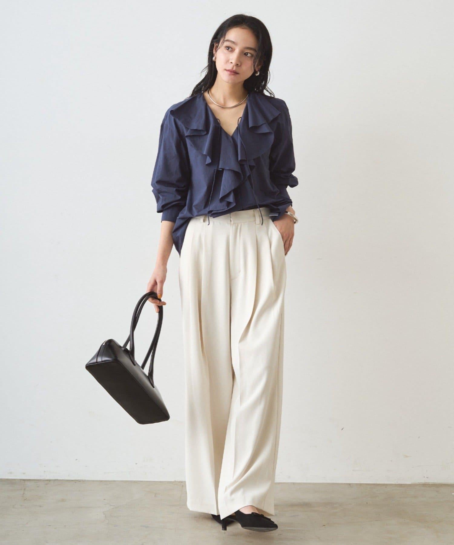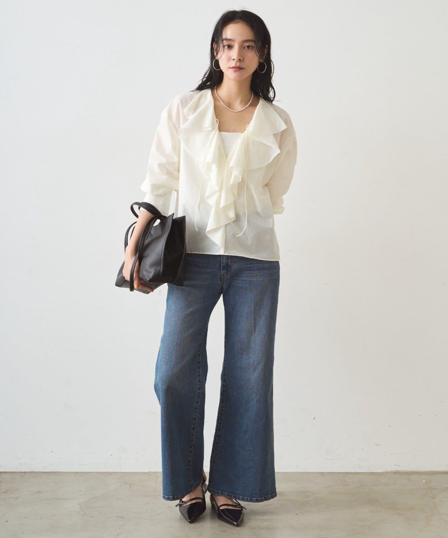 胸前的荷葉邊點睛之筆,也建議作為外套內搭。