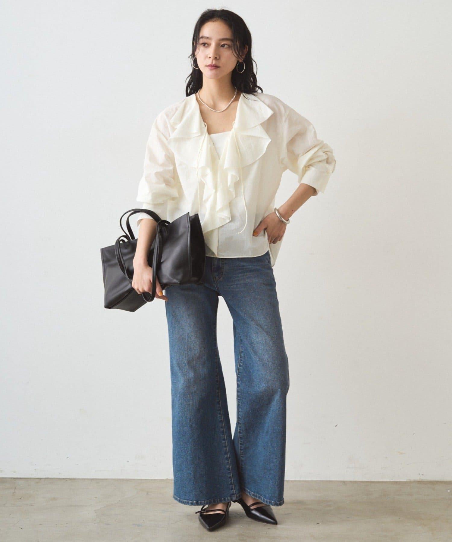 搭配牛仔褲或寬鬆長褲,展現成人休閒風格的閒適感,保持上衣的甜美。