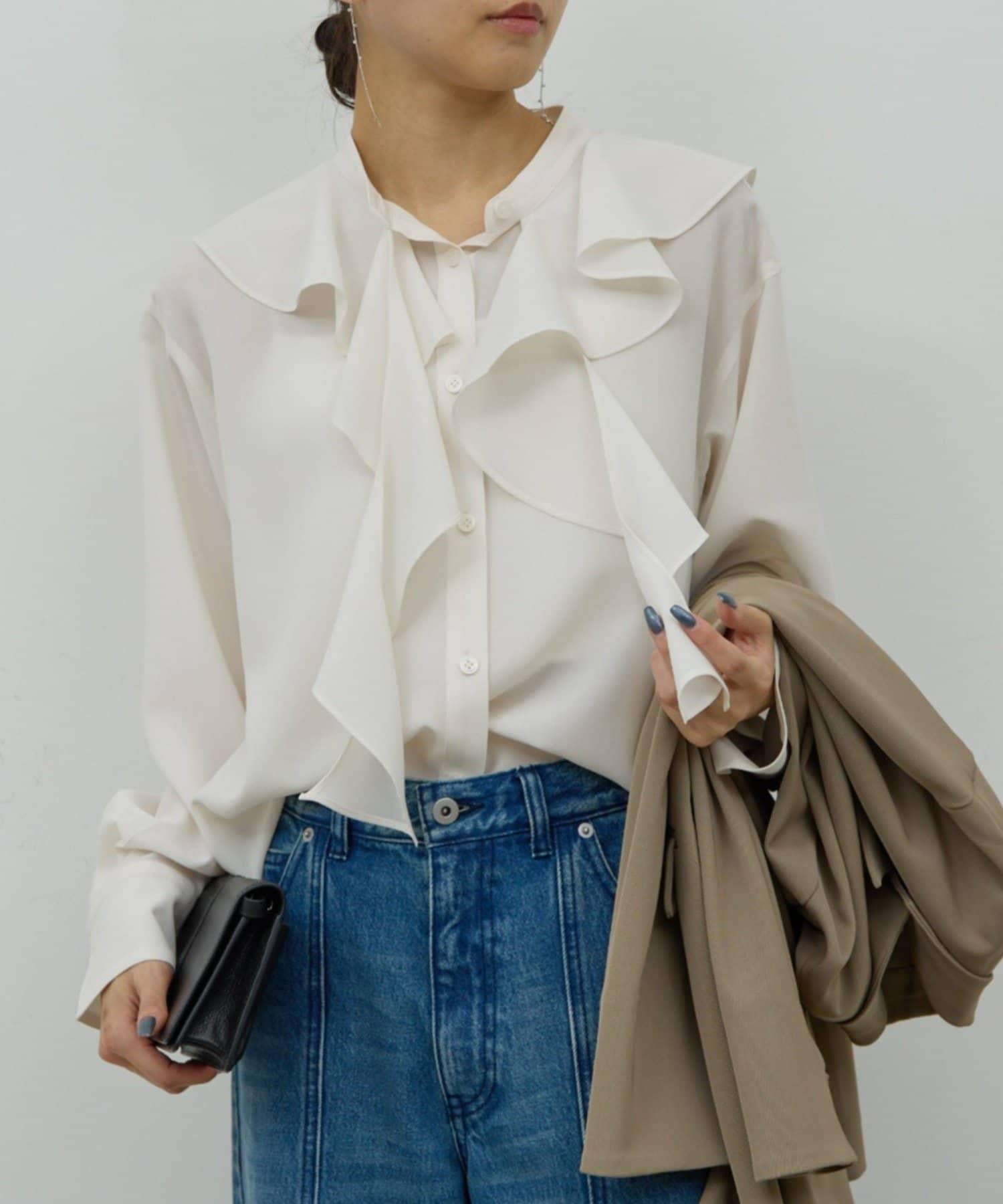 根據搭配的單品不同,這件上衣也有不同的表情。
