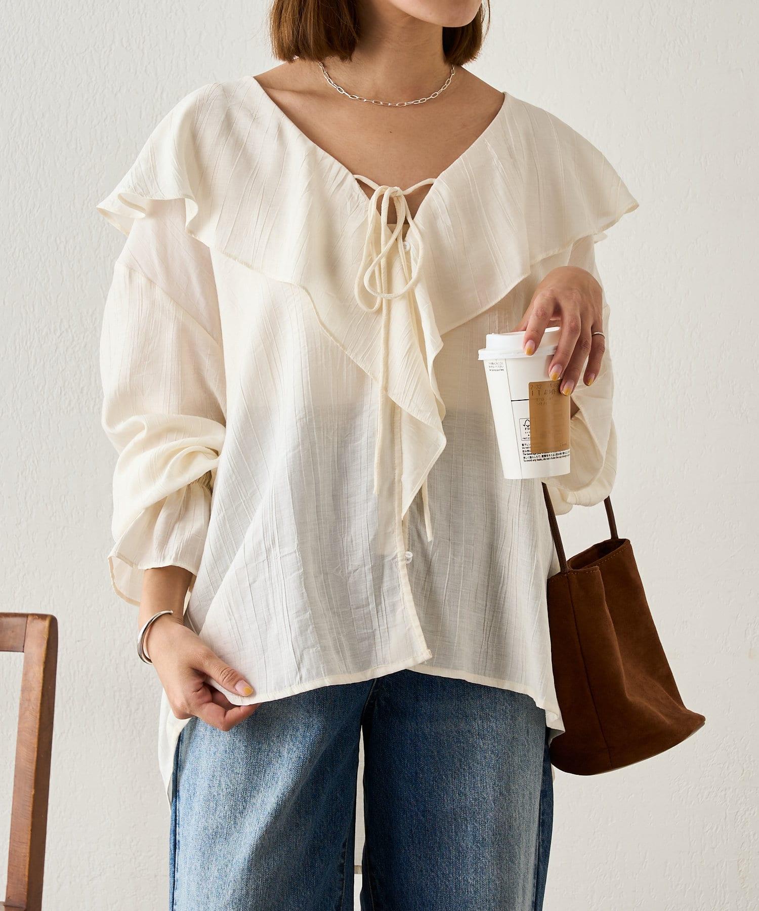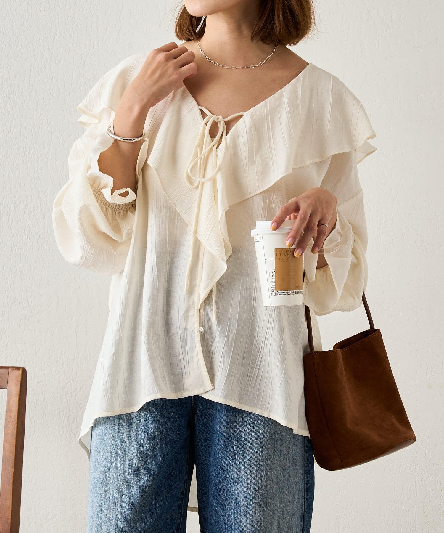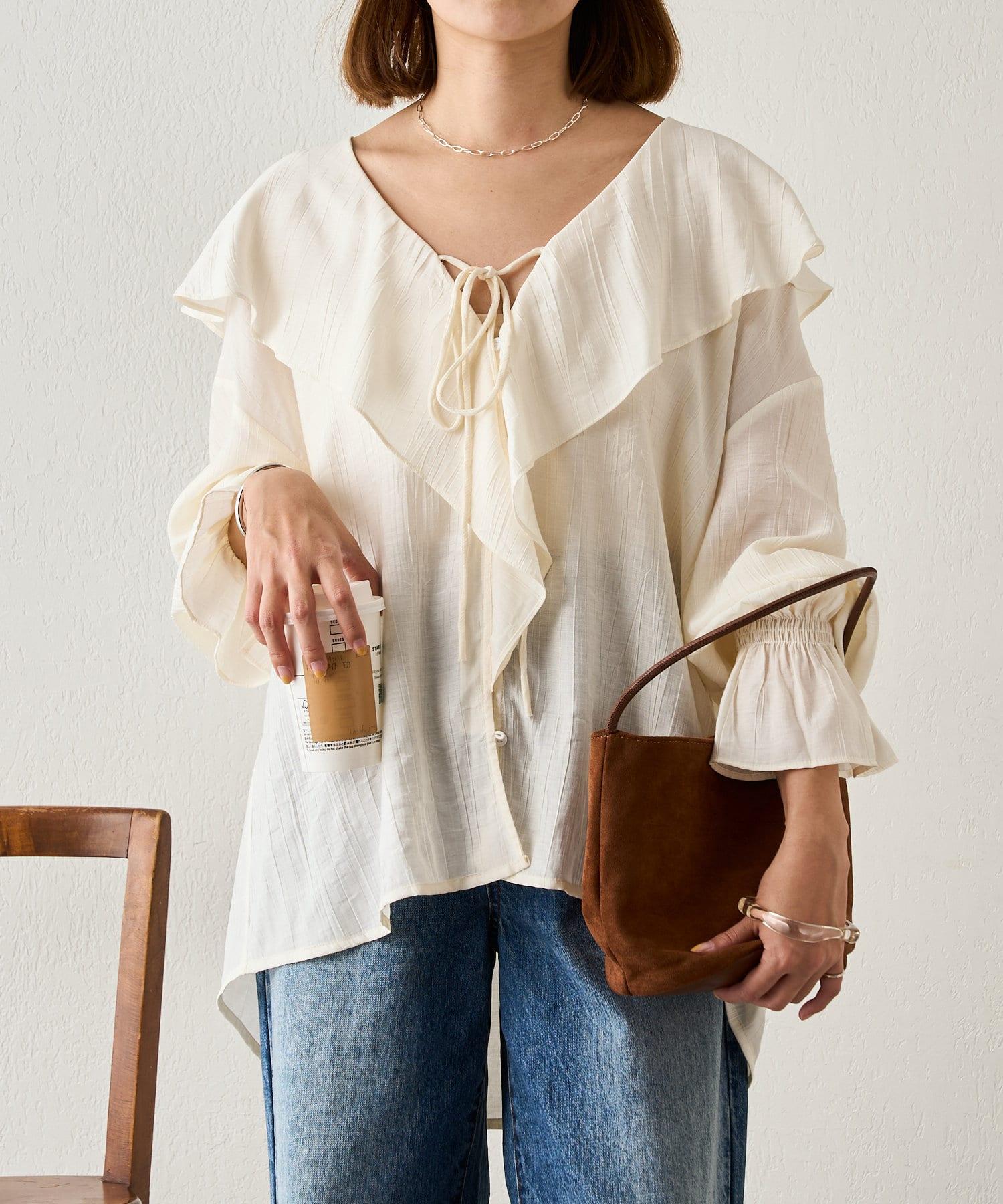 成人化的可愛襯衫,領口有豐滿的流蘇。