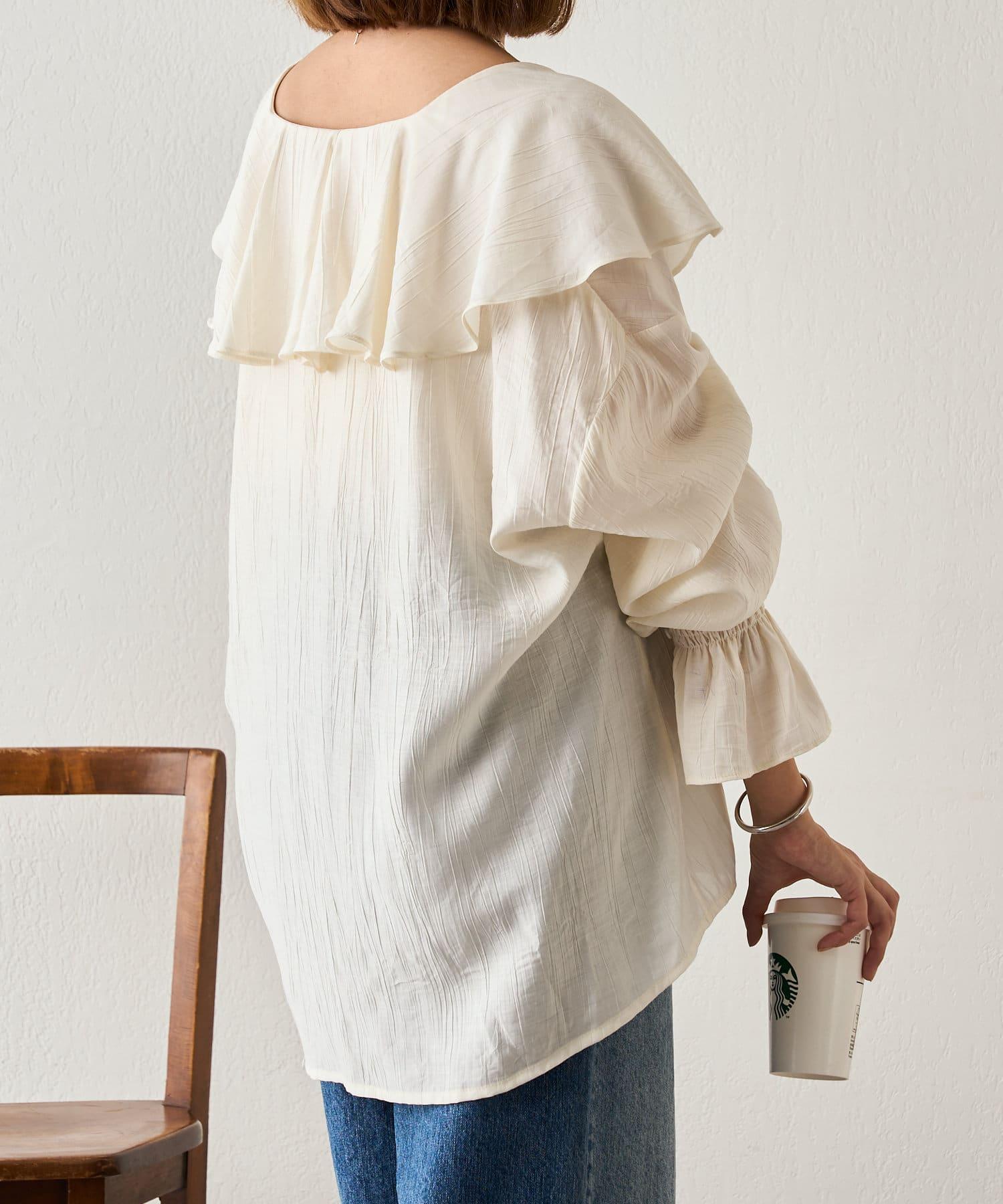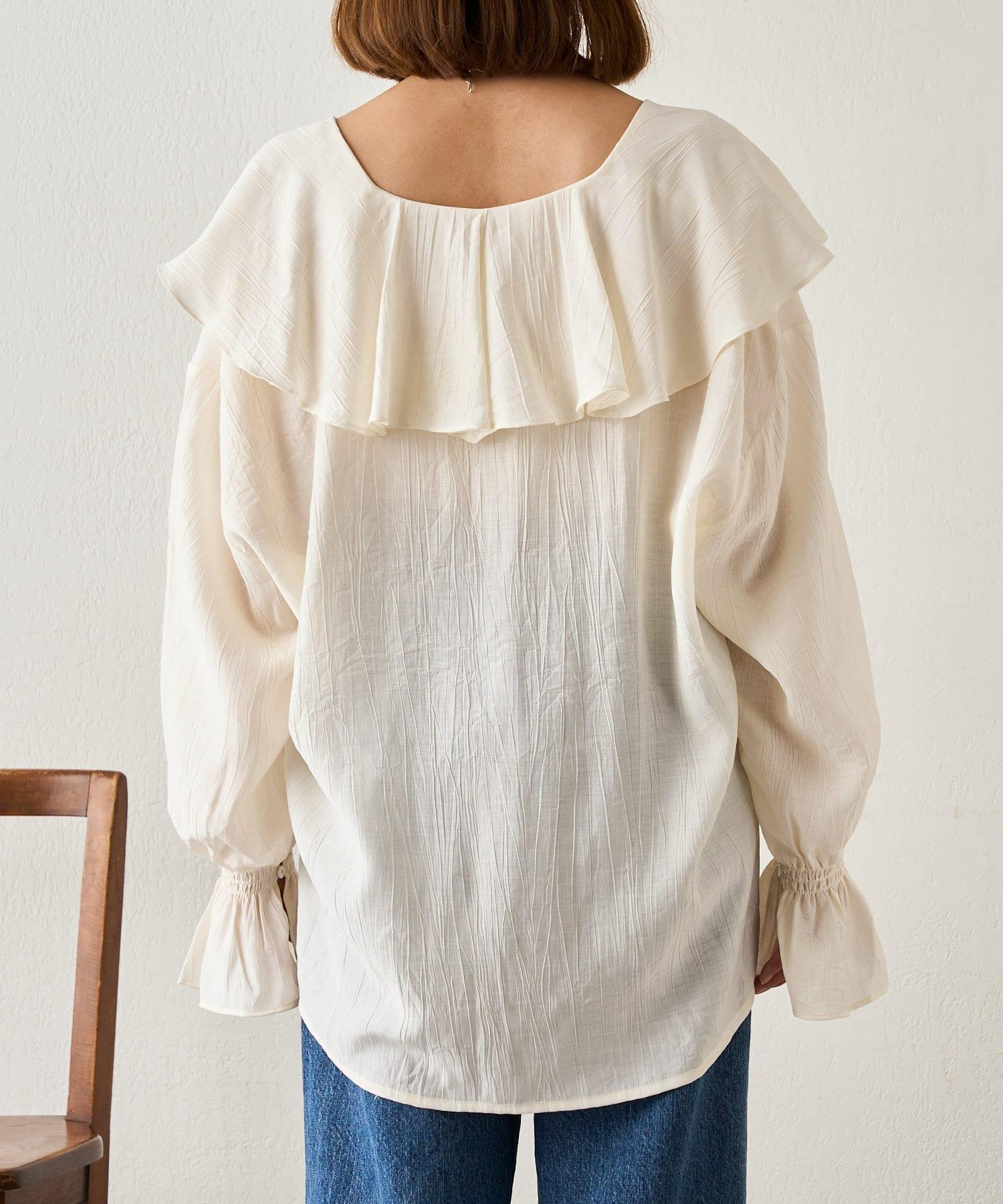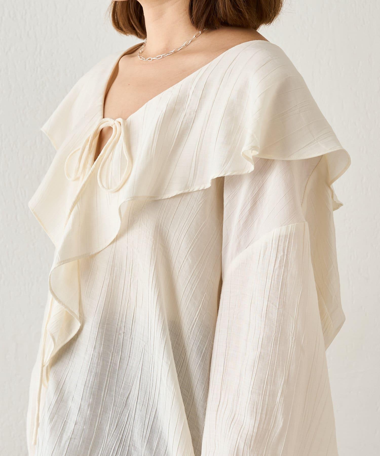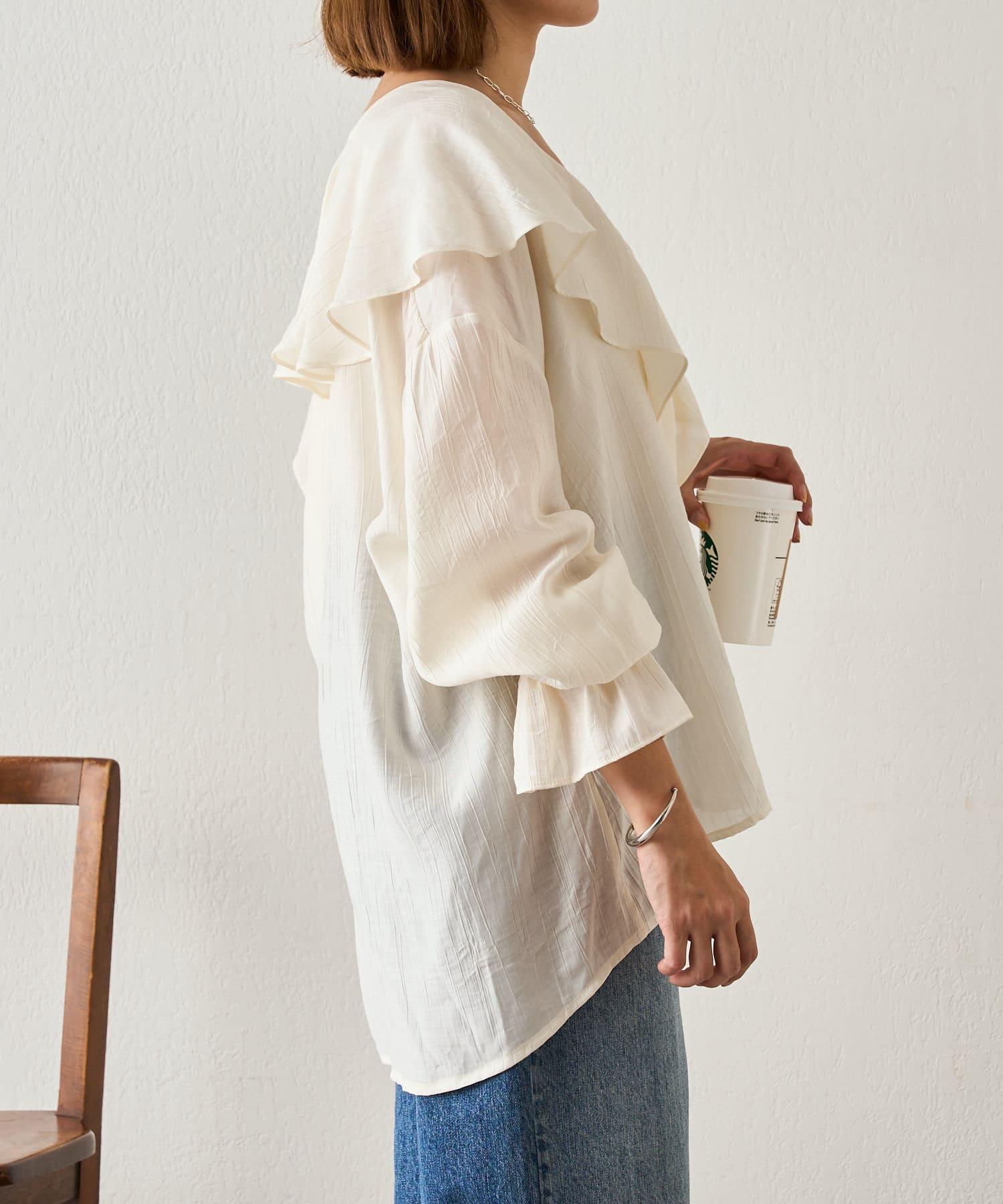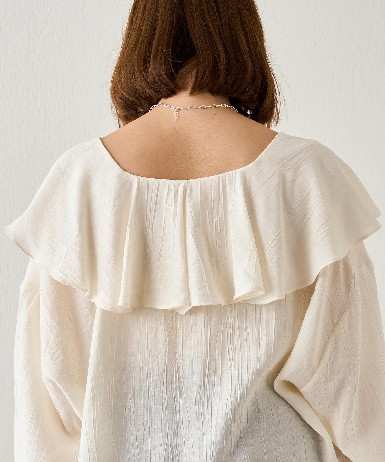 荷葉邊大領給人一種環繞臉部的華麗印象。