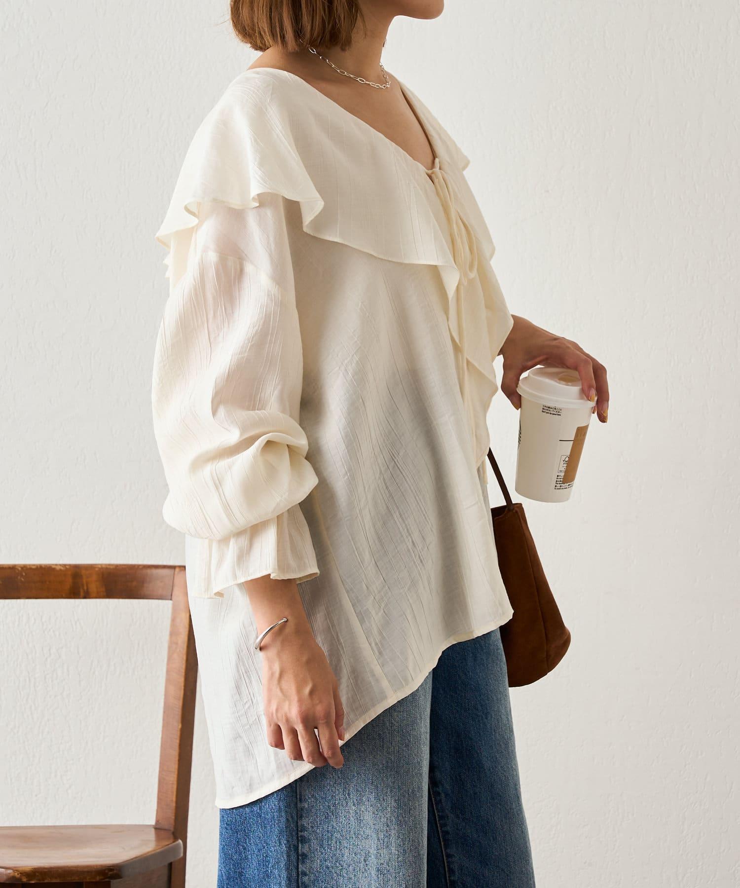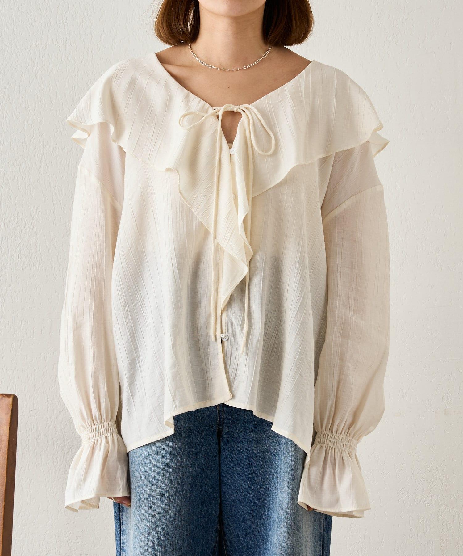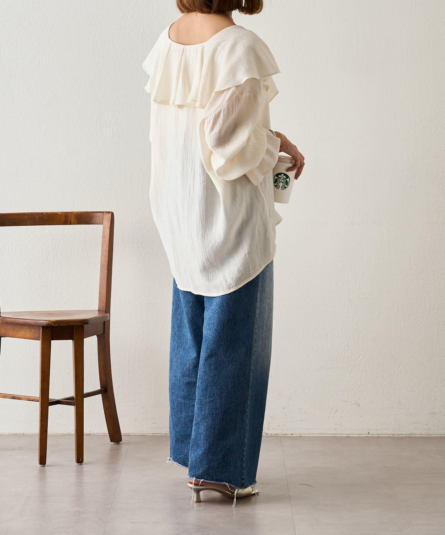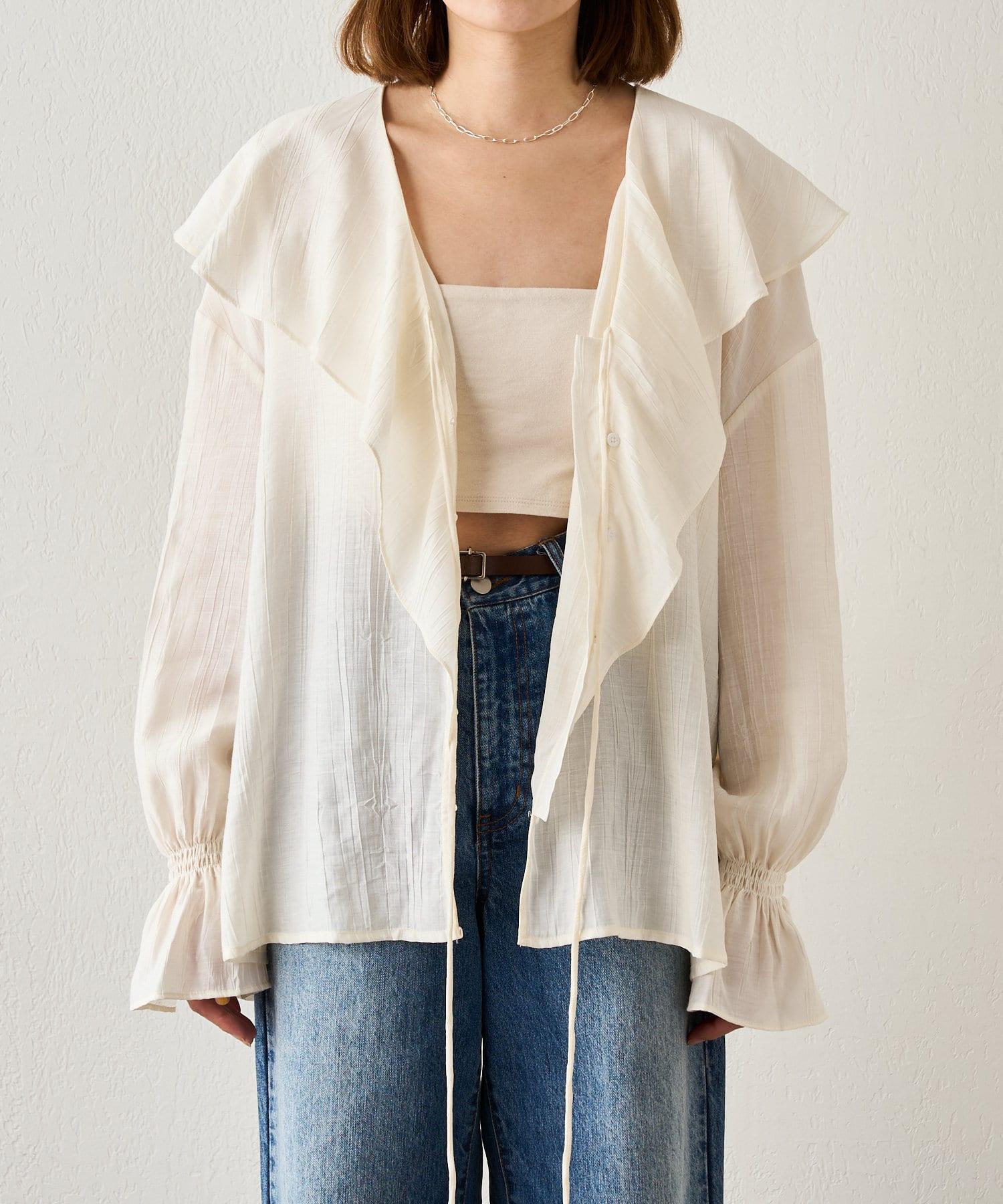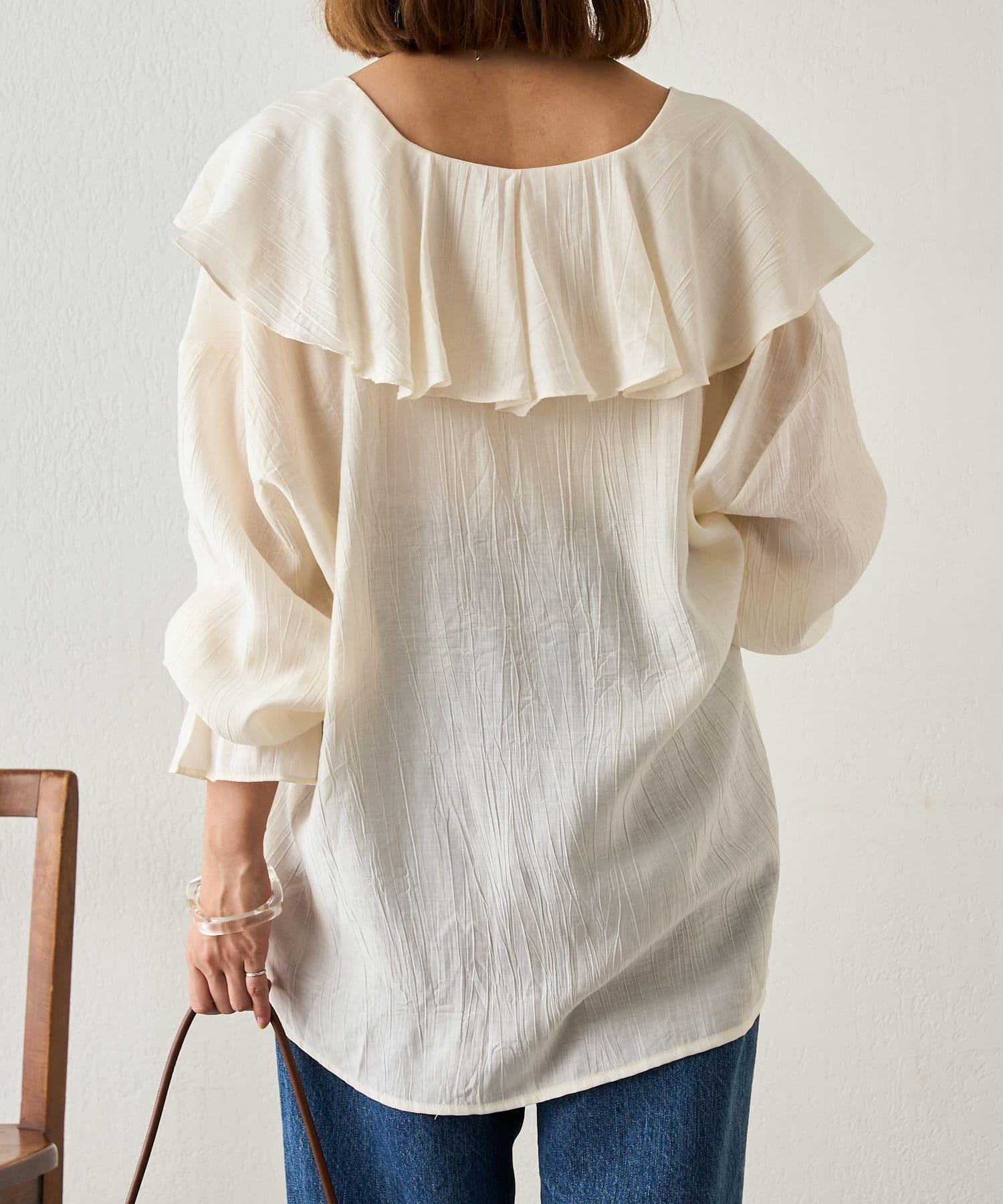 荷葉邊大領給人一種環繞臉部的華麗印象。