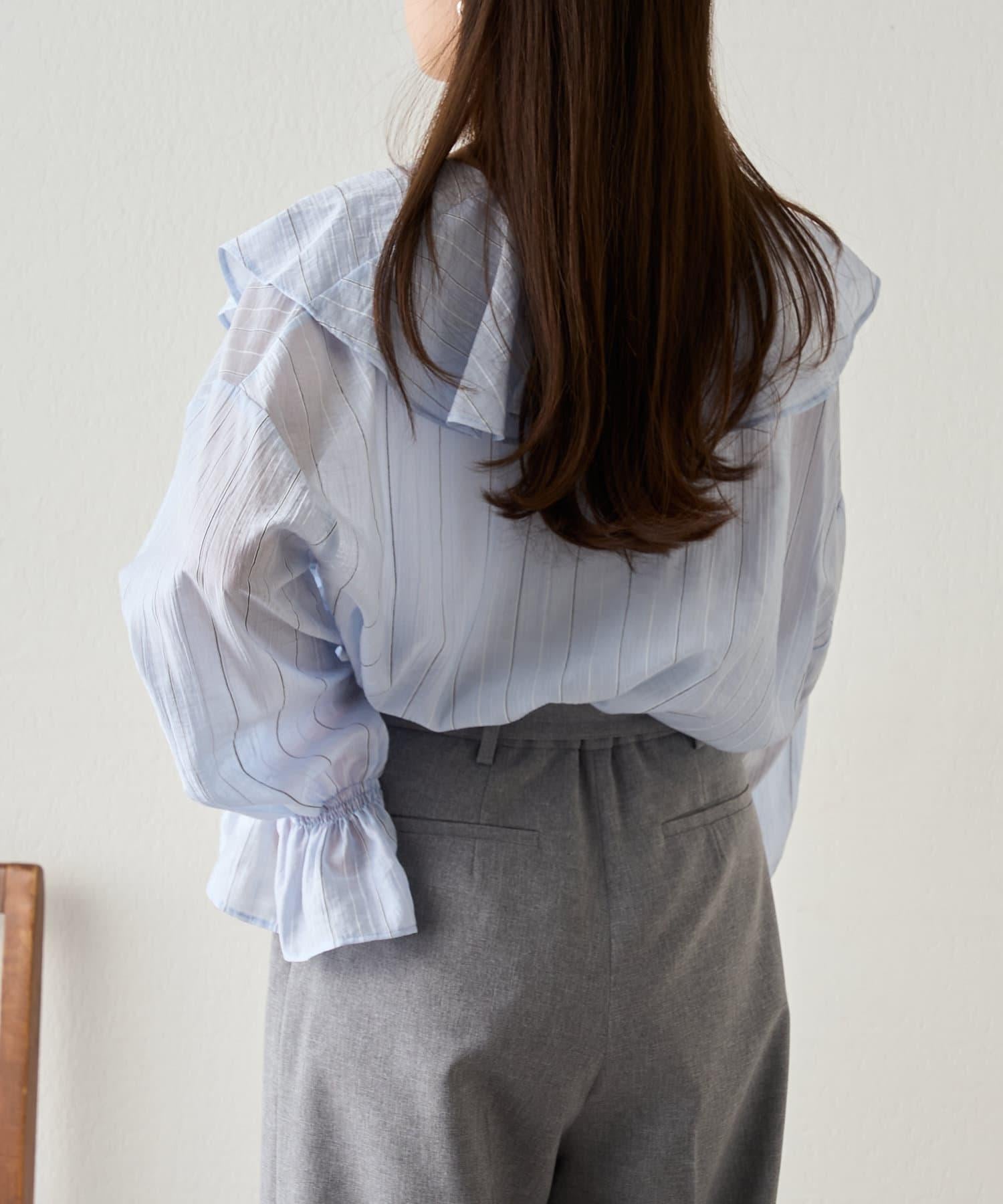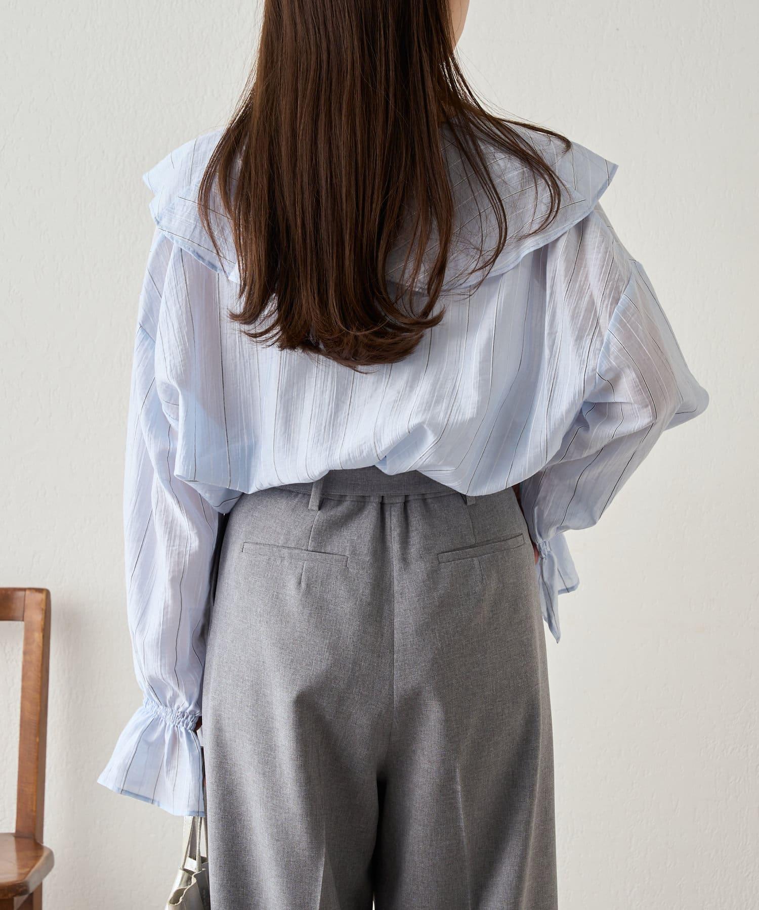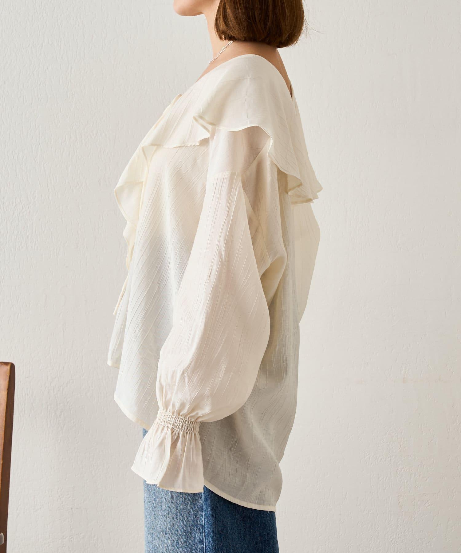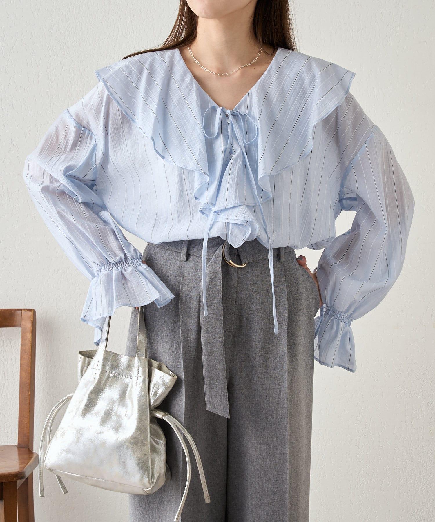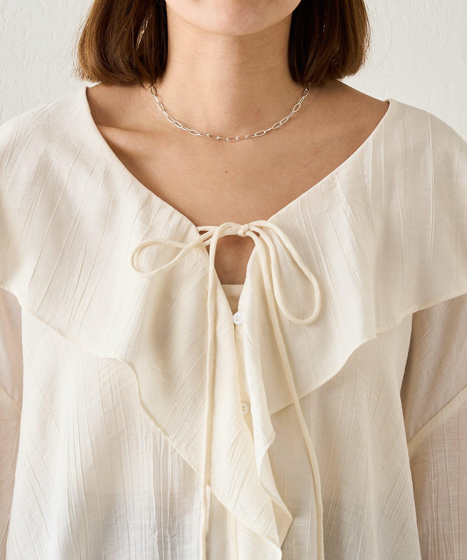 荷葉邊大領給人一種環繞臉部的華麗印象。