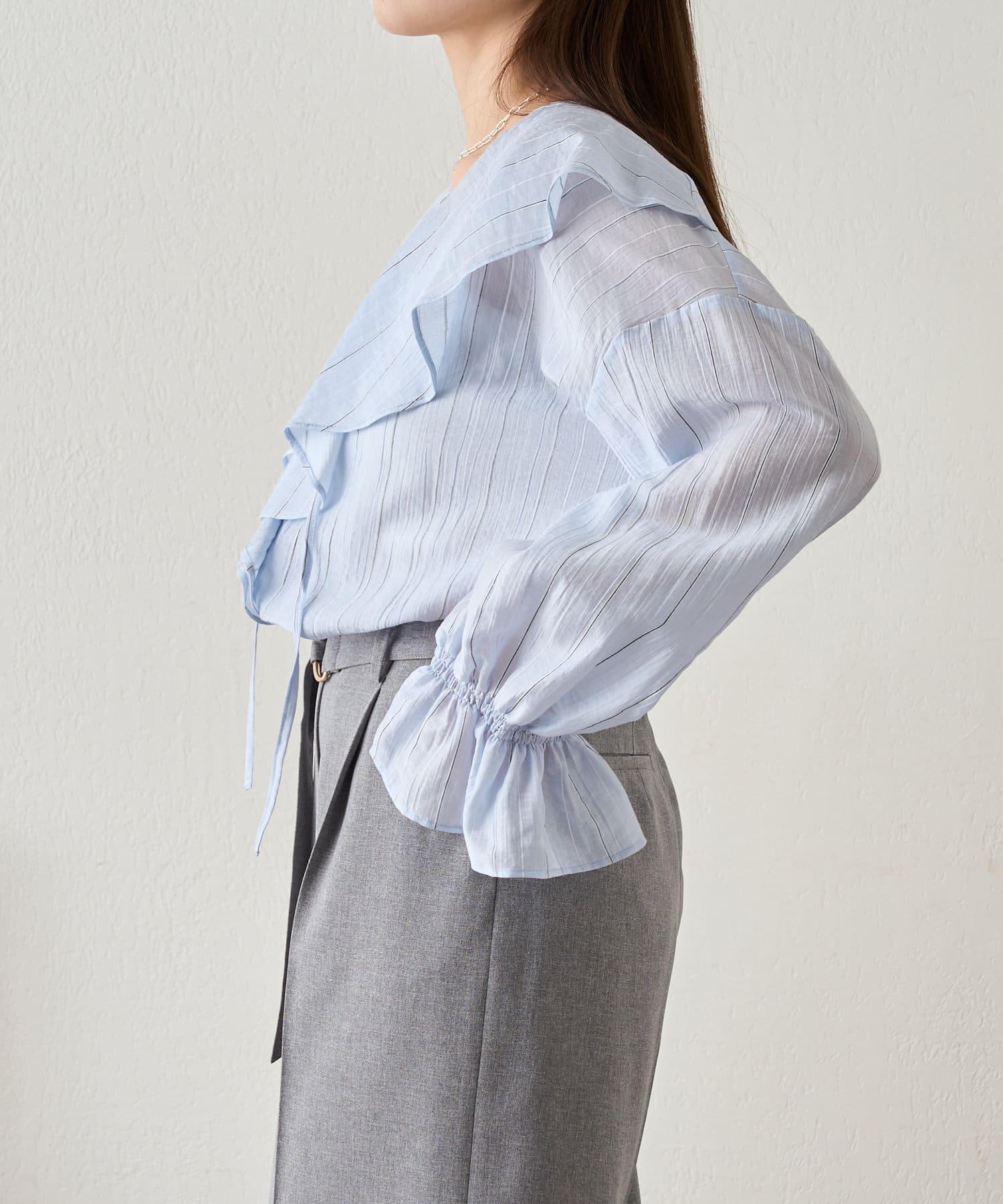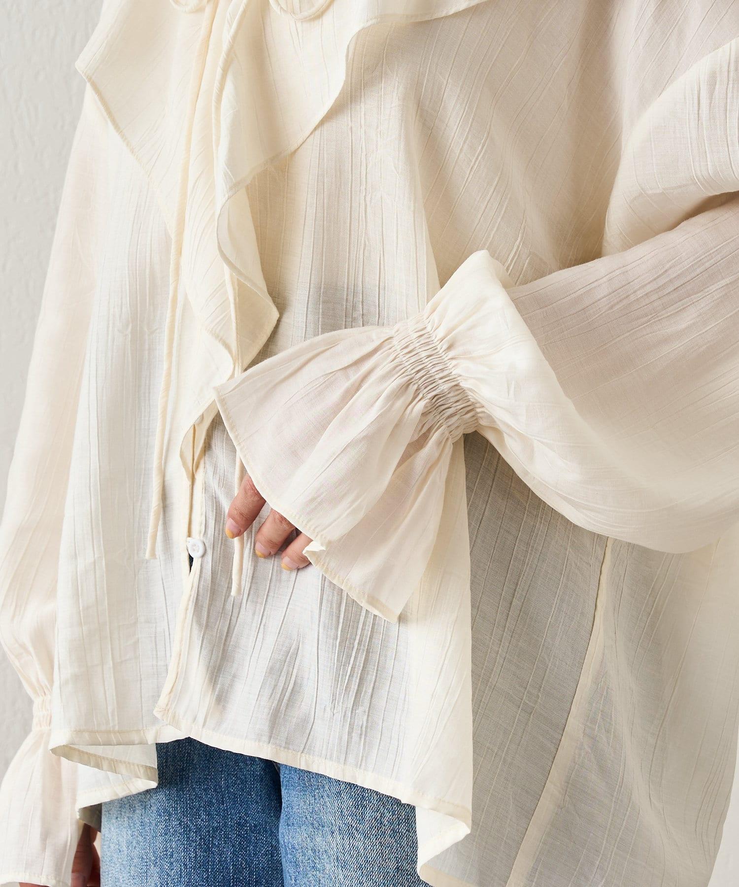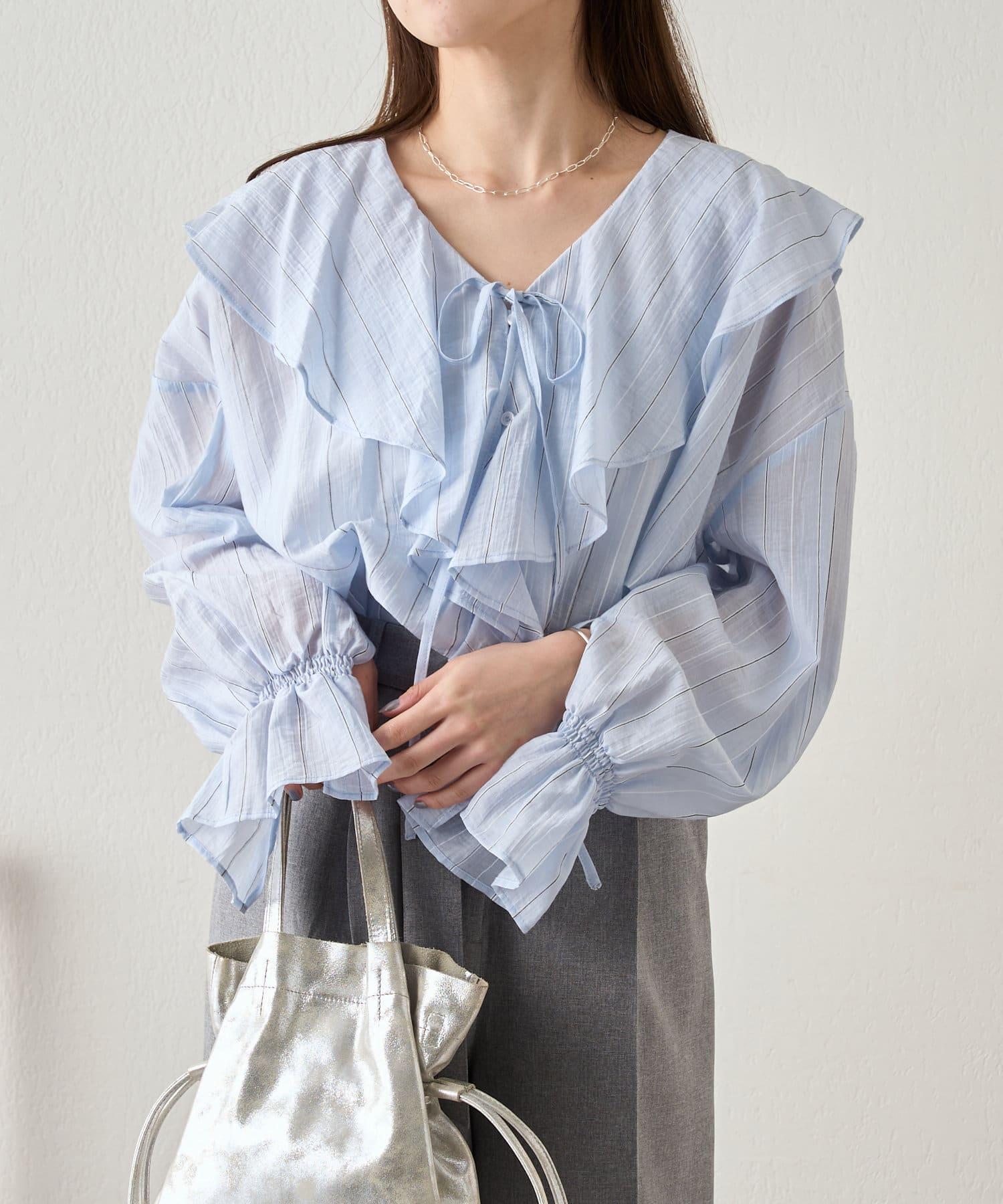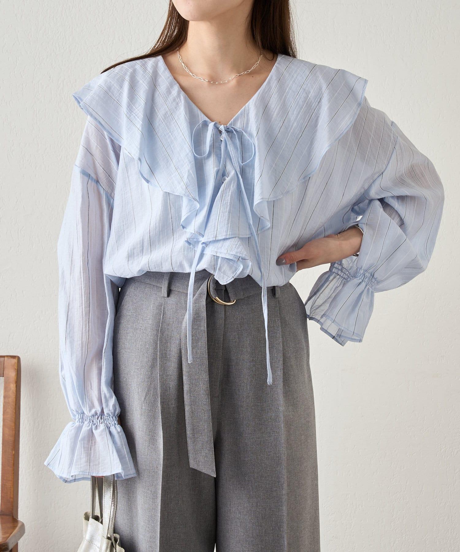 荷葉邊大領給人一種環繞臉部的華麗印象。