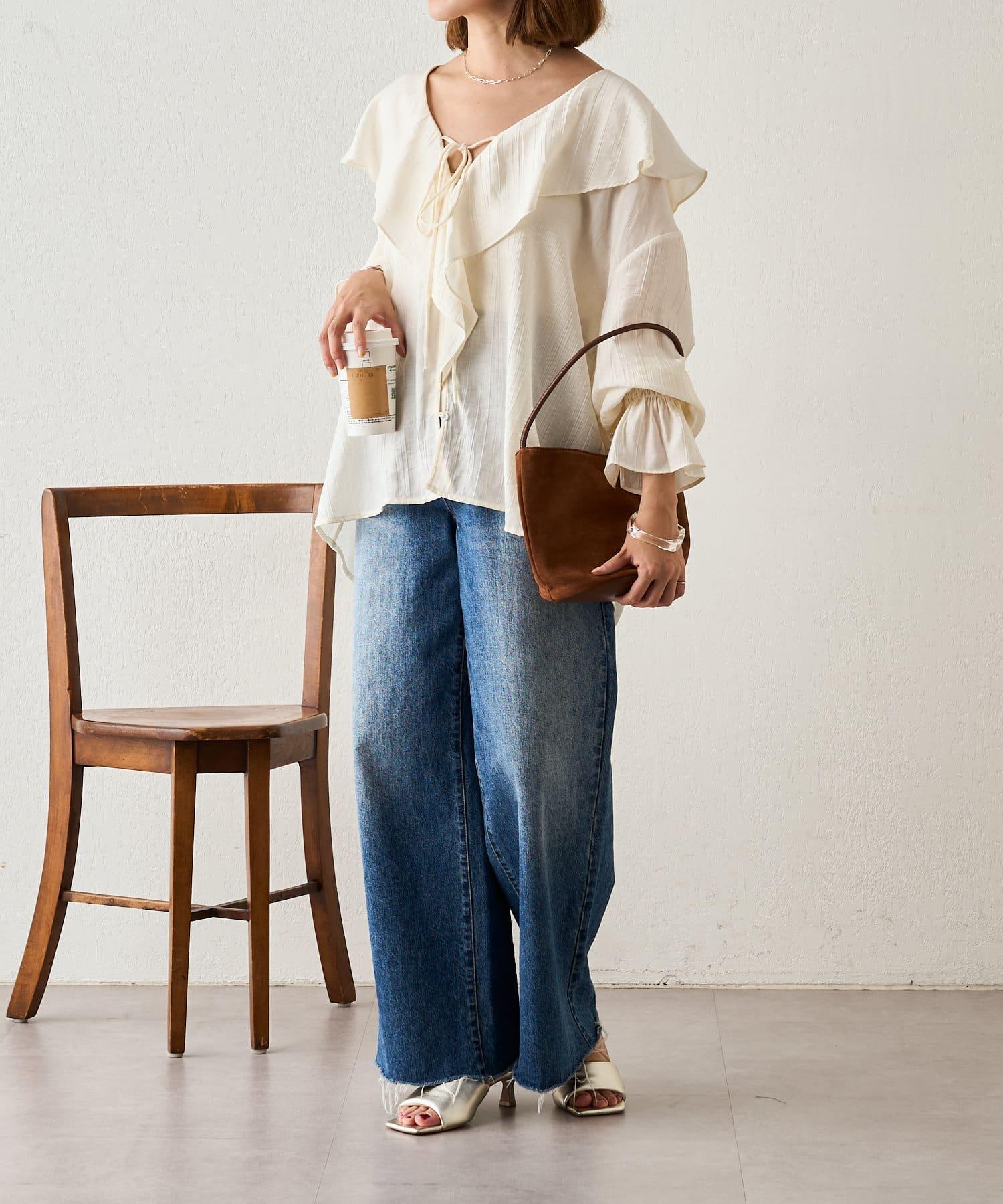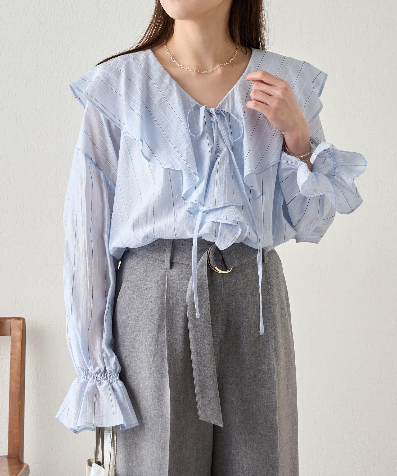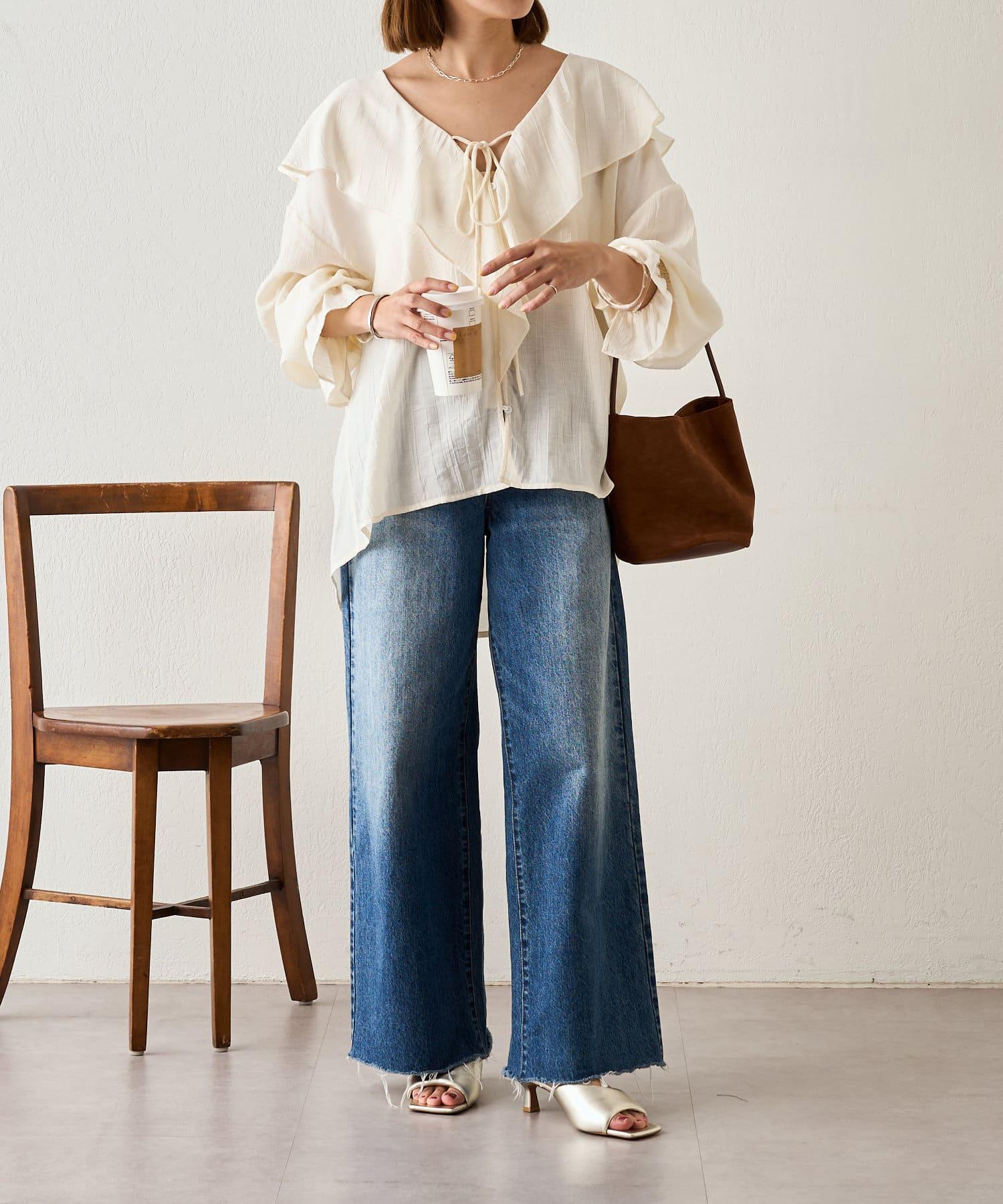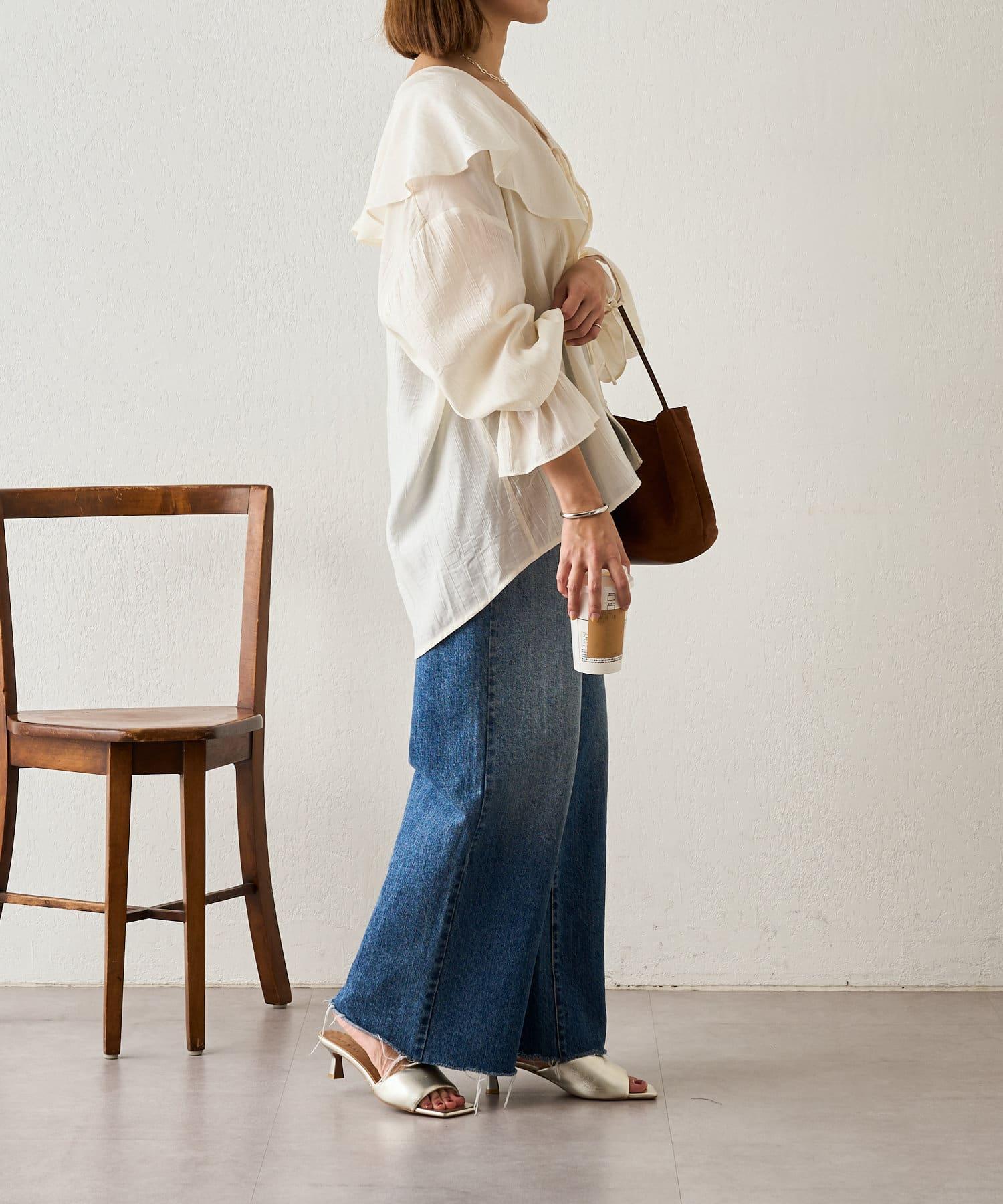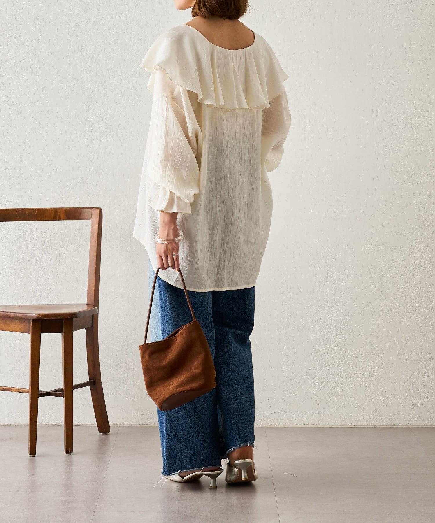 荷葉邊大領給人一種環繞臉部的華麗印象。