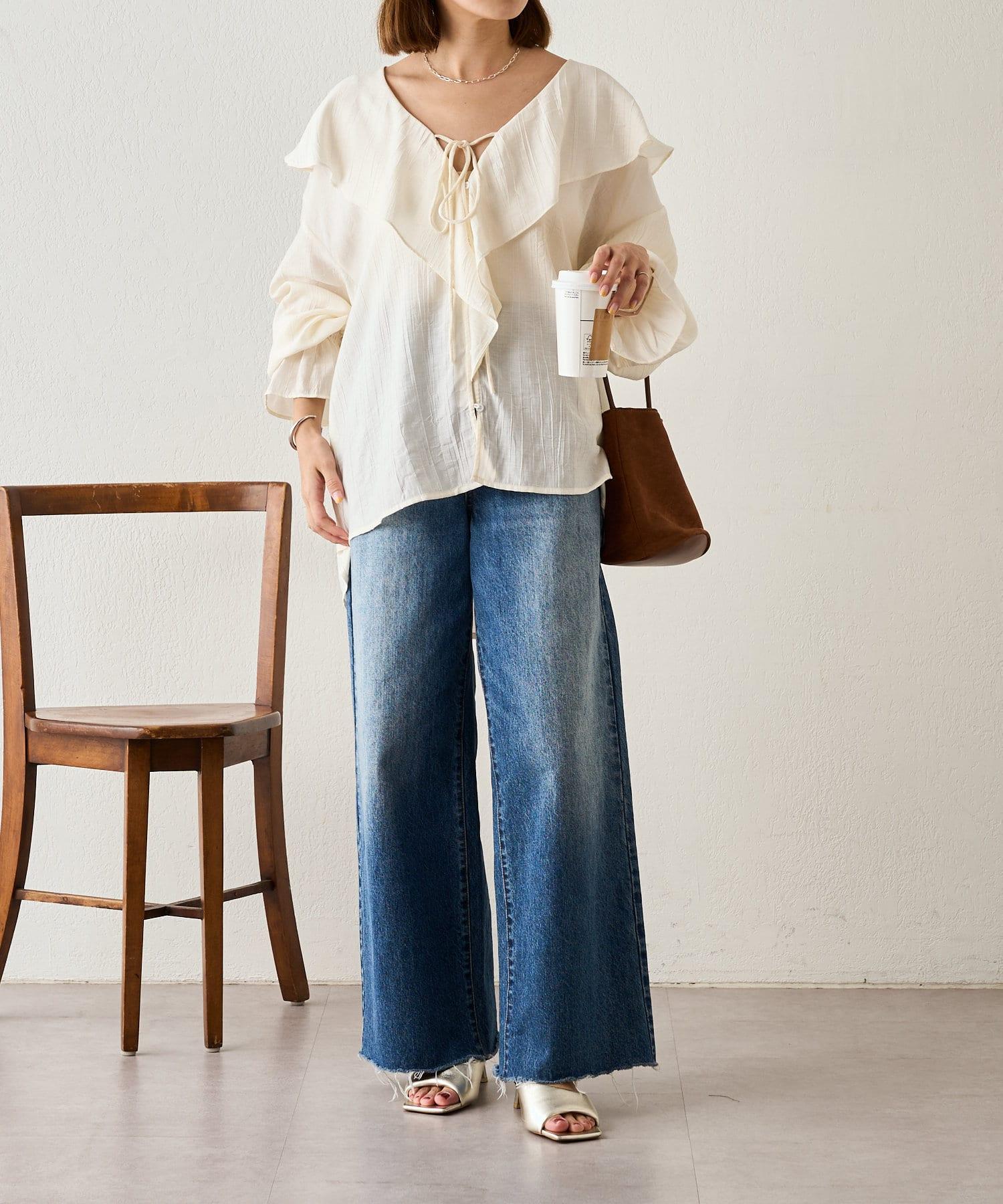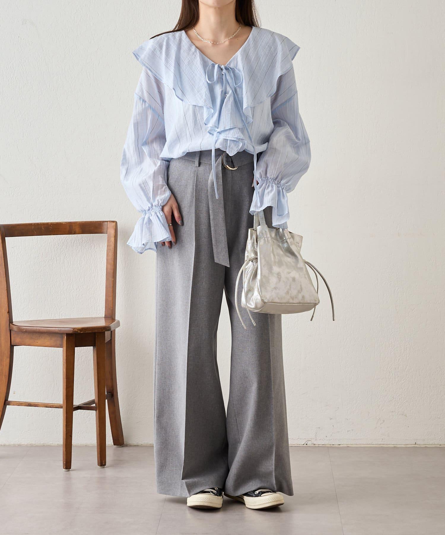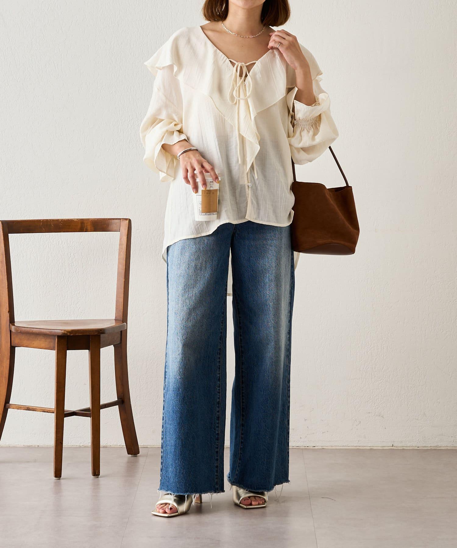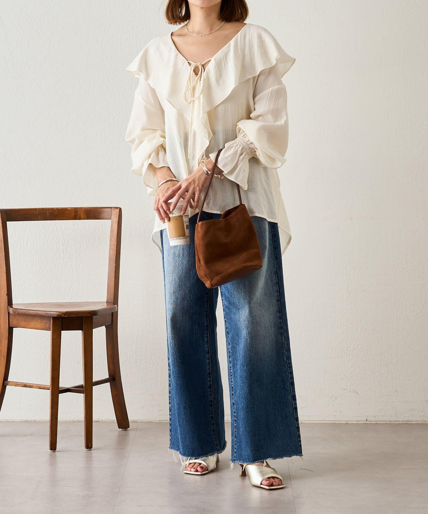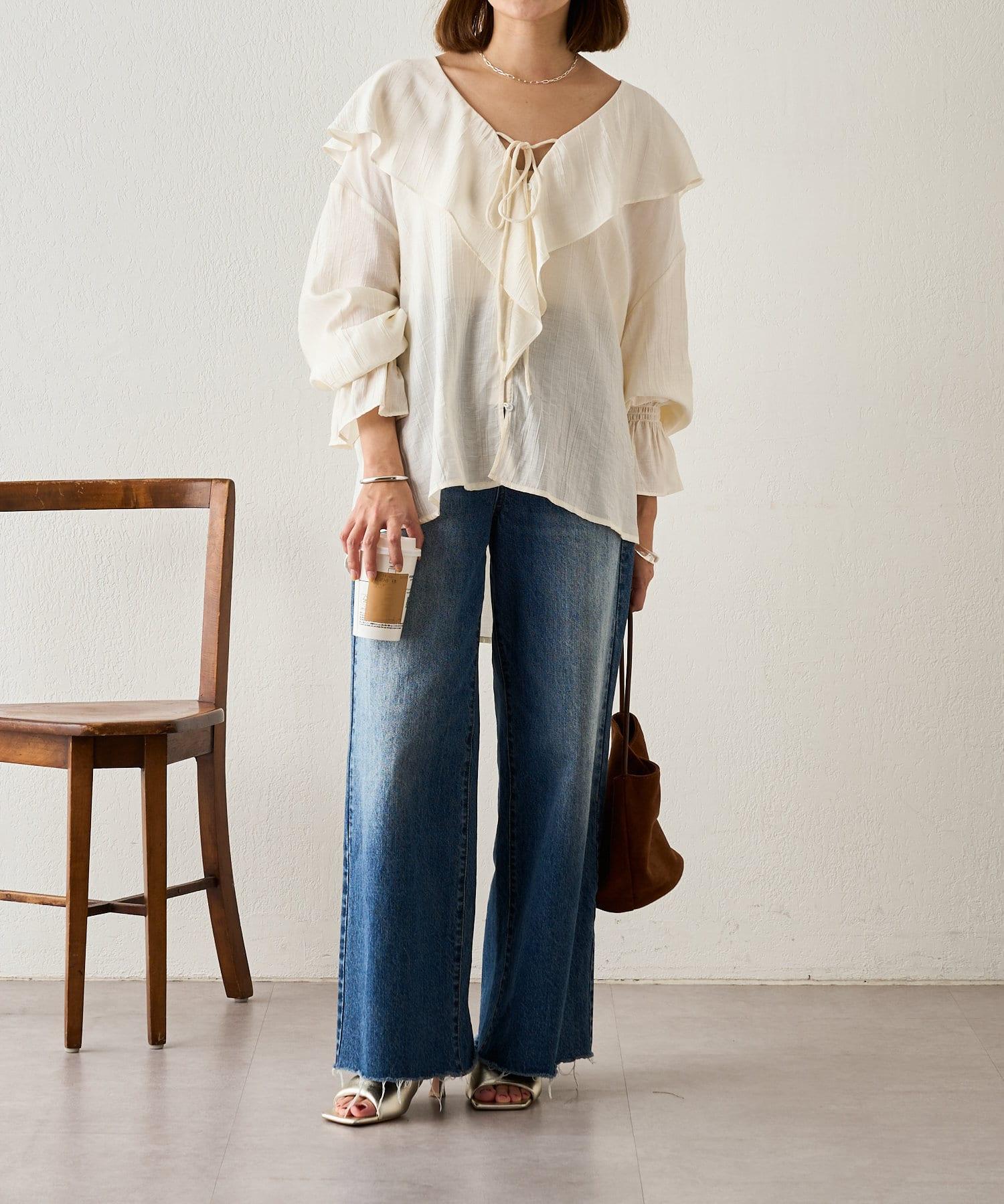 荷葉邊大領給人一種環繞臉部的華麗印象。