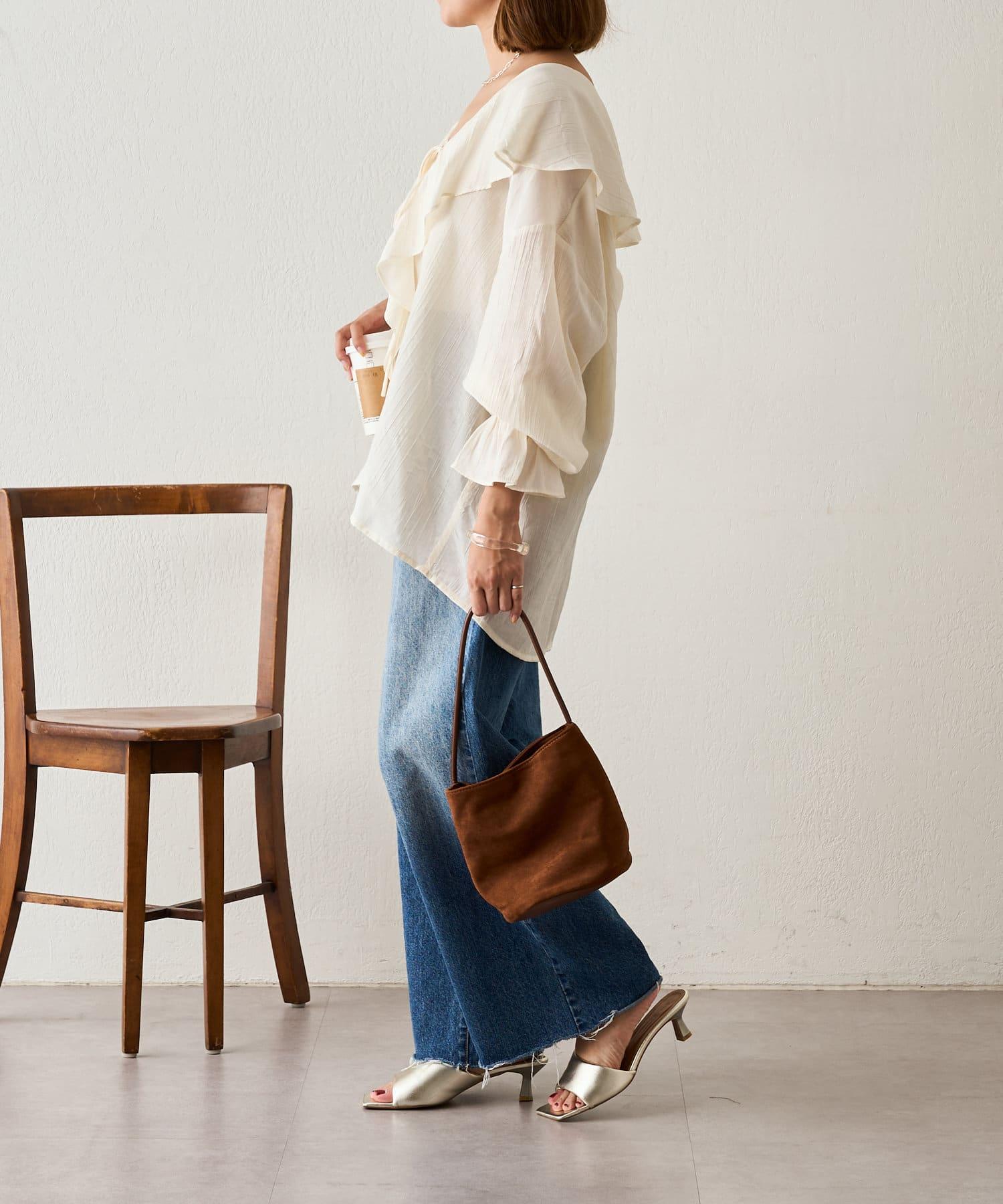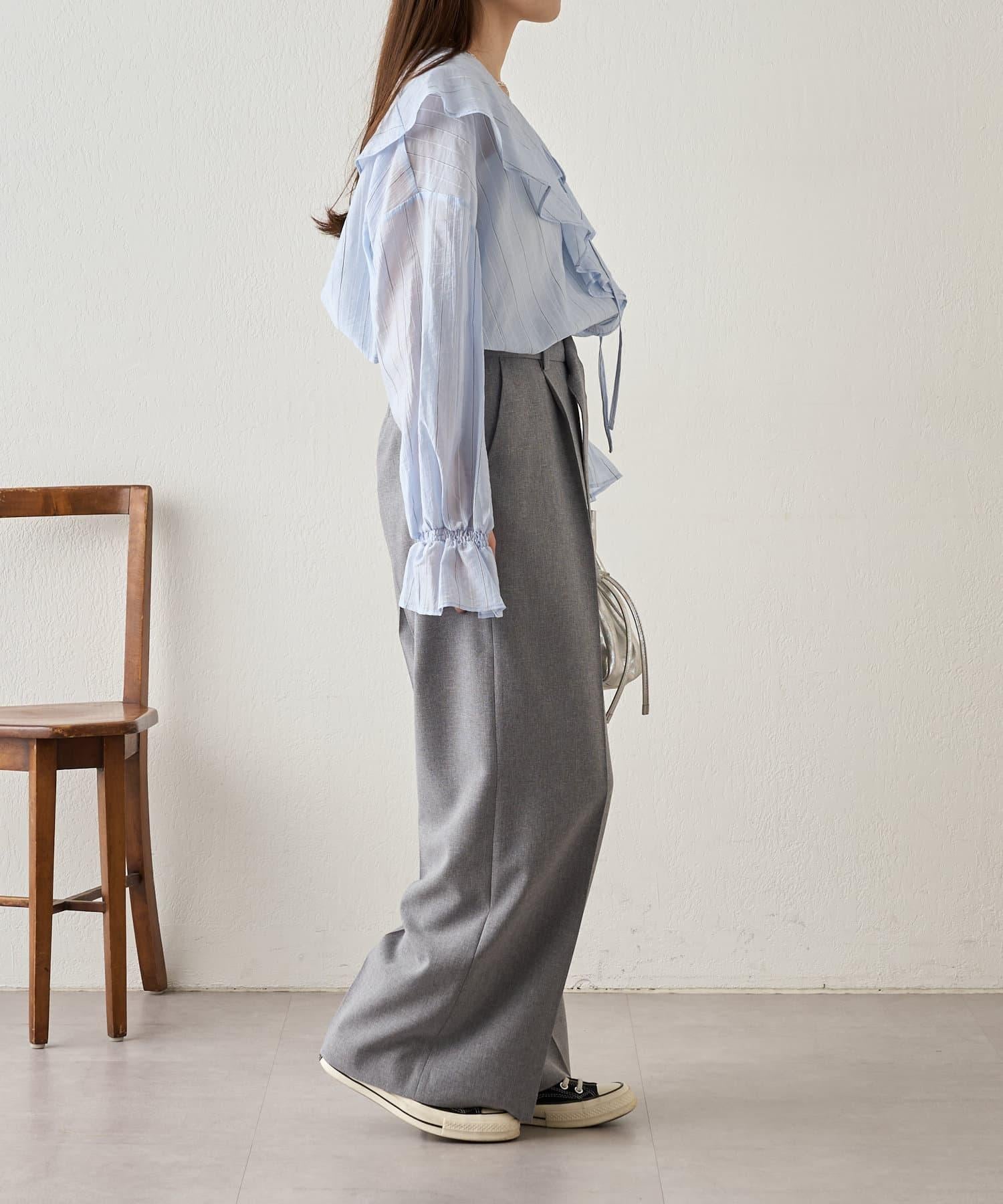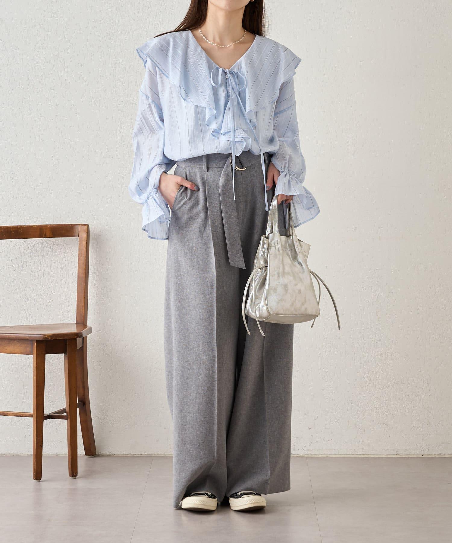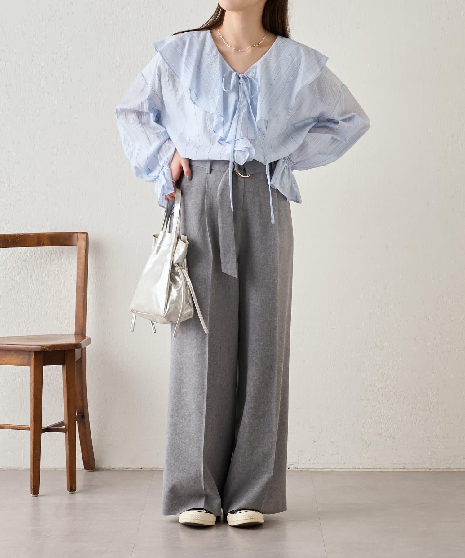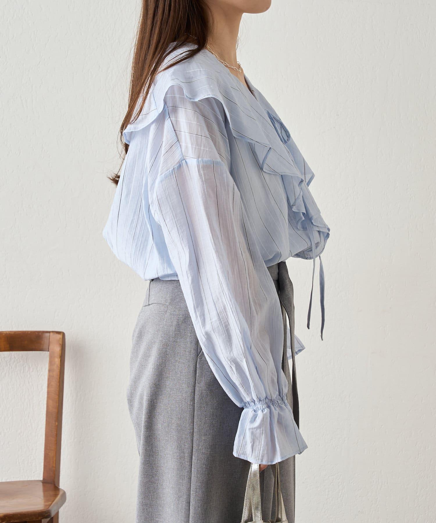 荷葉邊大領給人一種環繞臉部的華麗印象。
