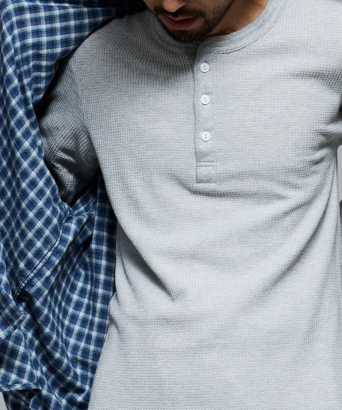 華夫格亨利領長袖套裝T恤 / 保暖內衣