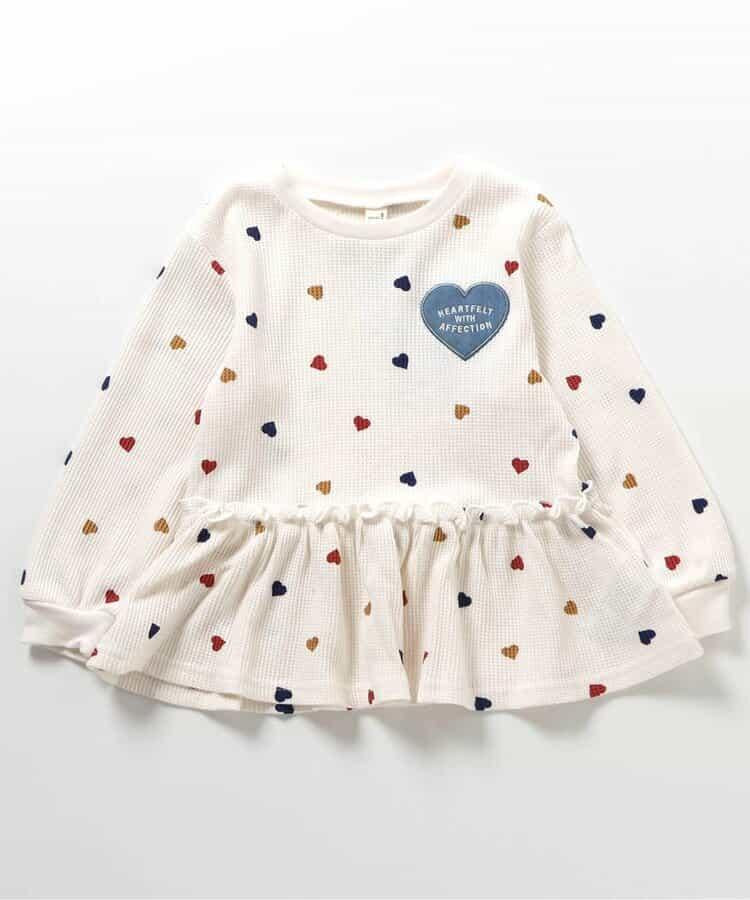apres les cours 長袖 T 恤 "華夫格波點心形圖案 T 恤 "是一款時尚單品,在自然風格中加入了微妙的設計*。