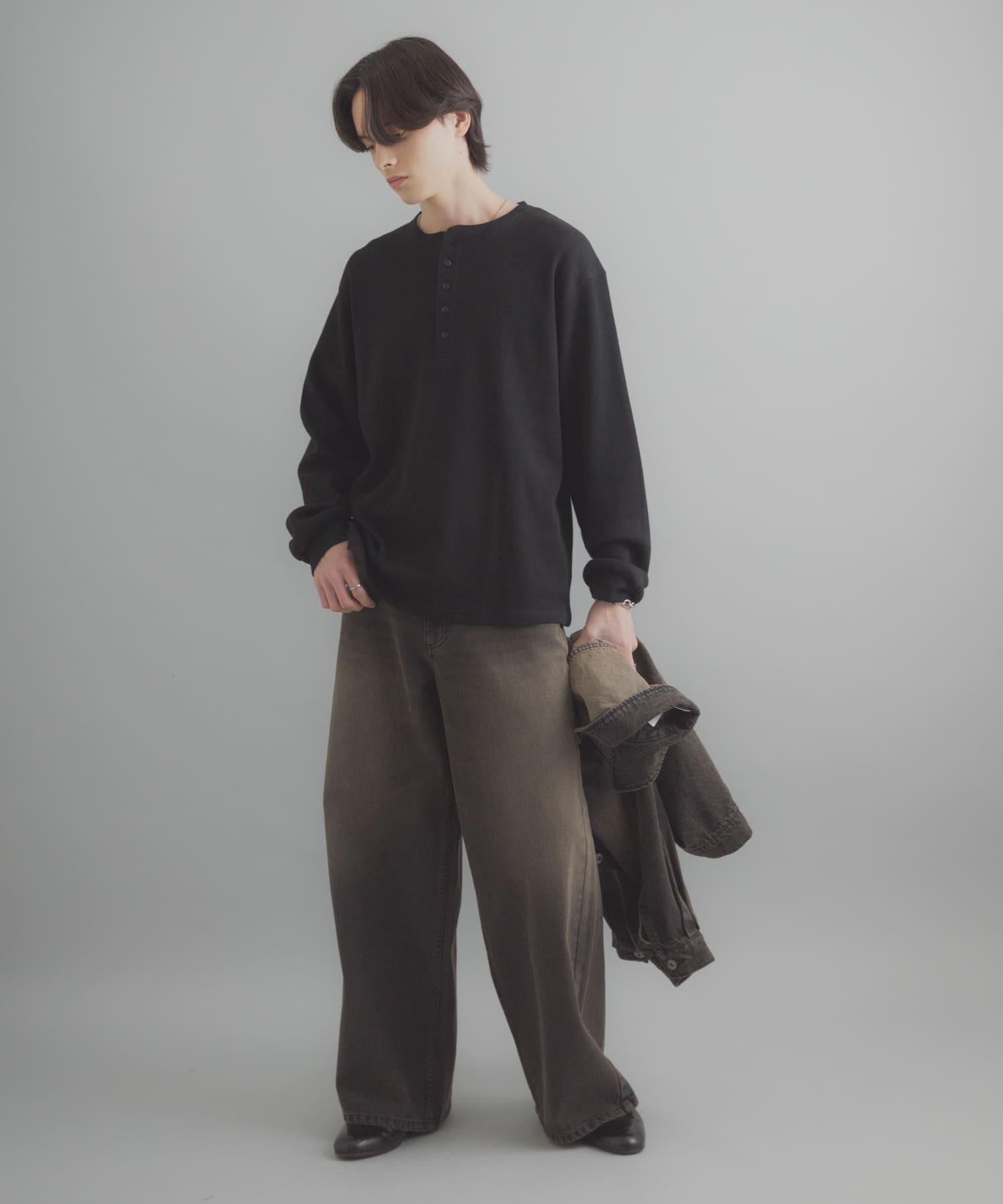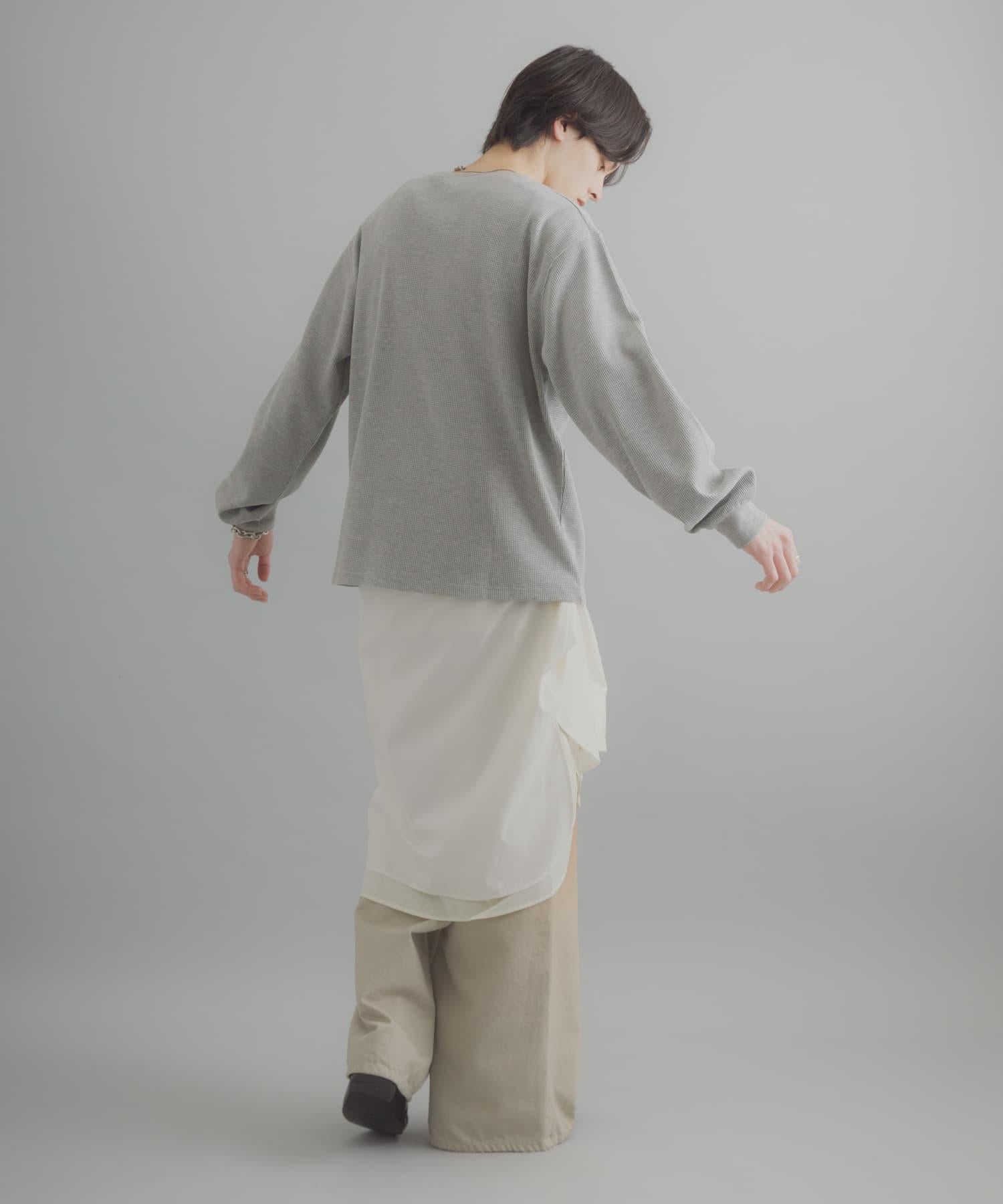 採用柔軟的華夫格面料製成,皮膚觸感舒適。凹凸有致的外觀賦予其層次感,適度的透氣性和保暖性讓您從這個季節一直舒適到初春。