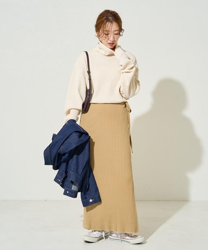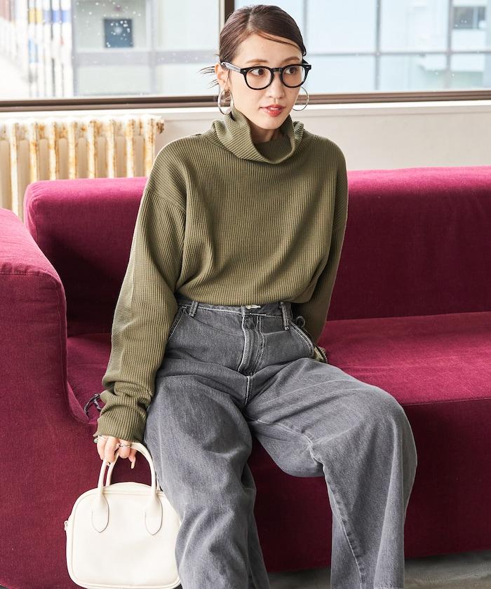 頸部的皺褶輪廓和華夫格面料給人舒適的印象。