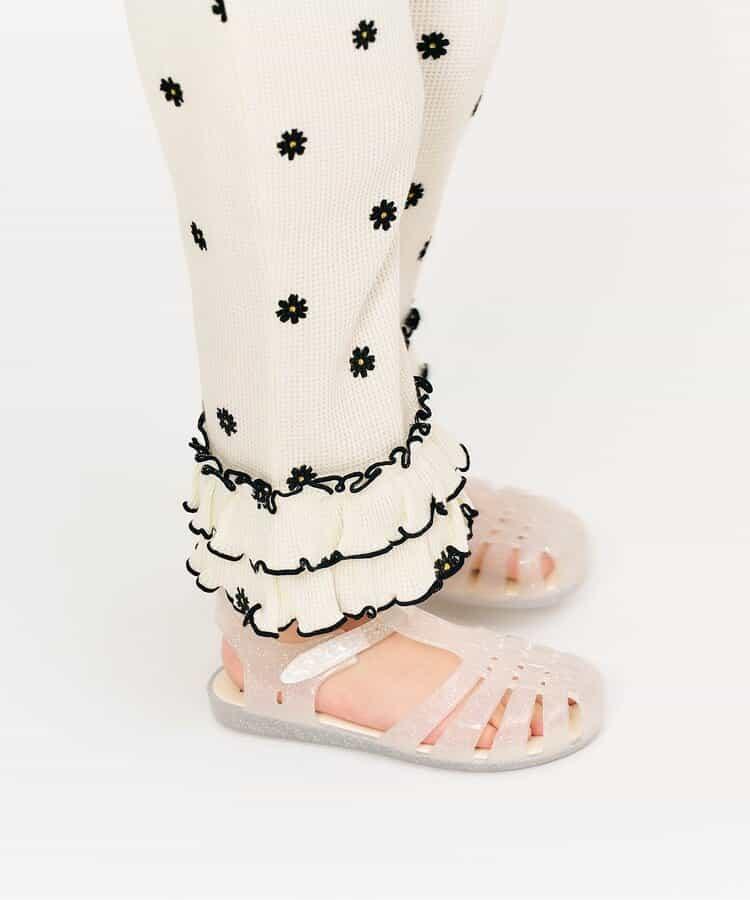 課後套鞋和緊身褲 "Waffle Frill Mellow Leggings_RP "的設計從腳部開始時尚。請盡情搭配溜溜球吧。