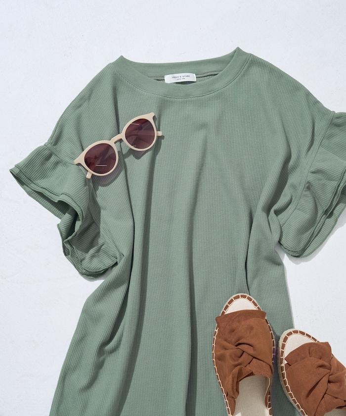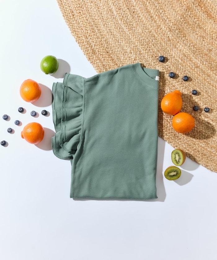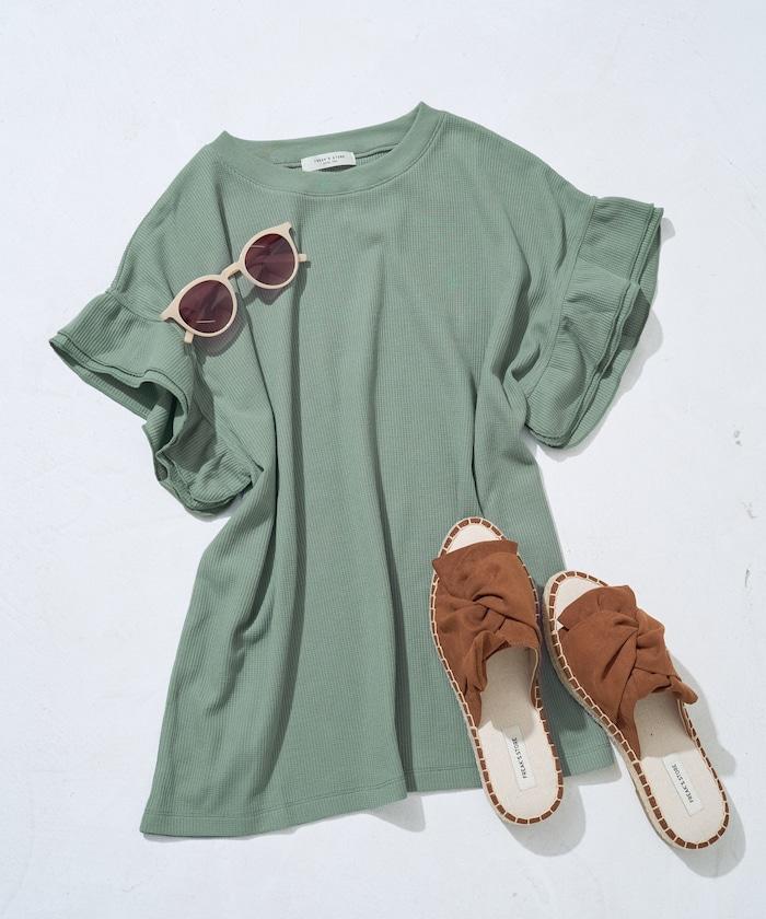 荷葉邊華夫格T恤,恰到好處的女人味和休閒魅力