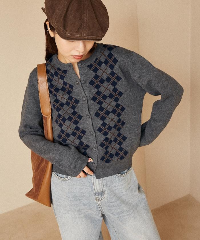 帶有醒目圖案的 Argyle 提花針織開衫