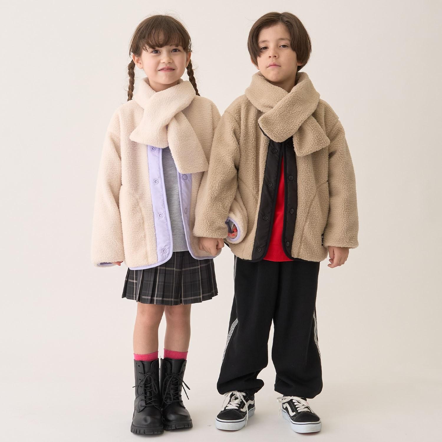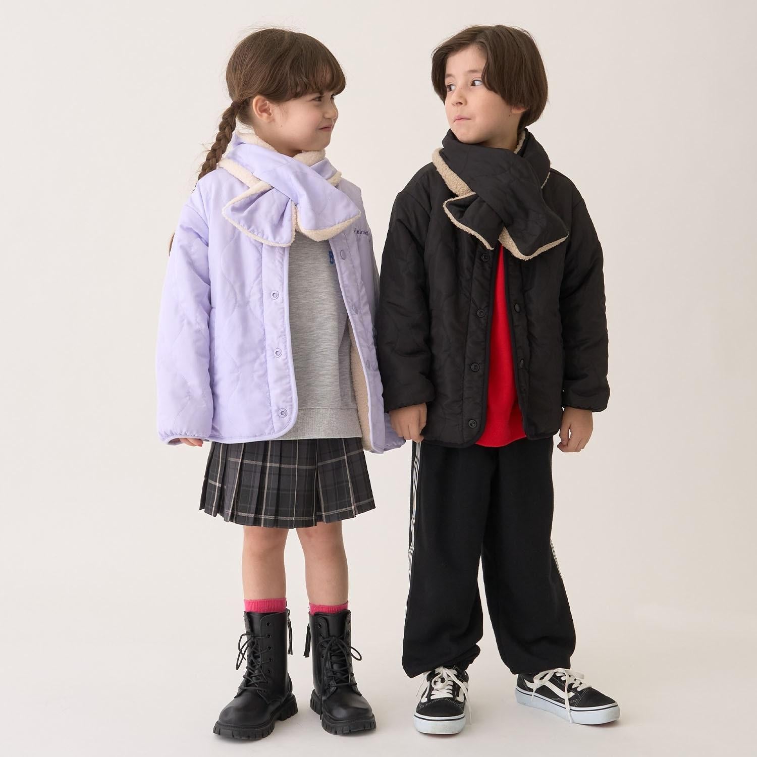 套裝附帶一條圍巾,可以繫上或取下,讓您可以根據心情和氣溫盡情搭配。