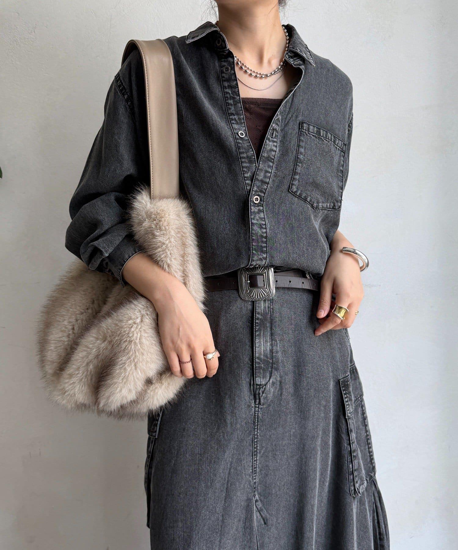 建議搭配與套裝相同材質的 DDZ1052101A0011 / Lyocell 牛仔半身裙。