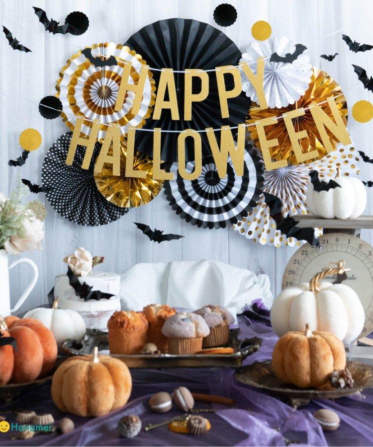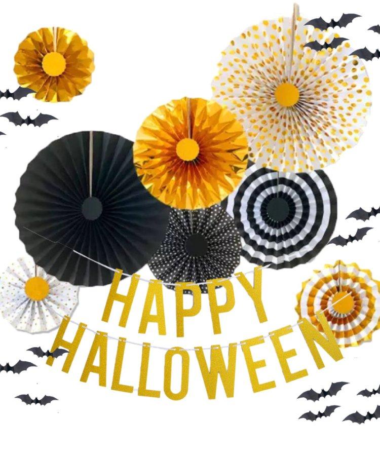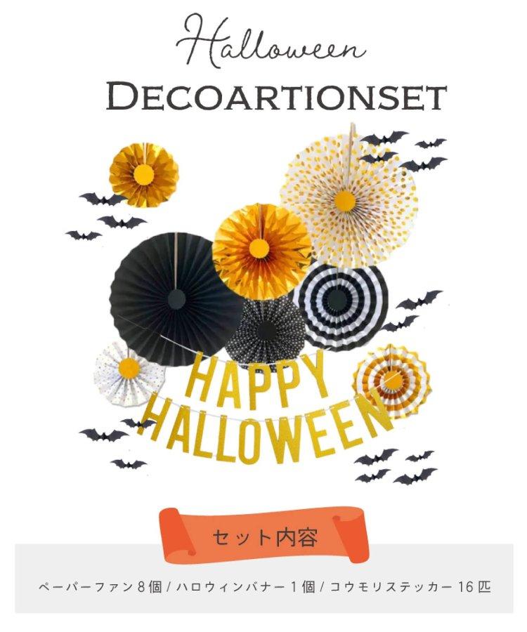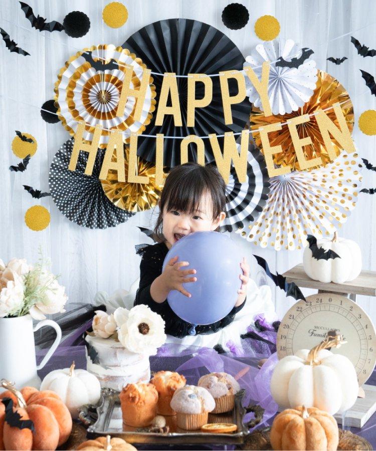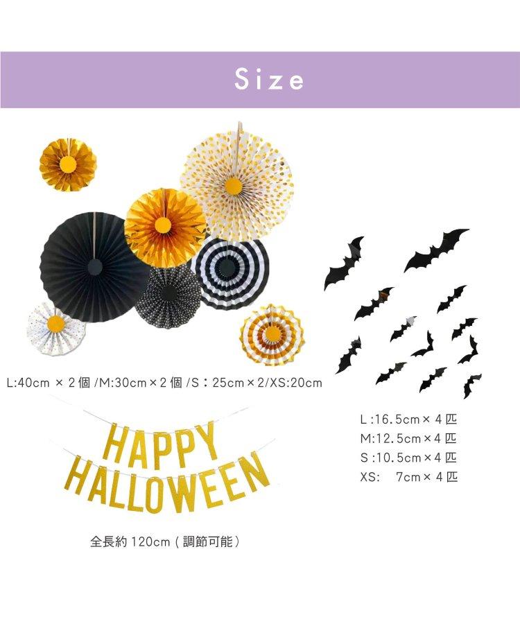 可愛的裝飾套裝,包含三件 HAPPY HALLOWEEN 花環、紙扇和蝙蝠貼紙!蝙蝠貼紙還可以通過抬高翅膀進行立體裝飾。只需一套就能舉辦派對和拍照!