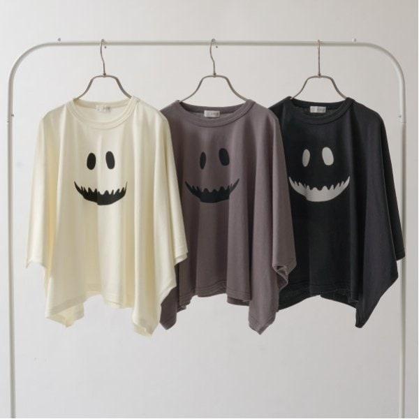 這款 T 恤印有極具衝擊力的鬼臉圖案。