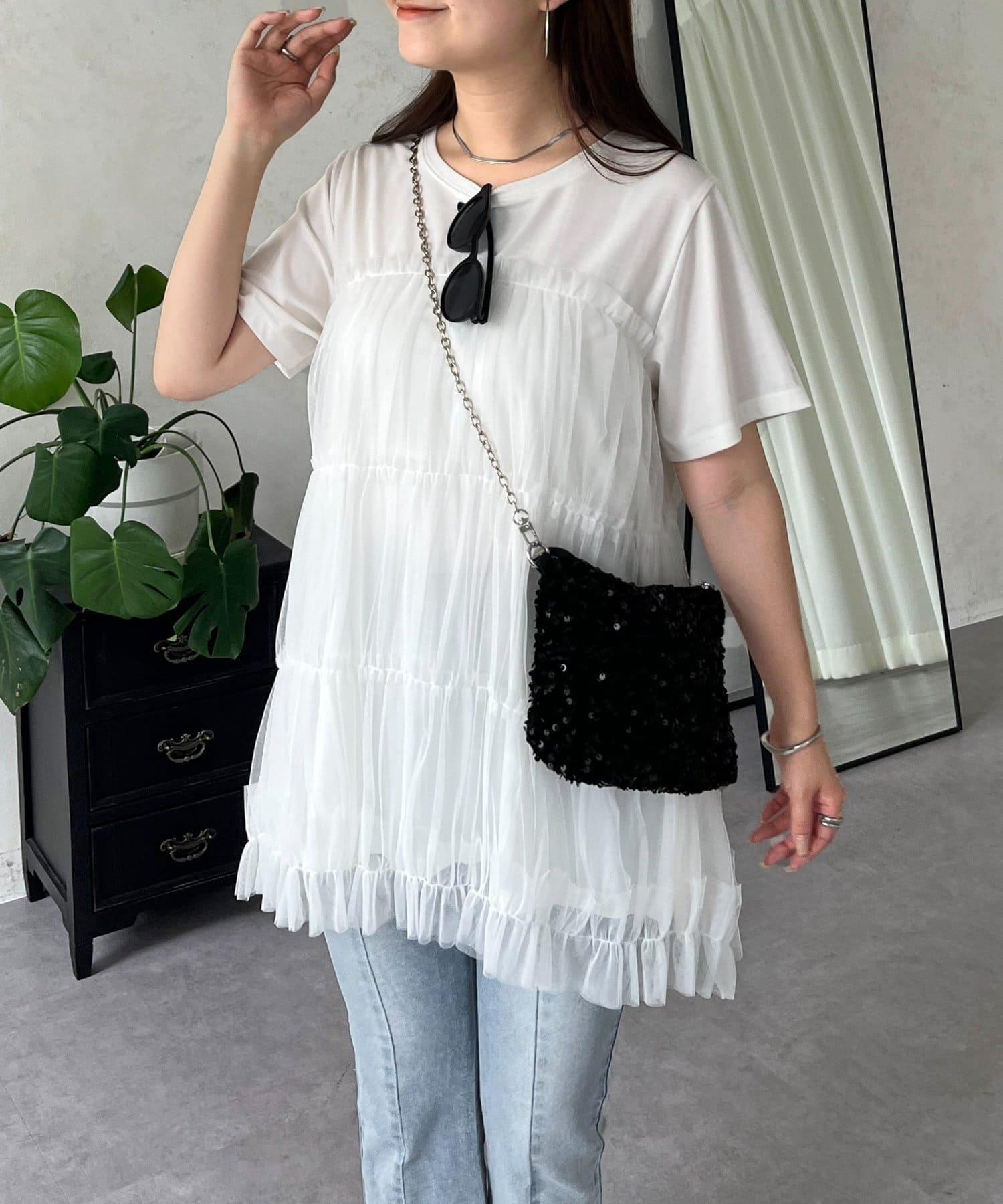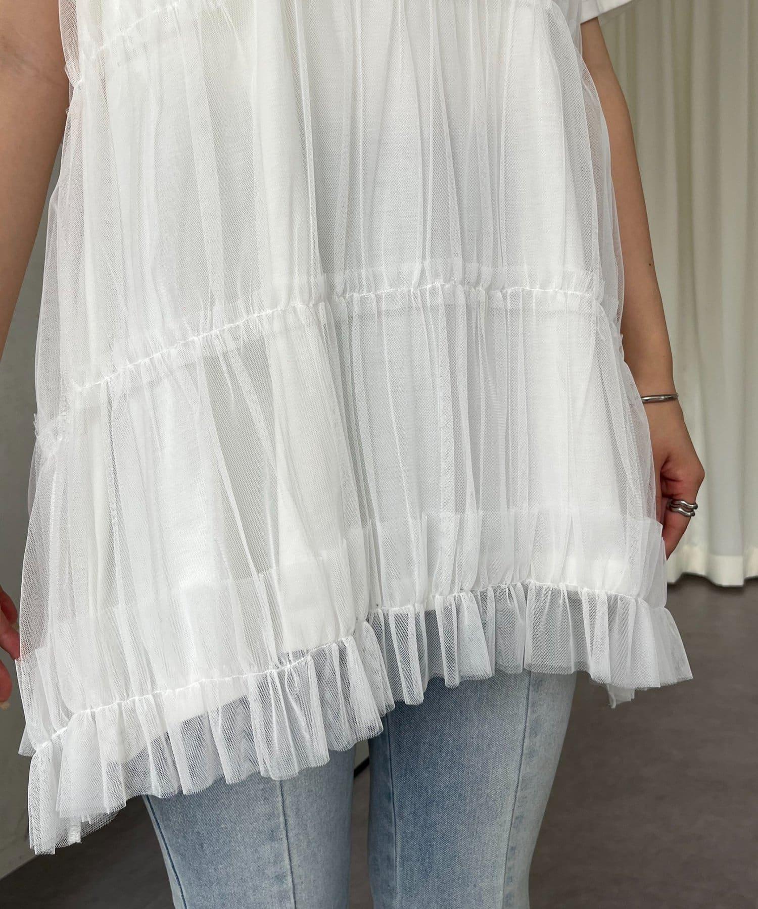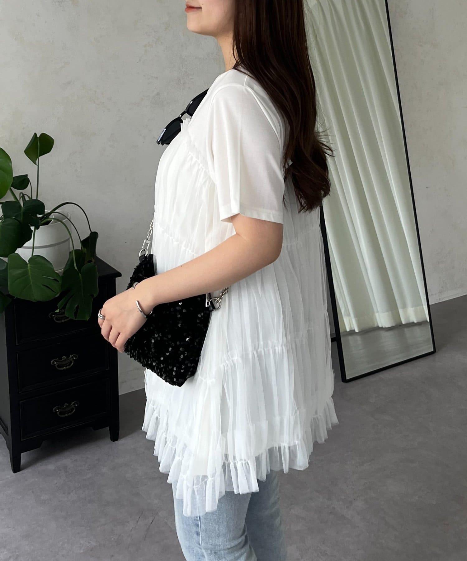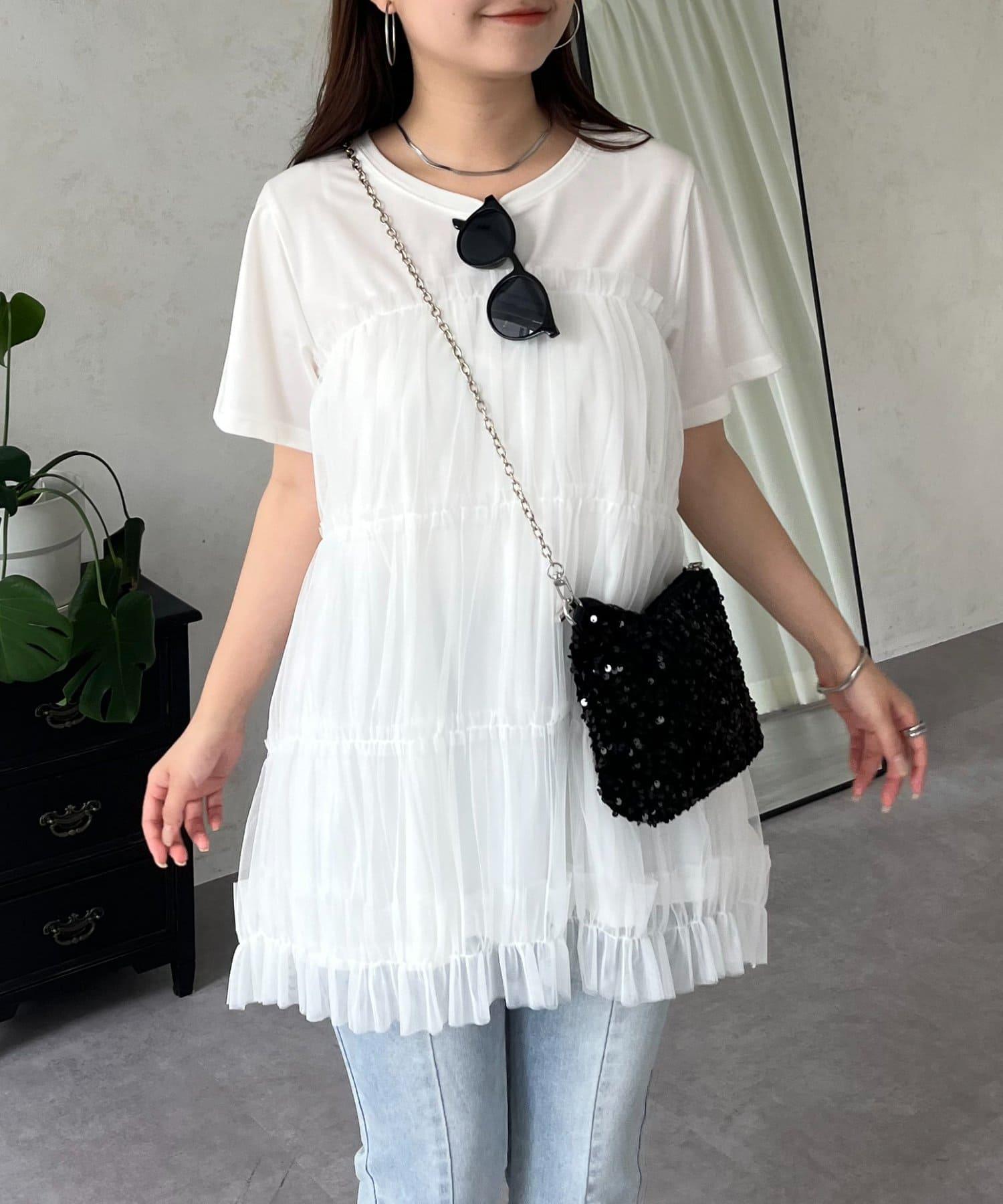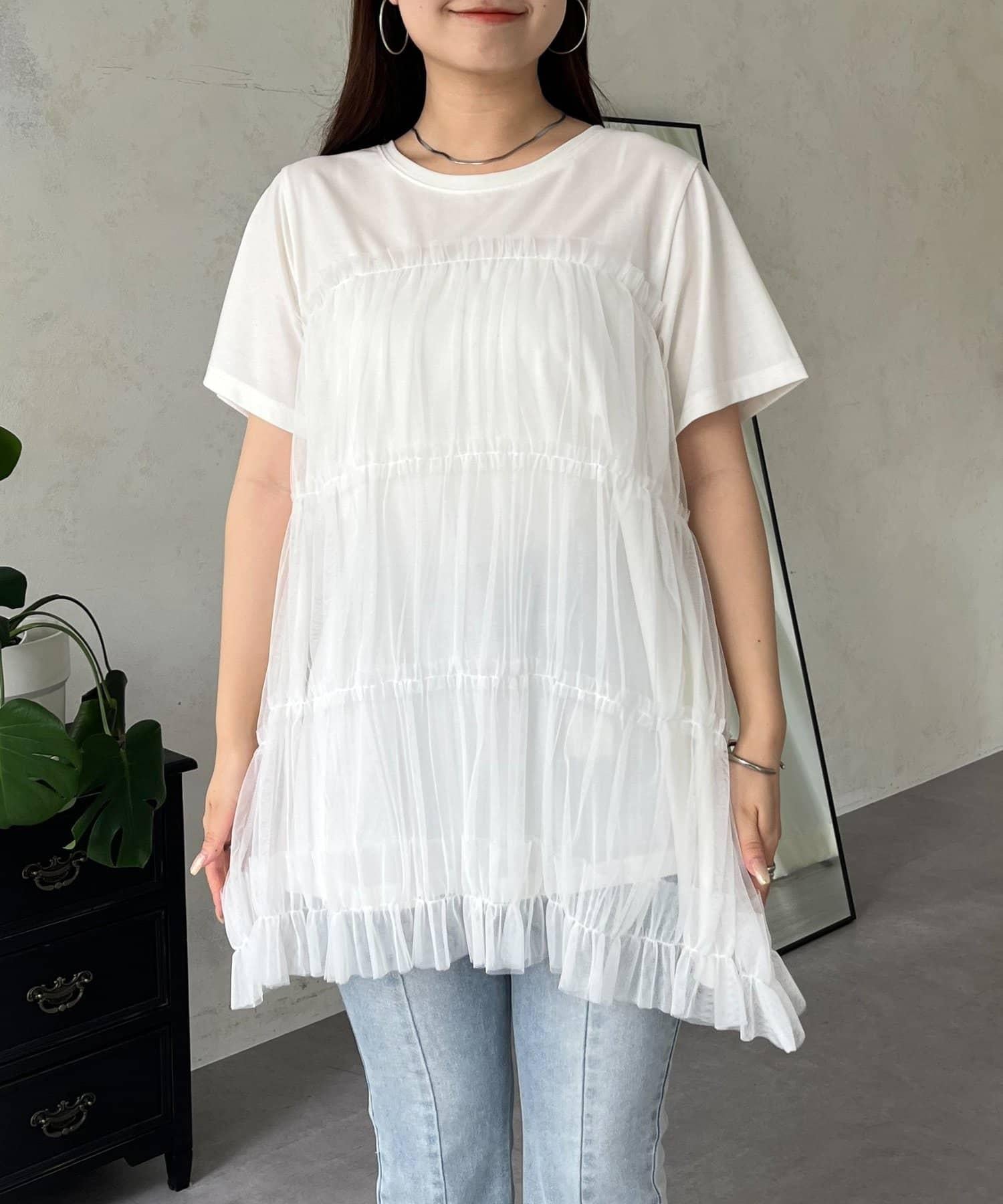 薄紗層疊設計的 T 恤,盡顯迷人風采。