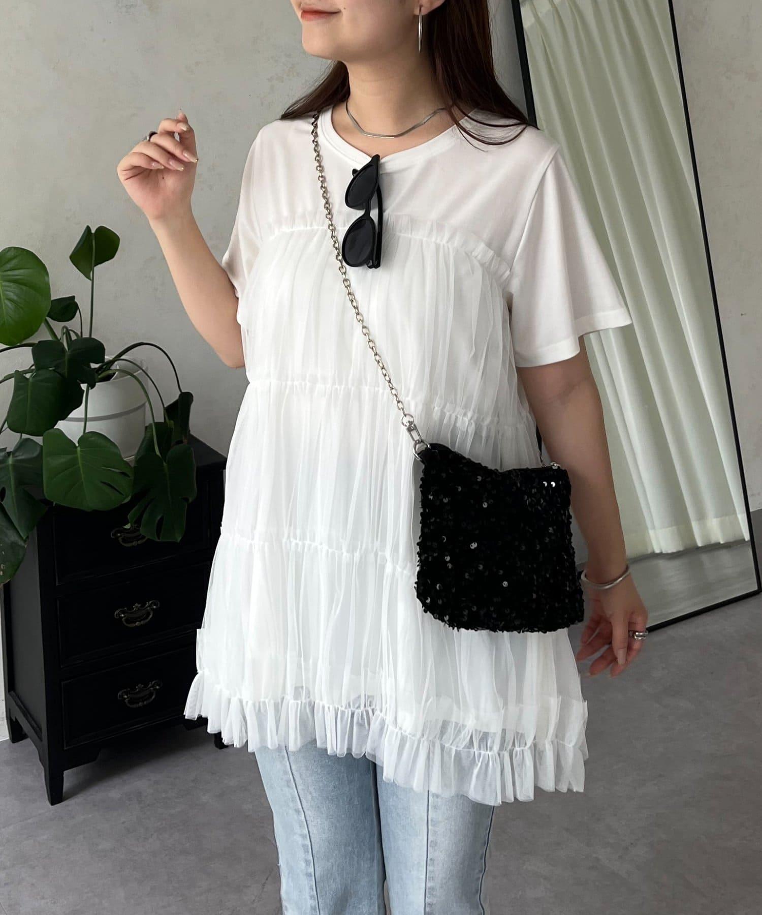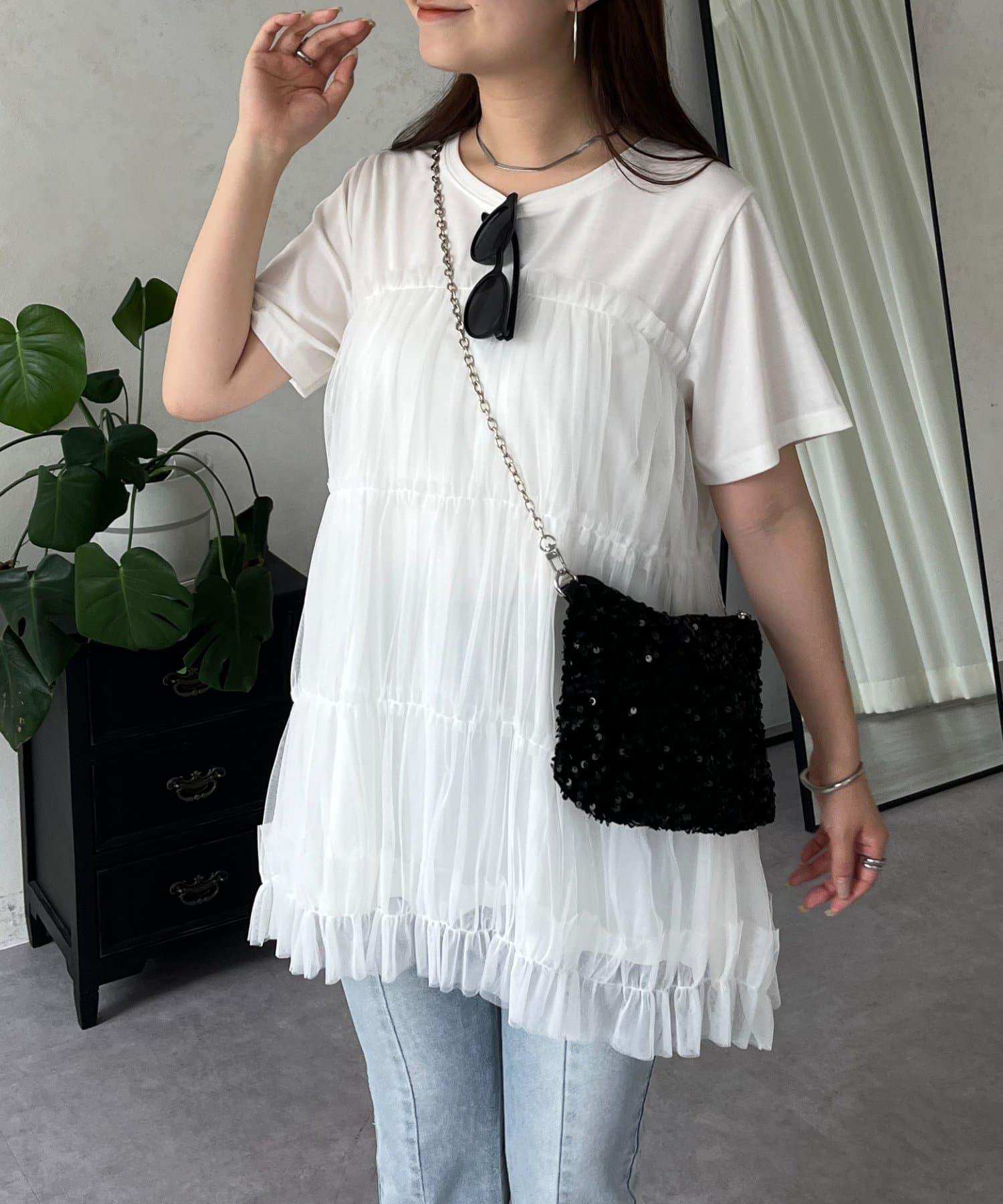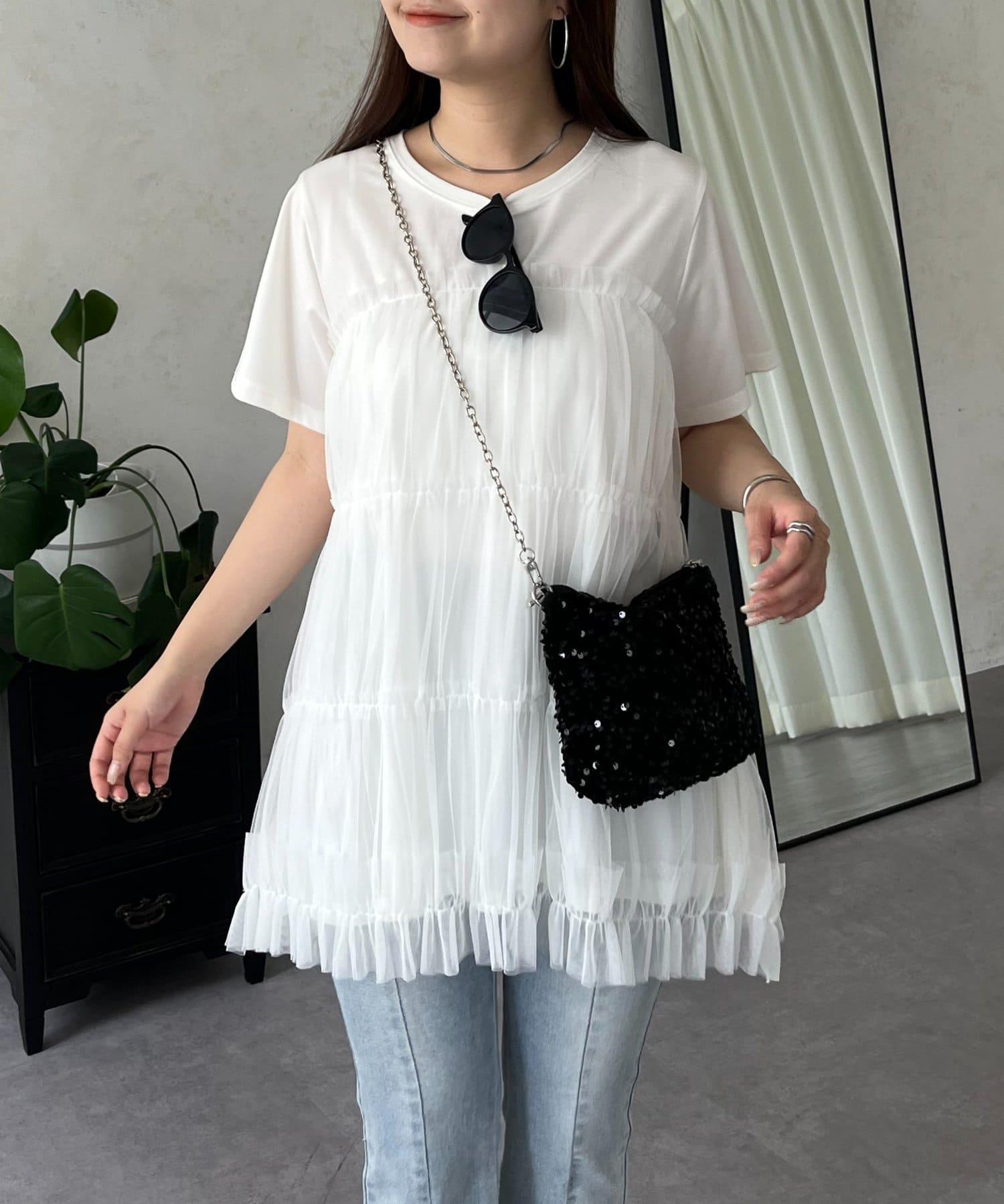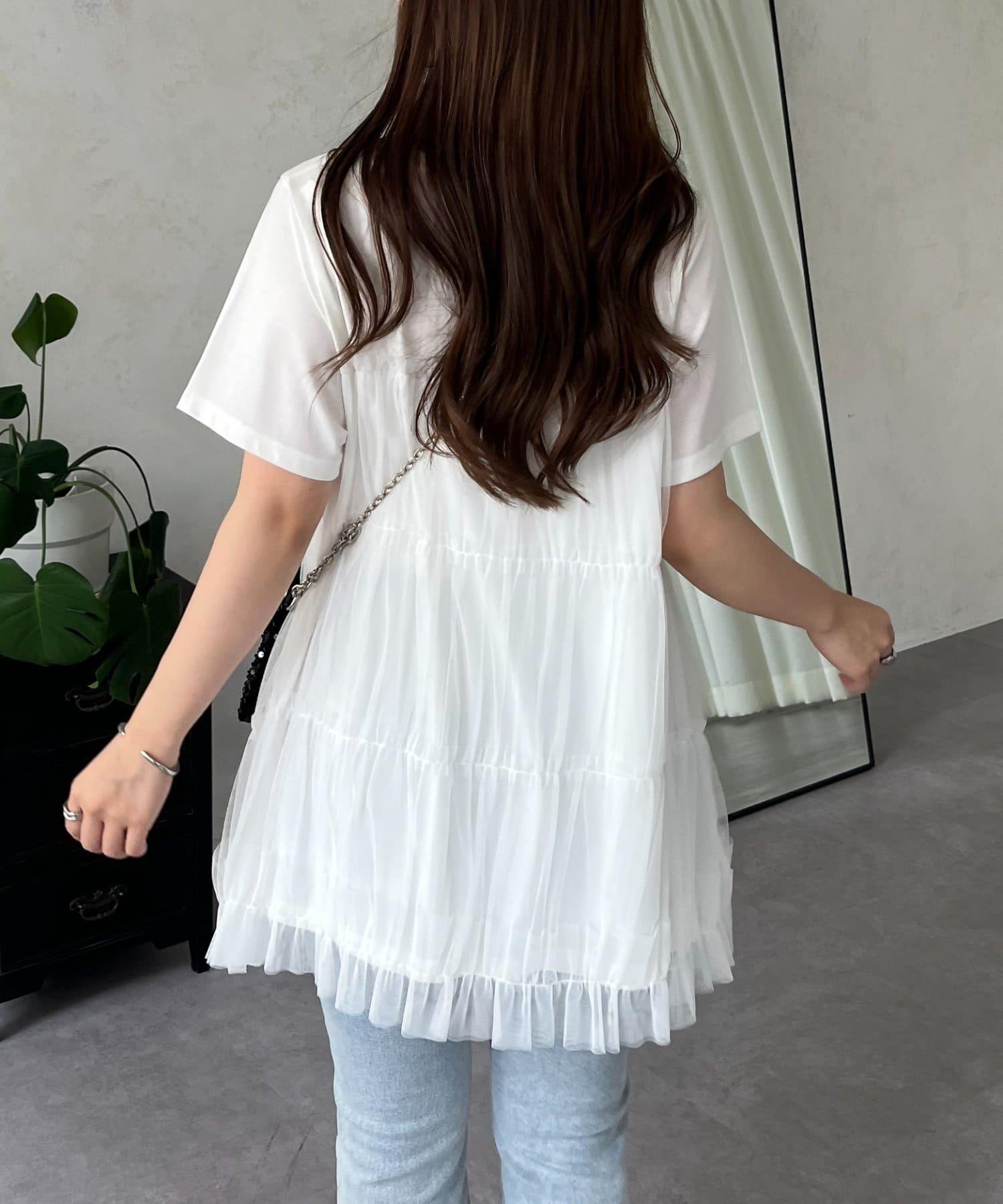 薄紗層疊設計的 T 恤,盡顯迷人風采。