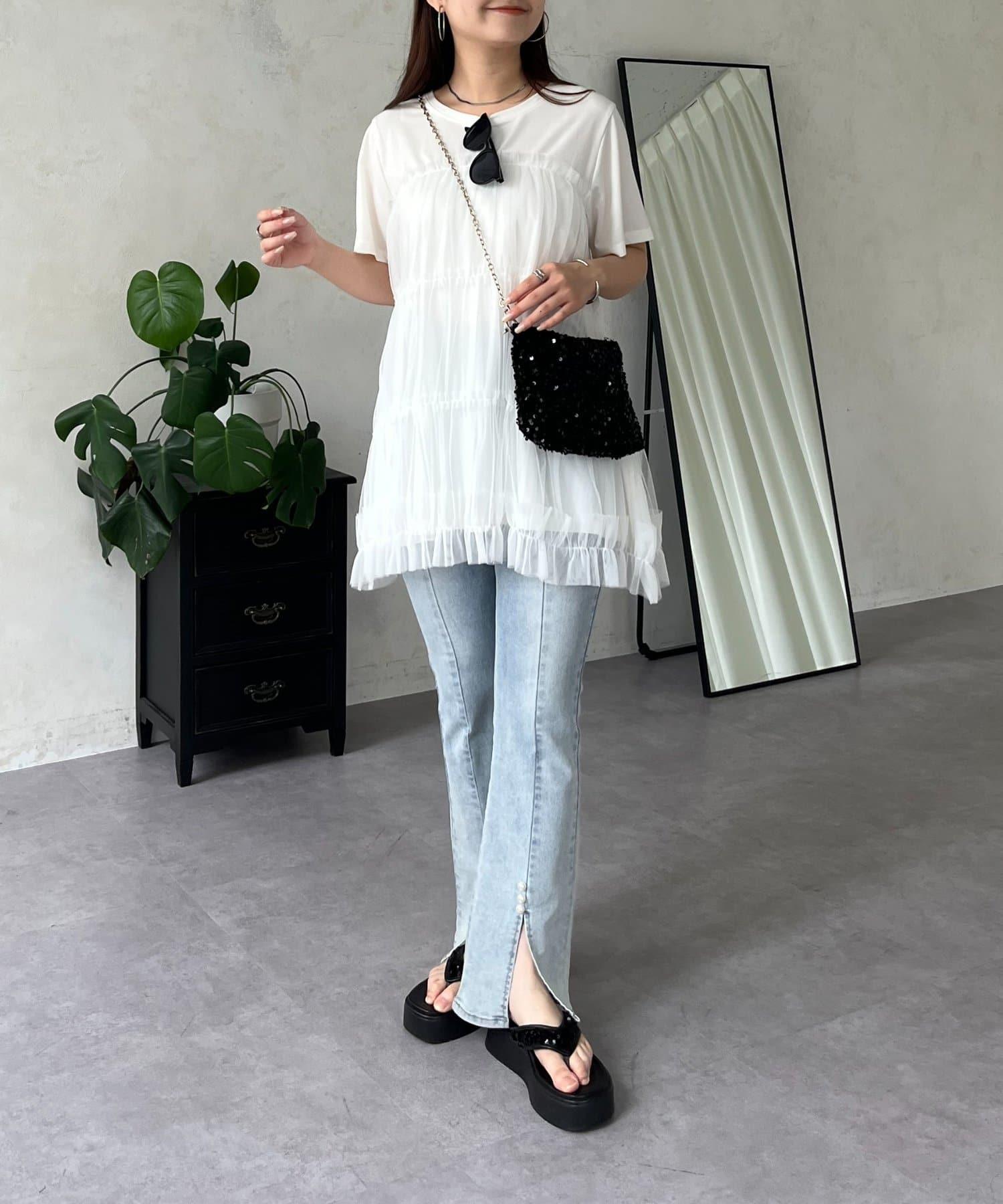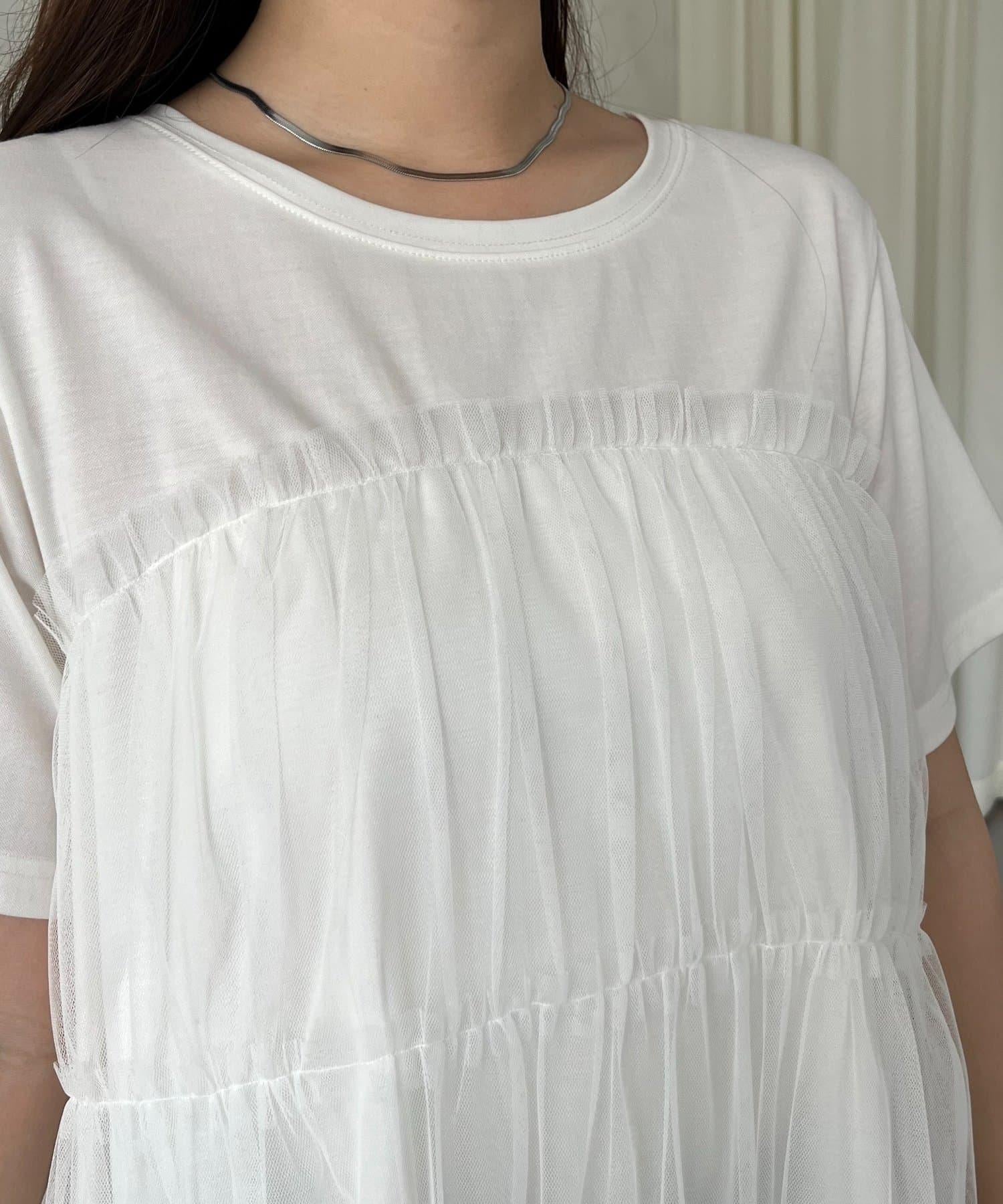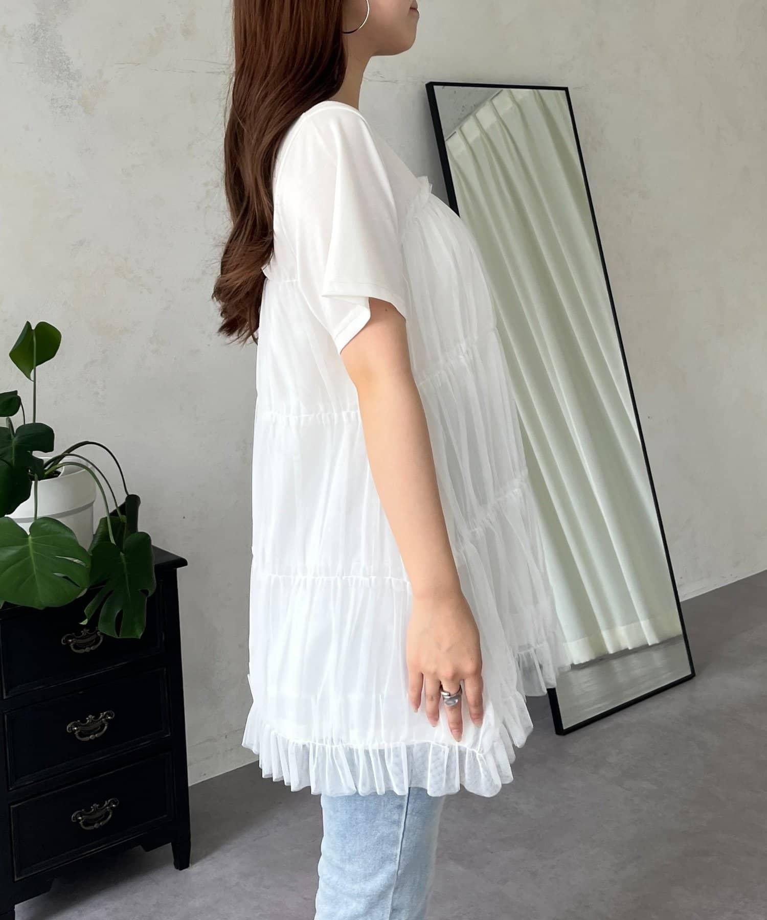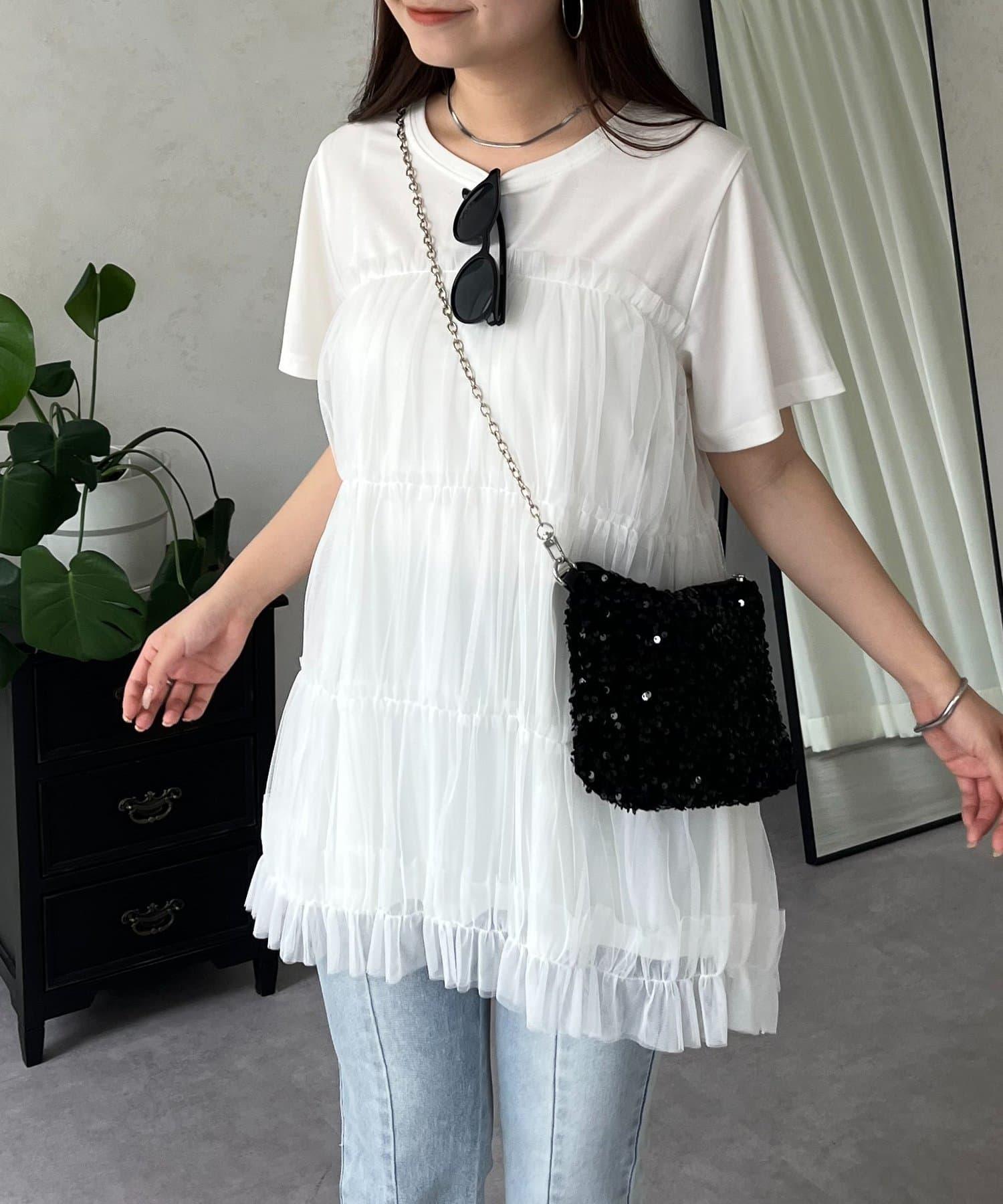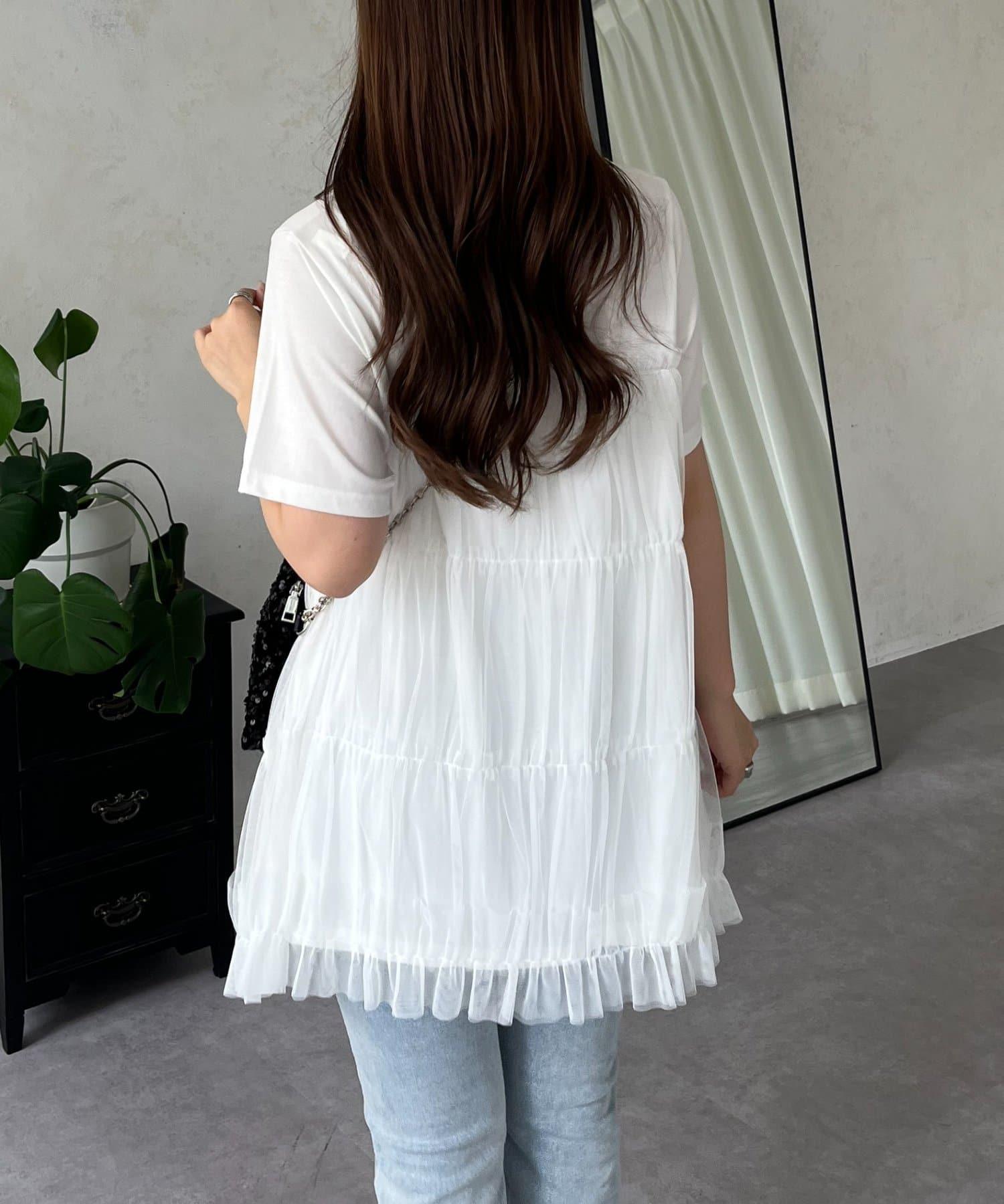 薄紗層疊設計的 T 恤,盡顯迷人風采。