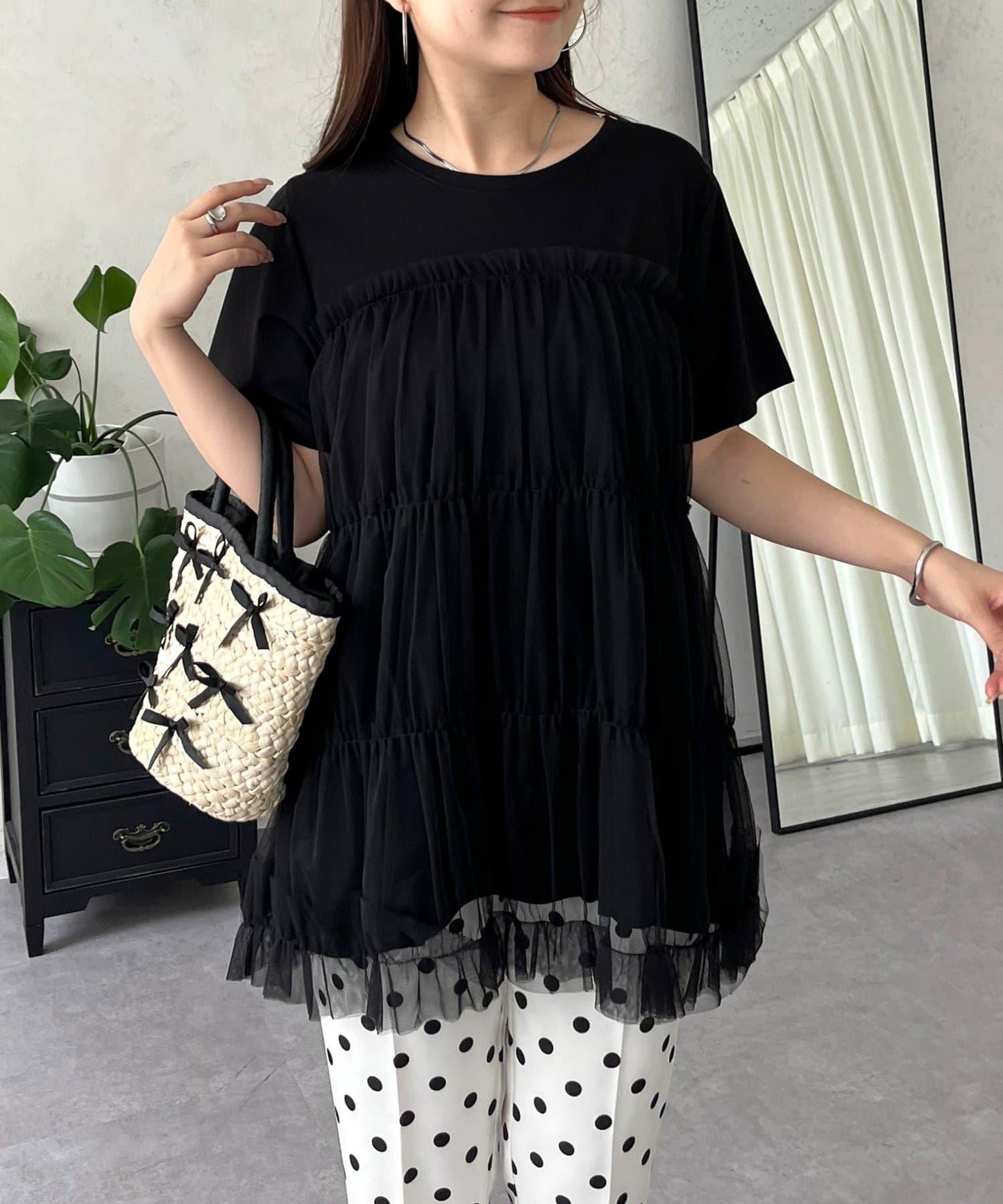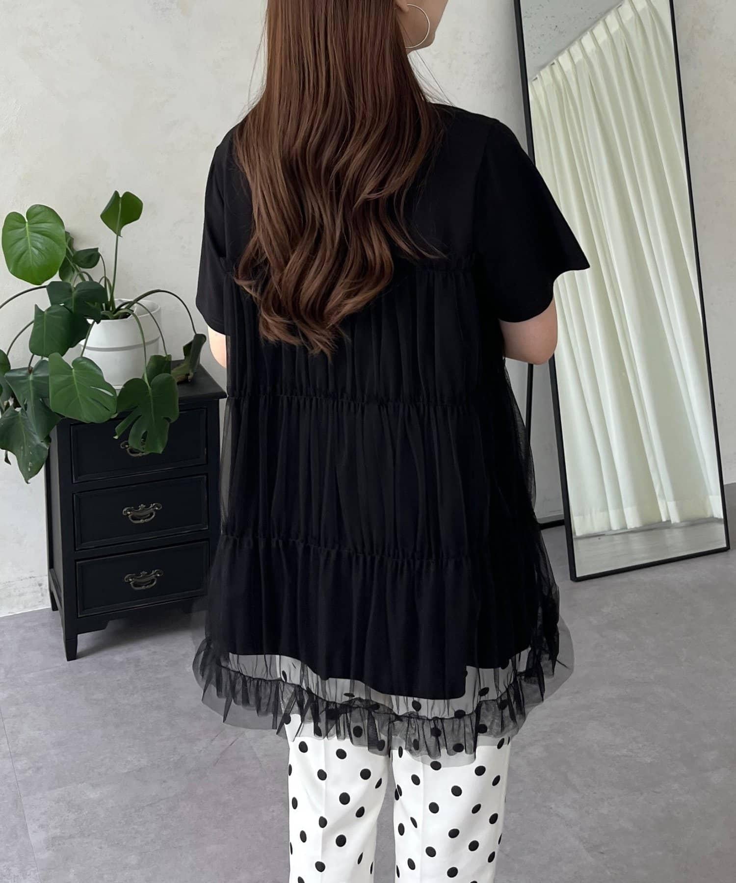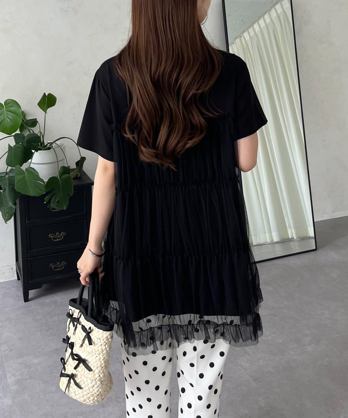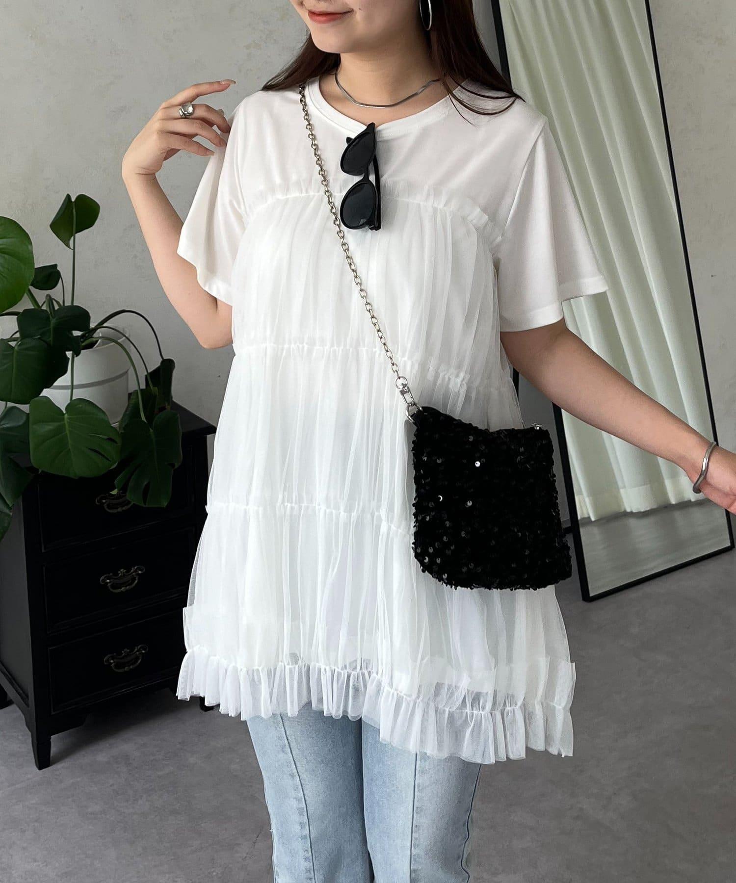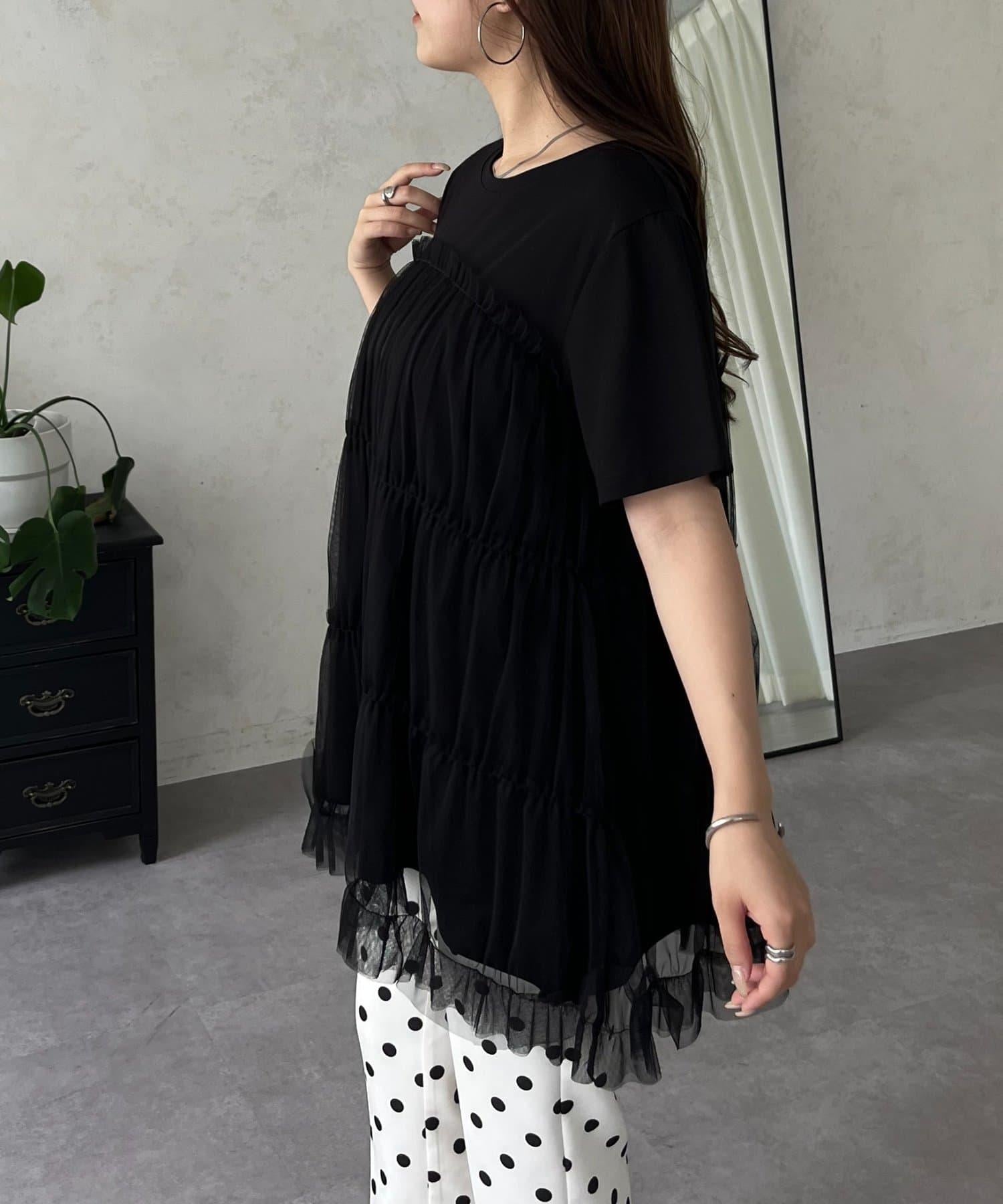 薄紗層疊設計的 T 恤,盡顯迷人風采。