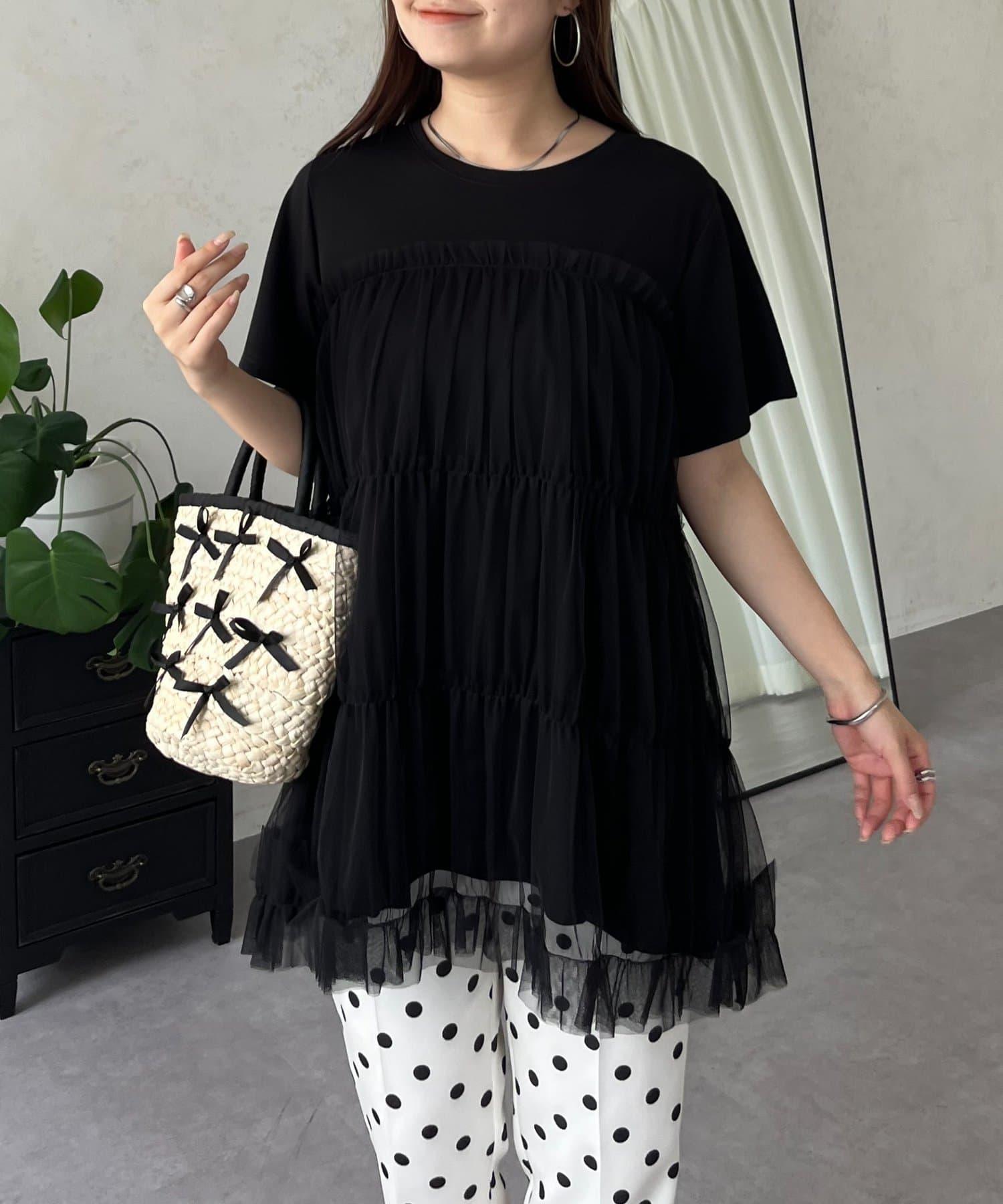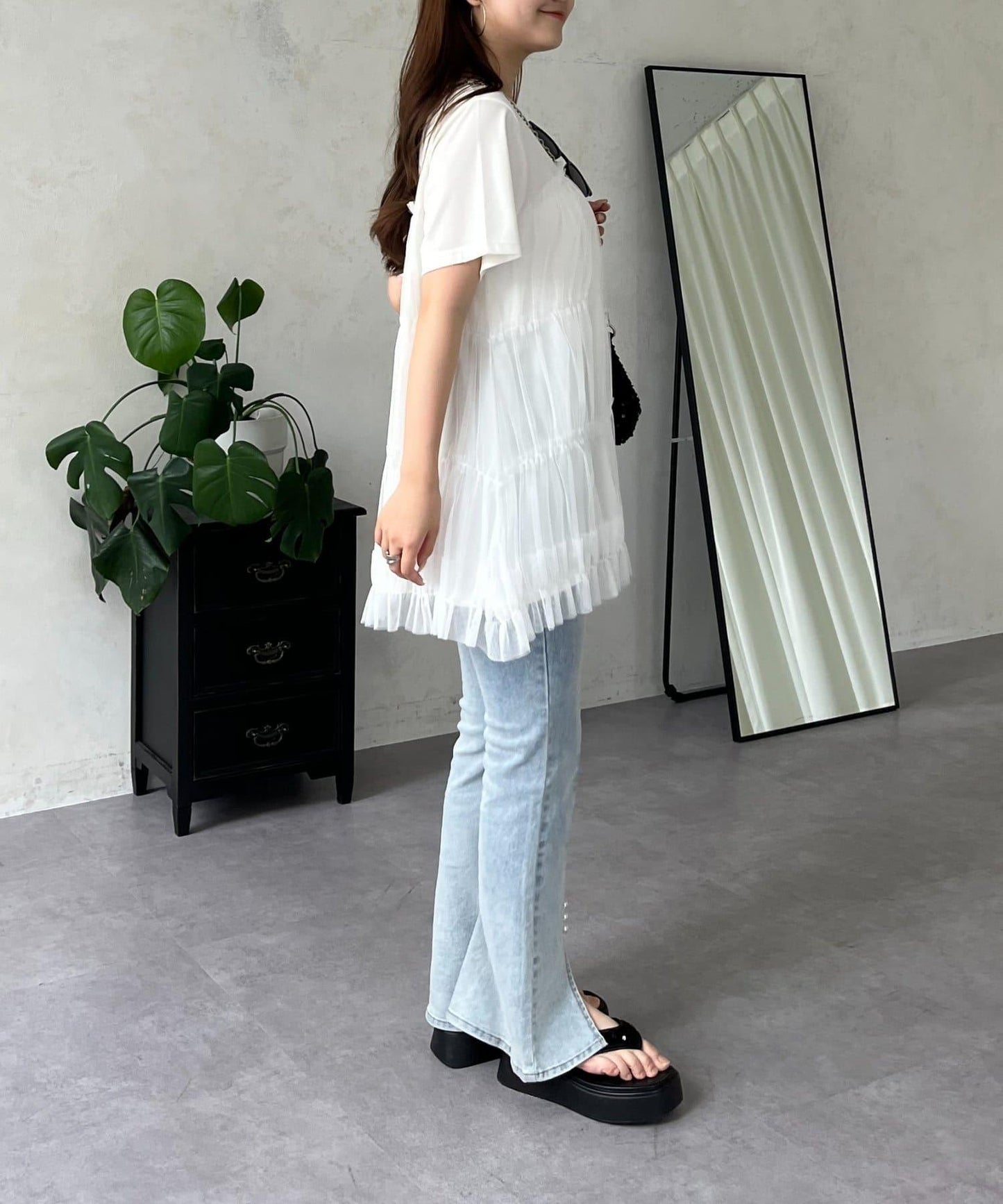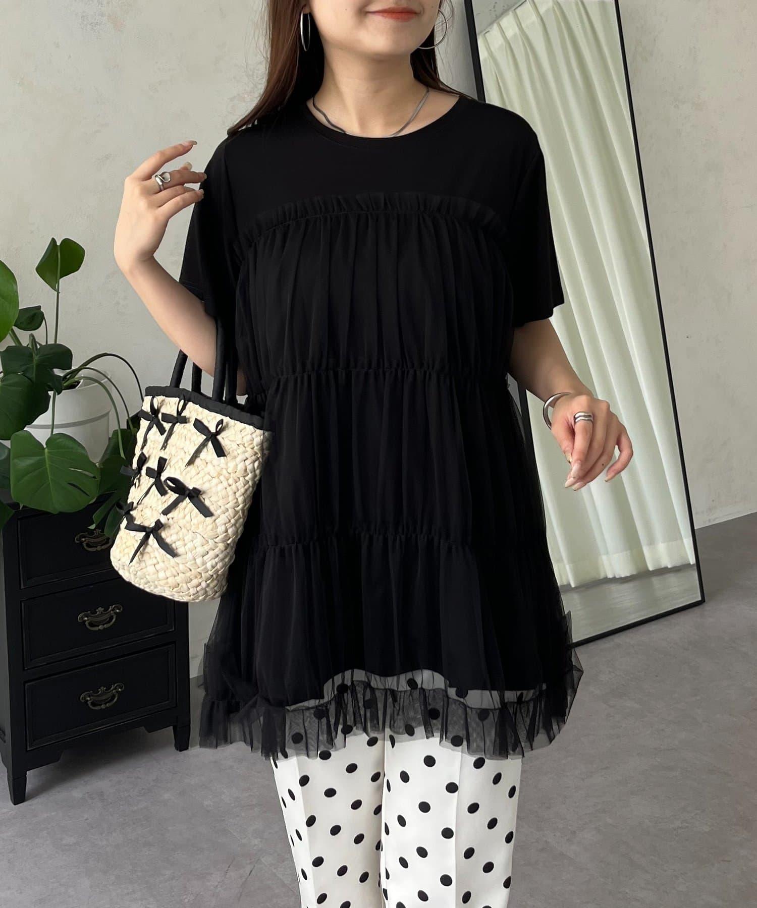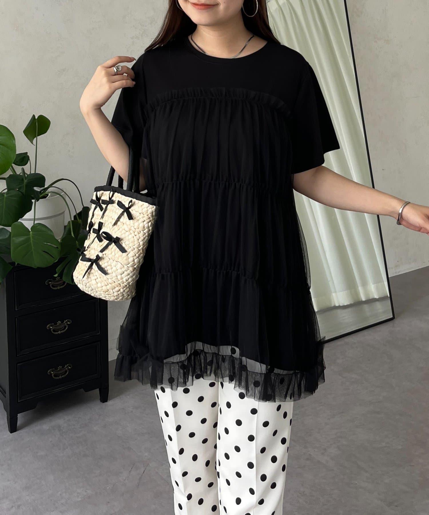 薄紗層疊設計的 T 恤,盡顯迷人風采。