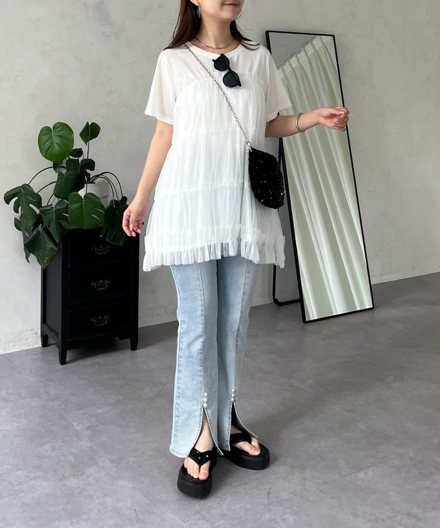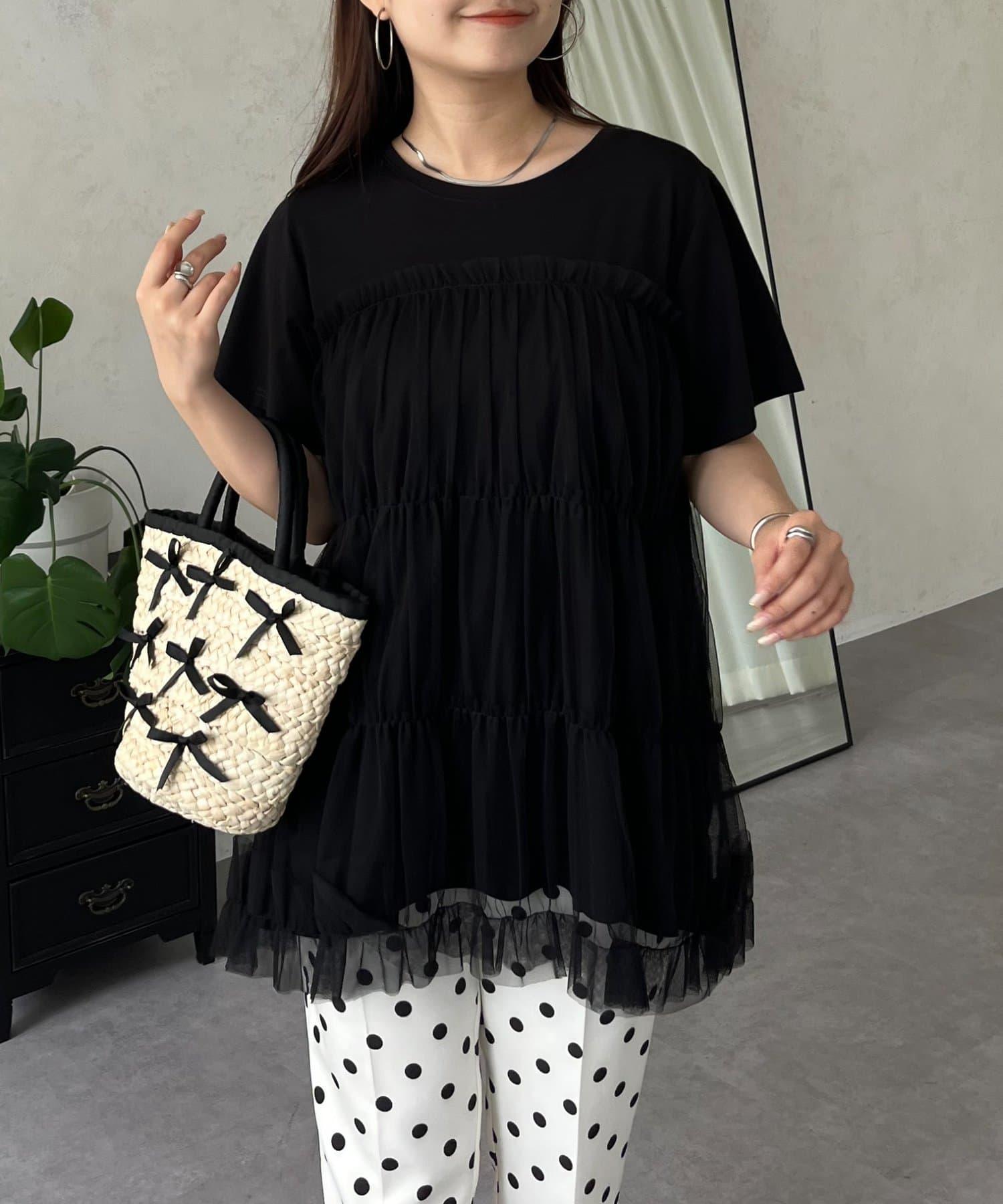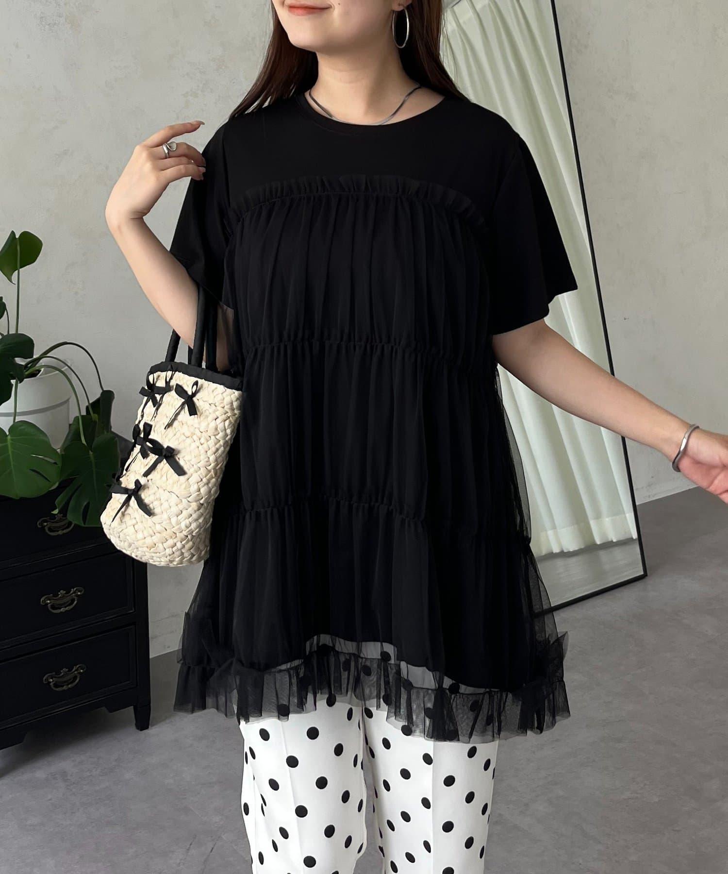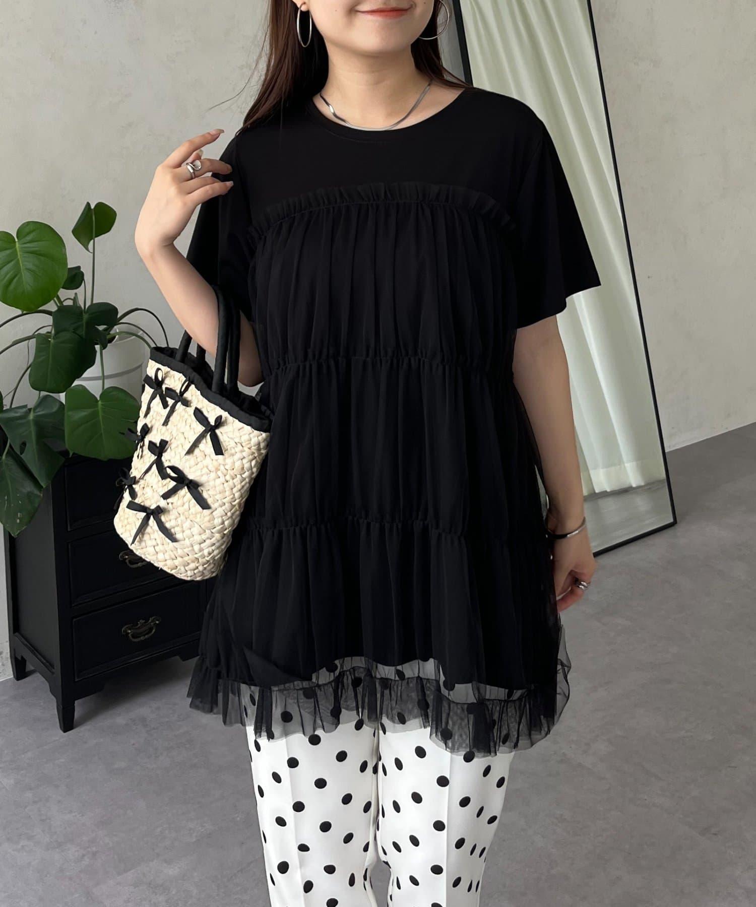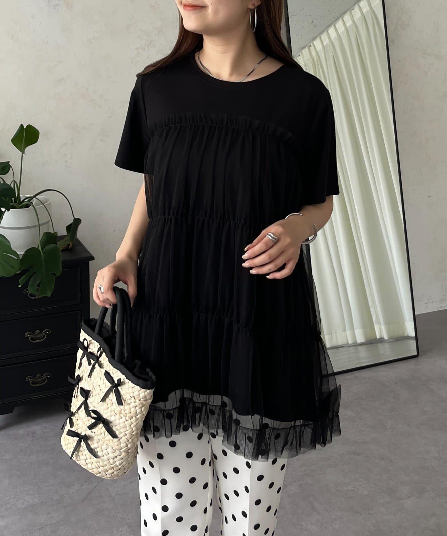 薄紗層疊設計的 T 恤,盡顯迷人風采。