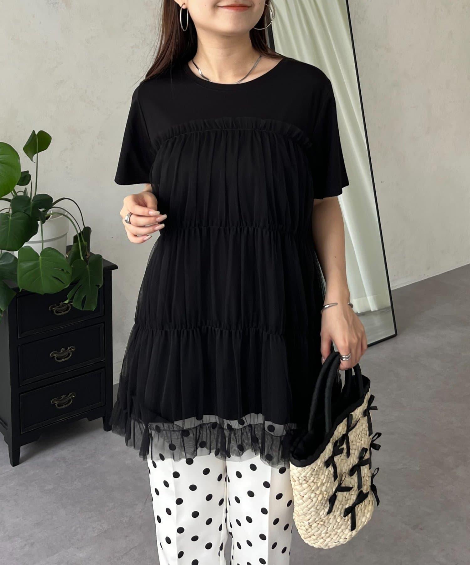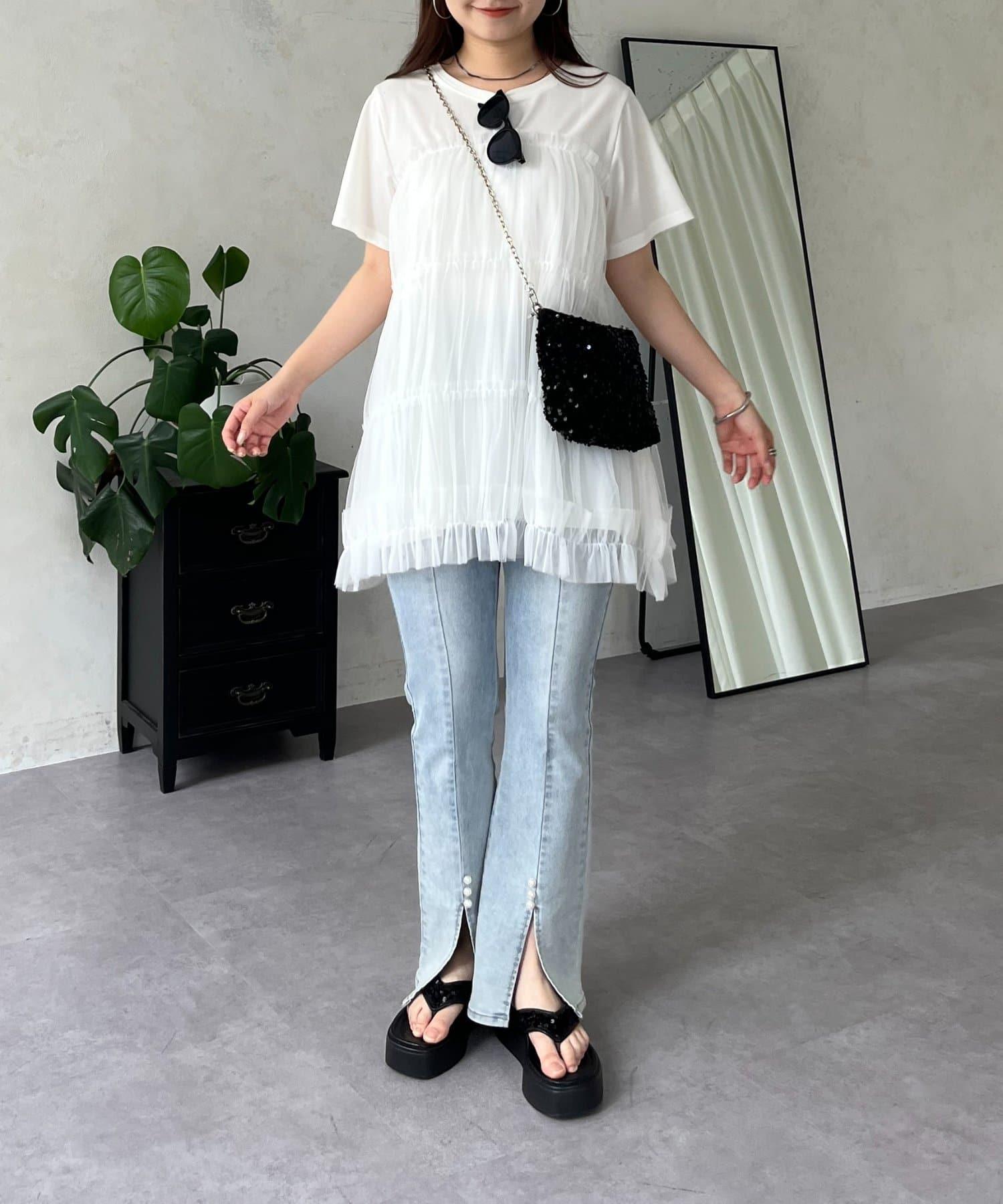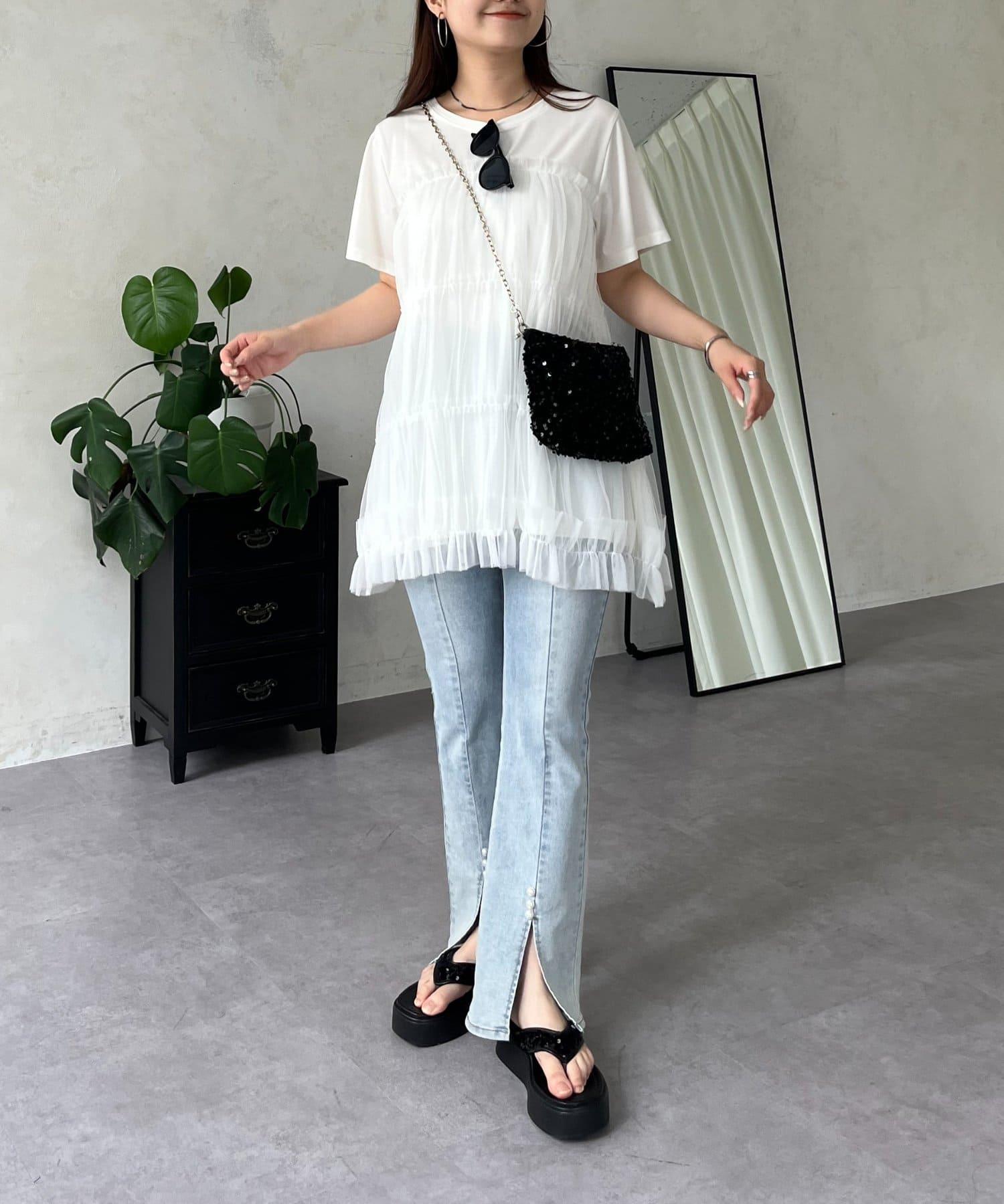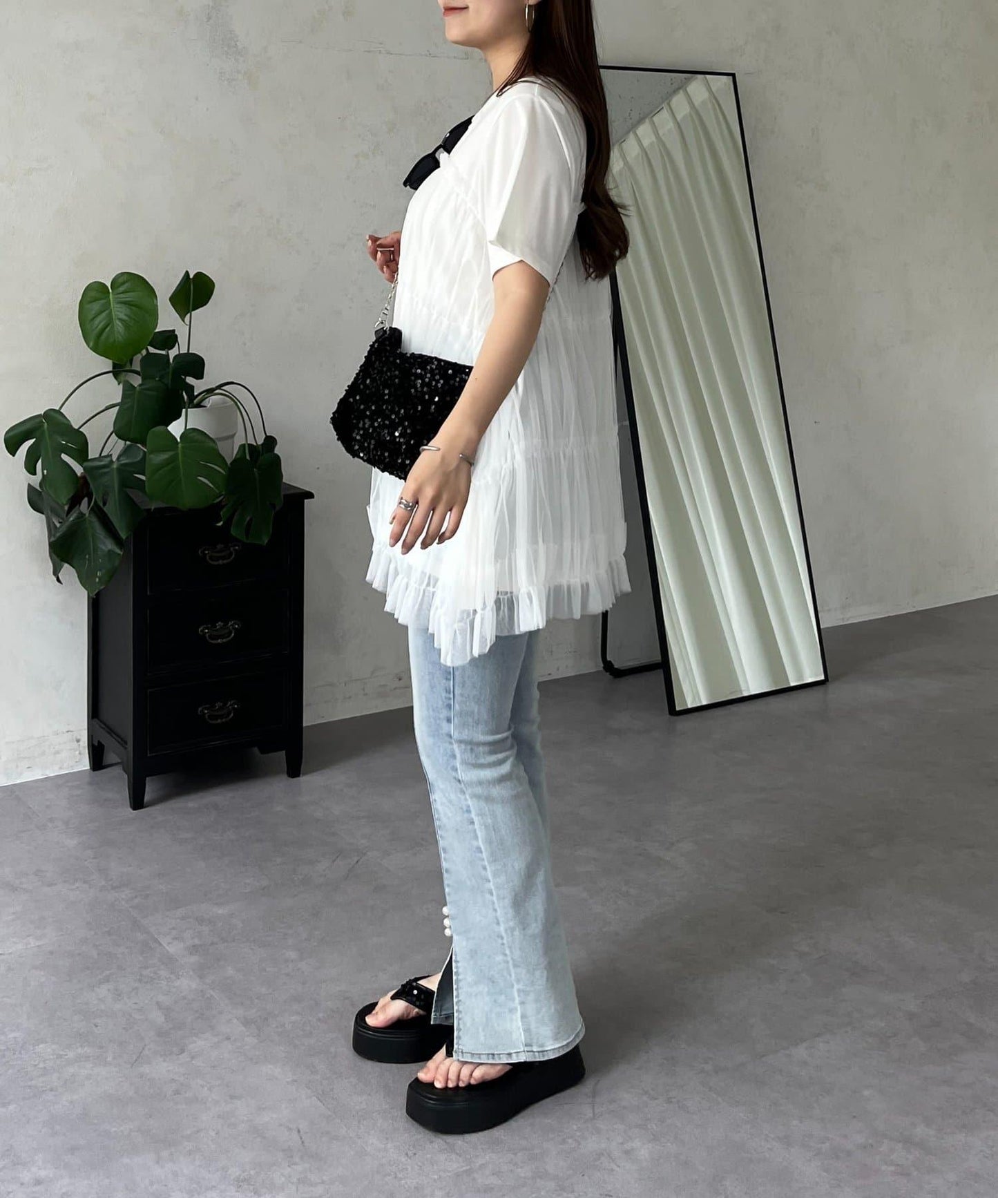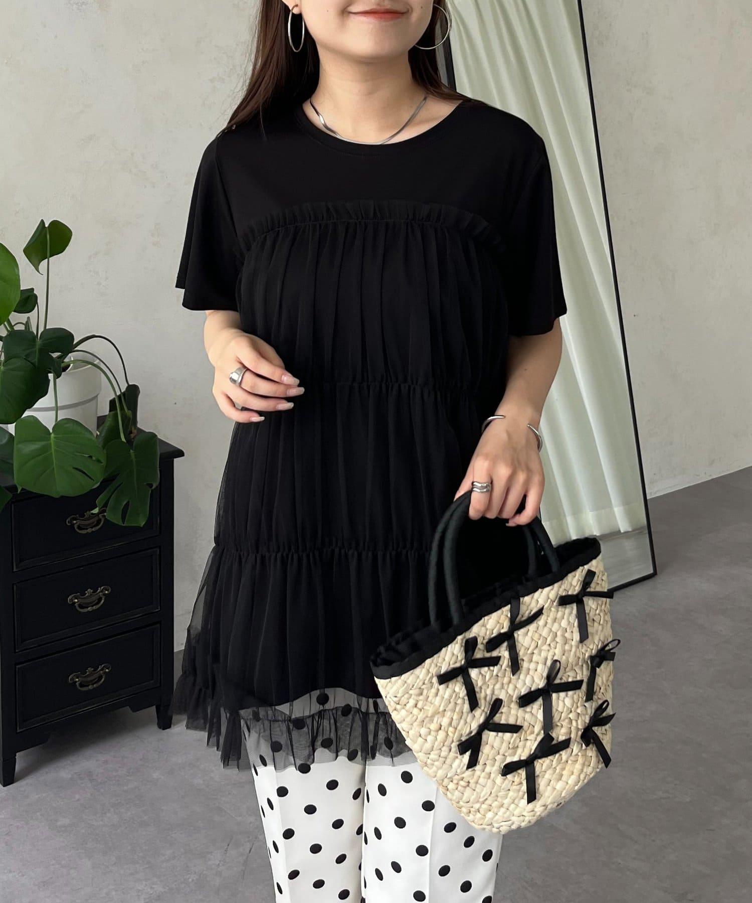 薄紗層疊設計的 T 恤,盡顯迷人風采。