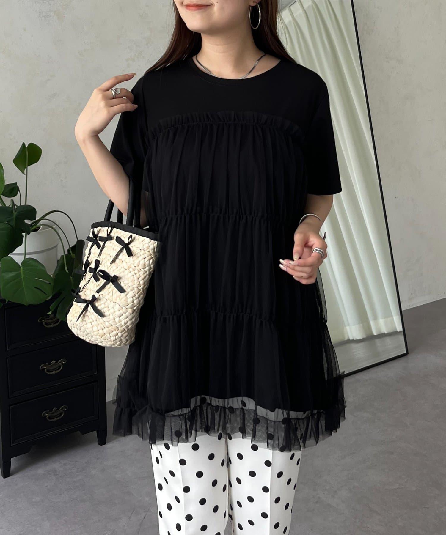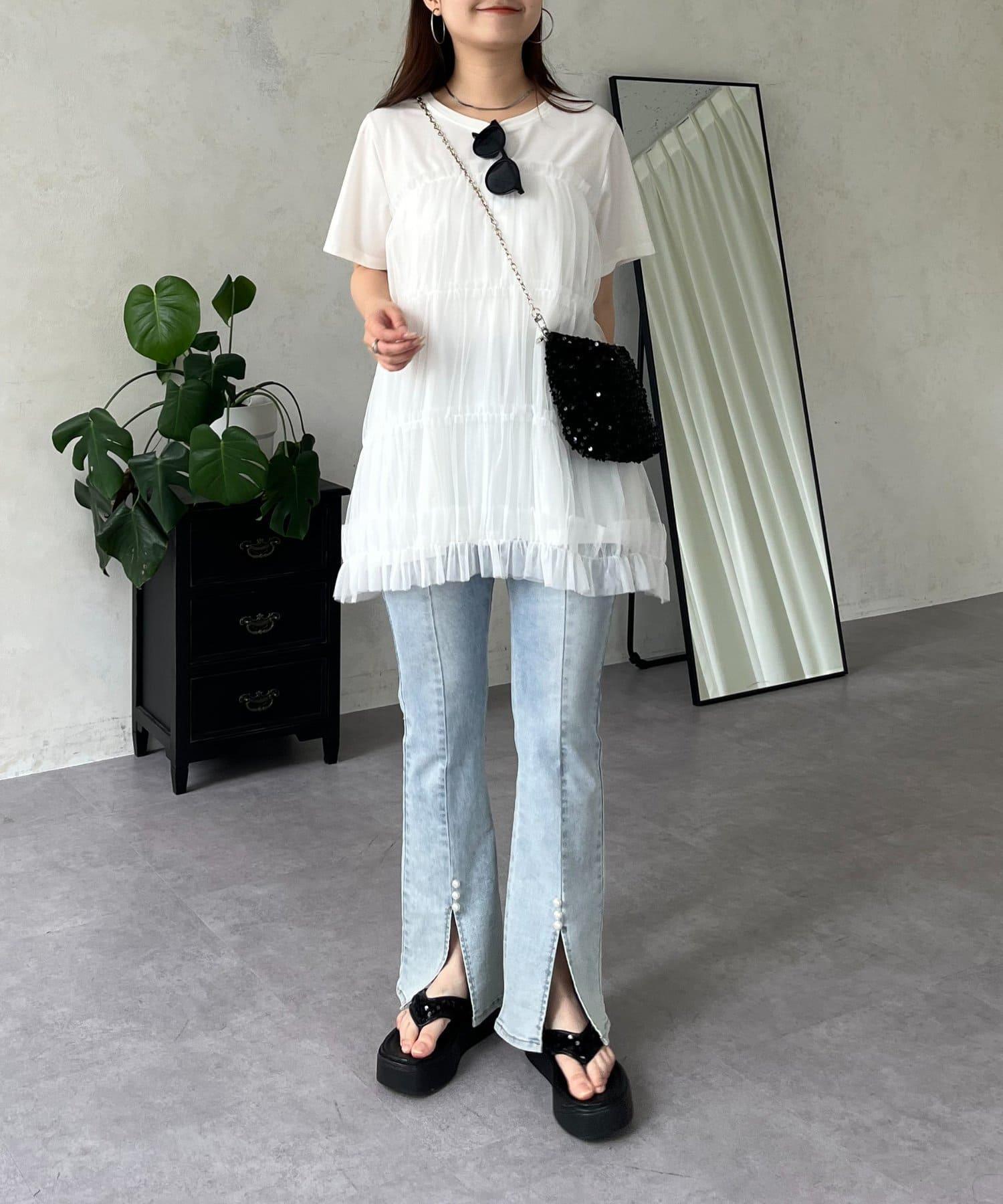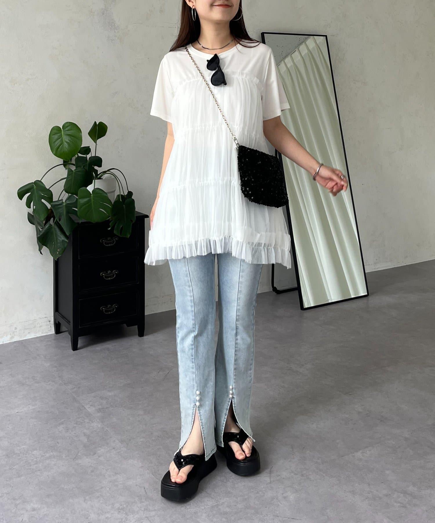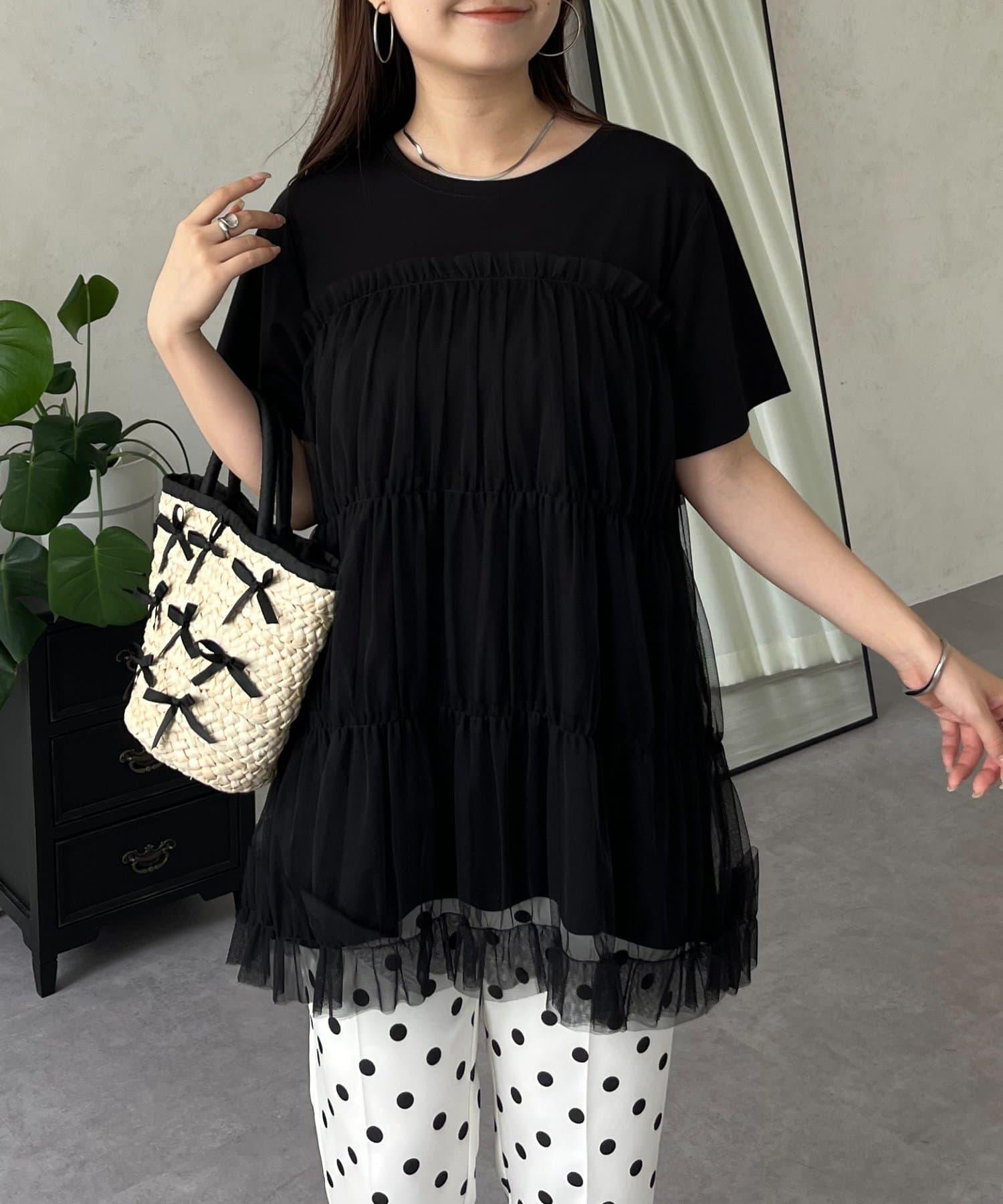 薄紗層疊設計的 T 恤,盡顯迷人風采。