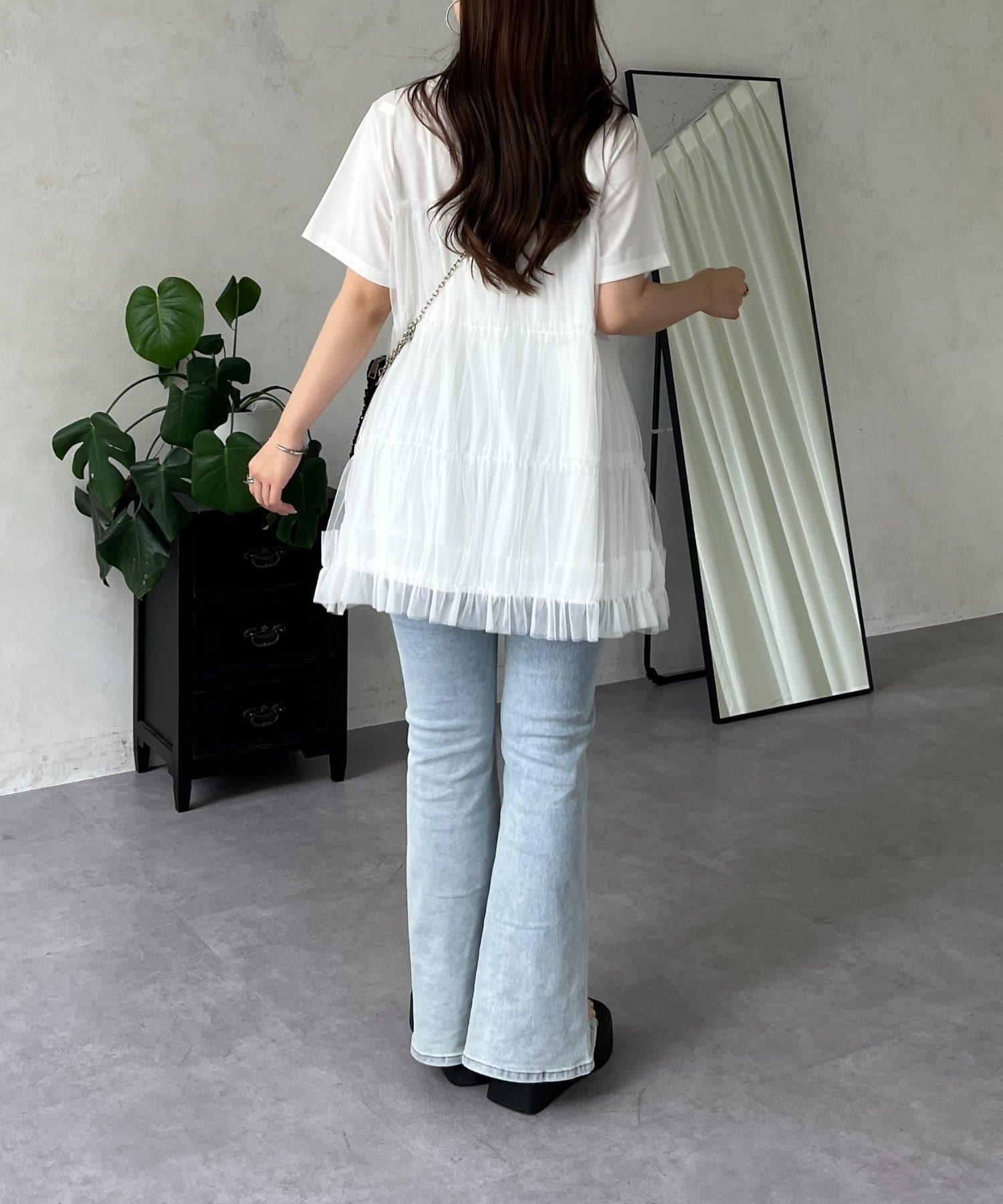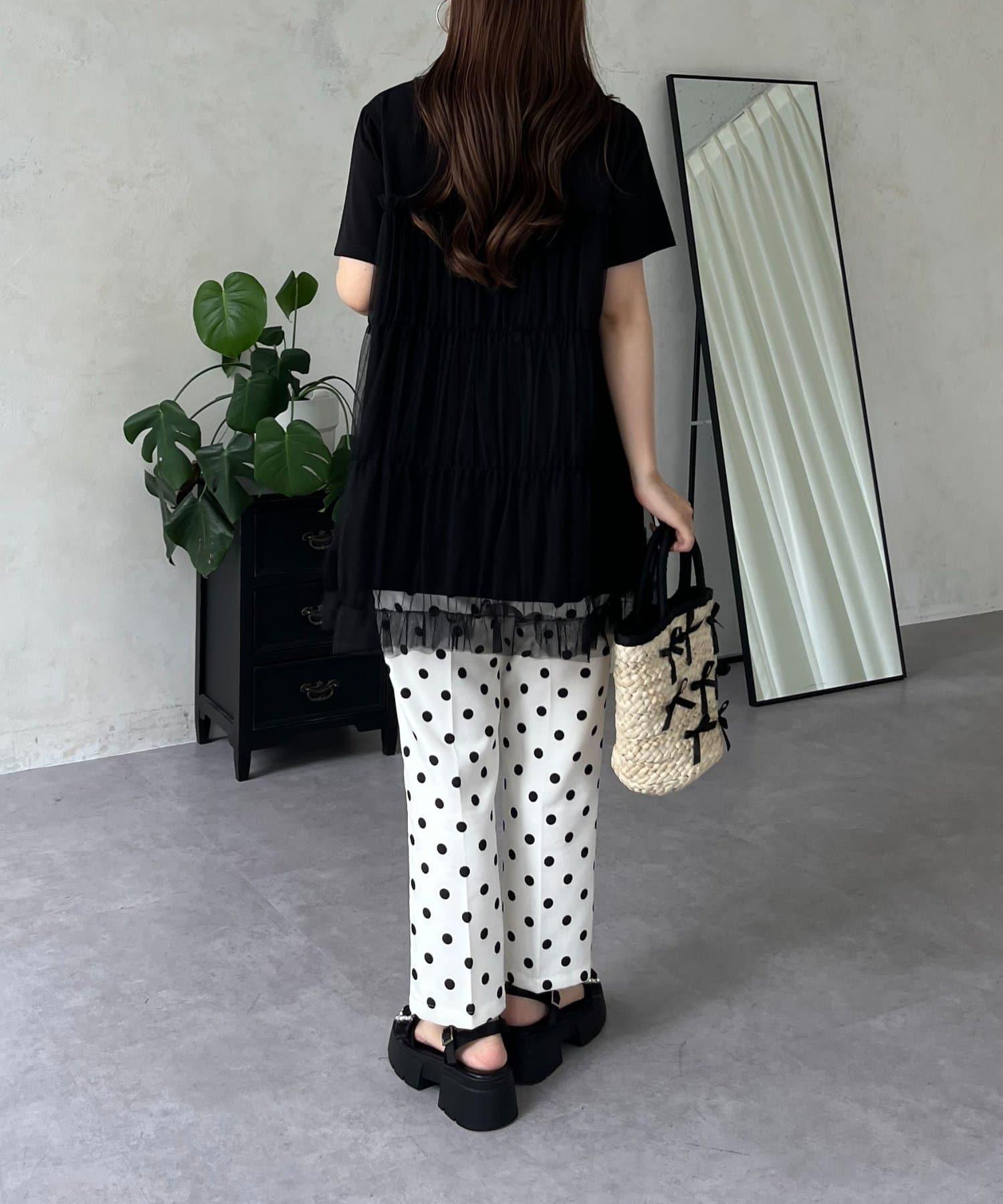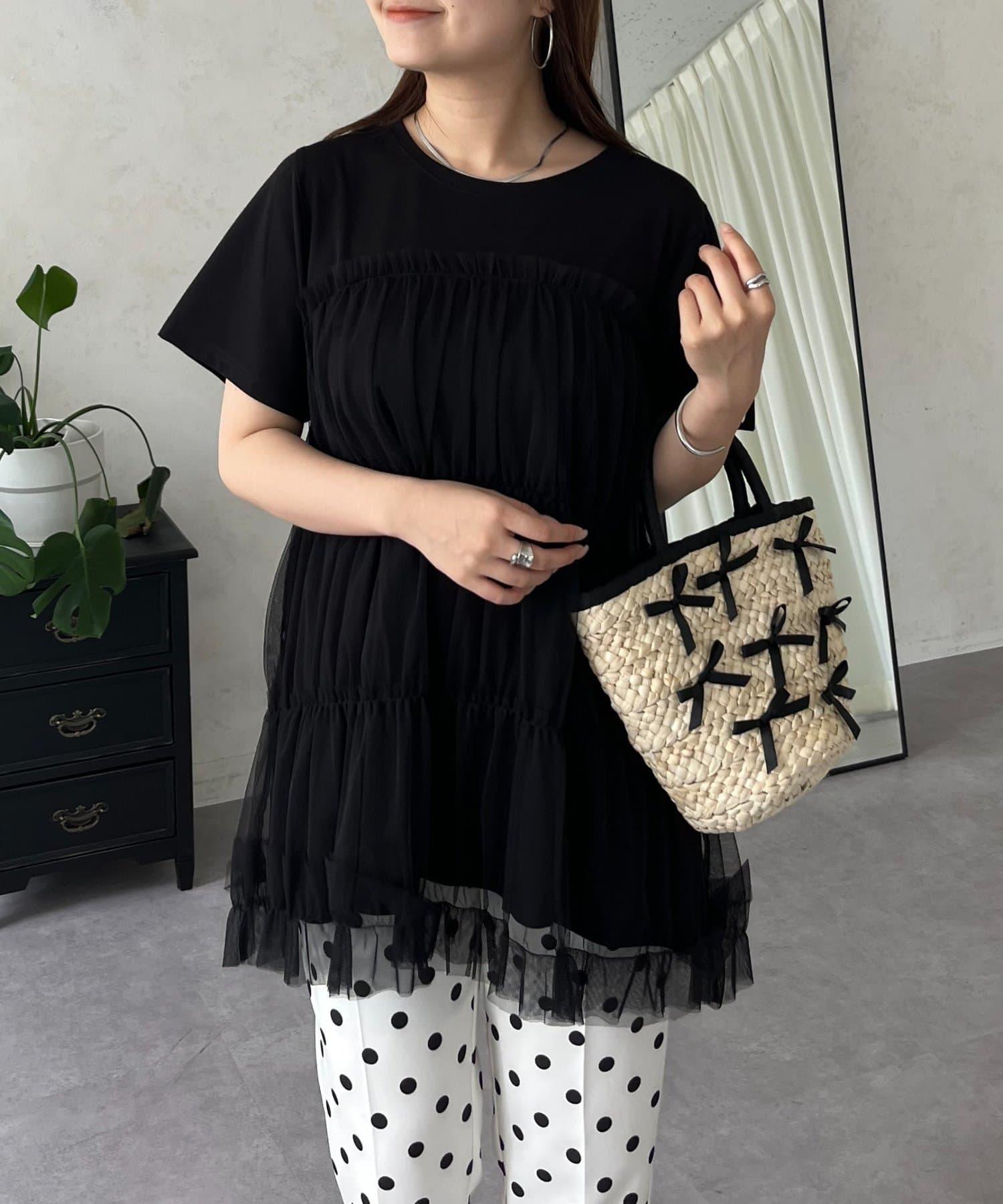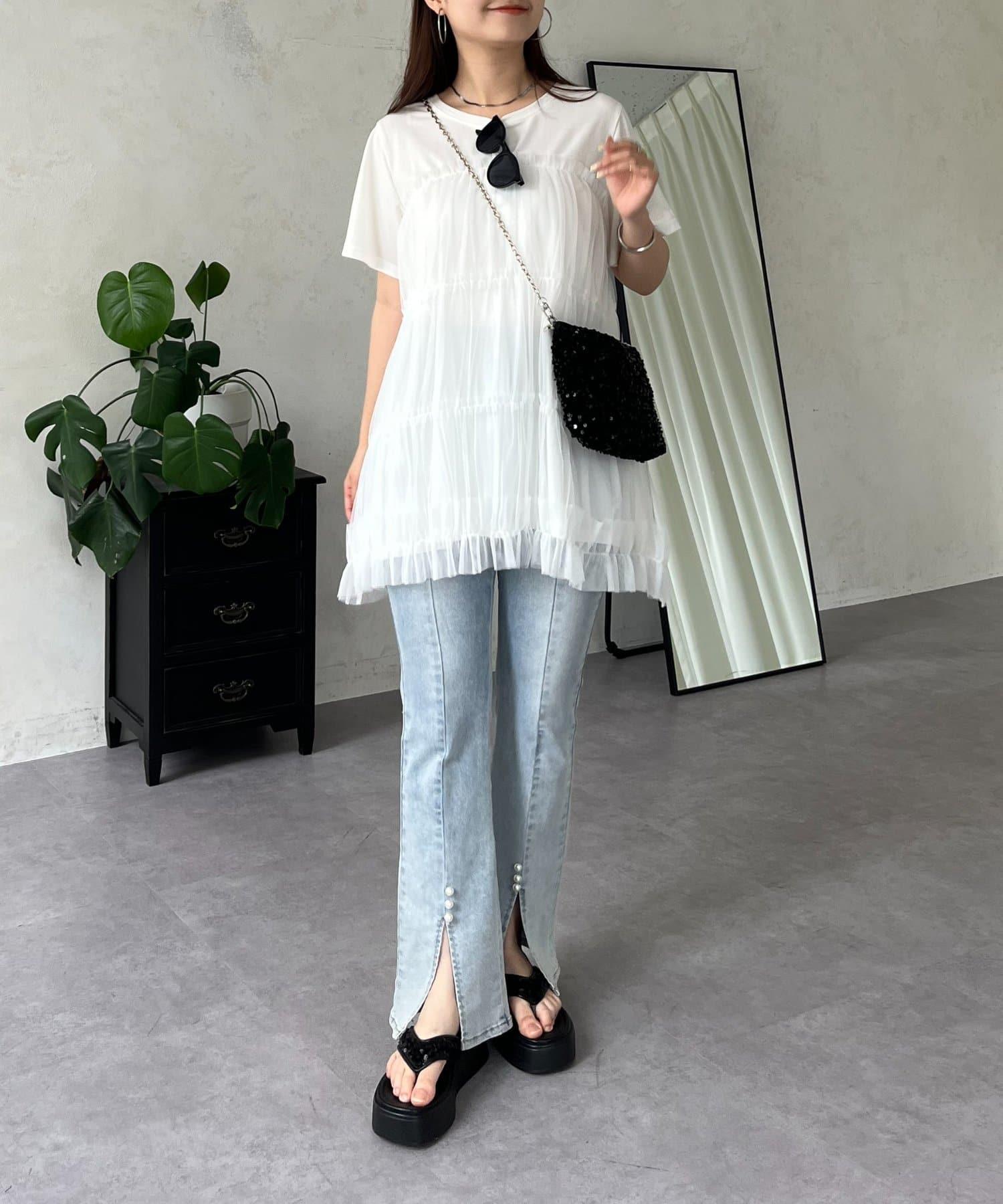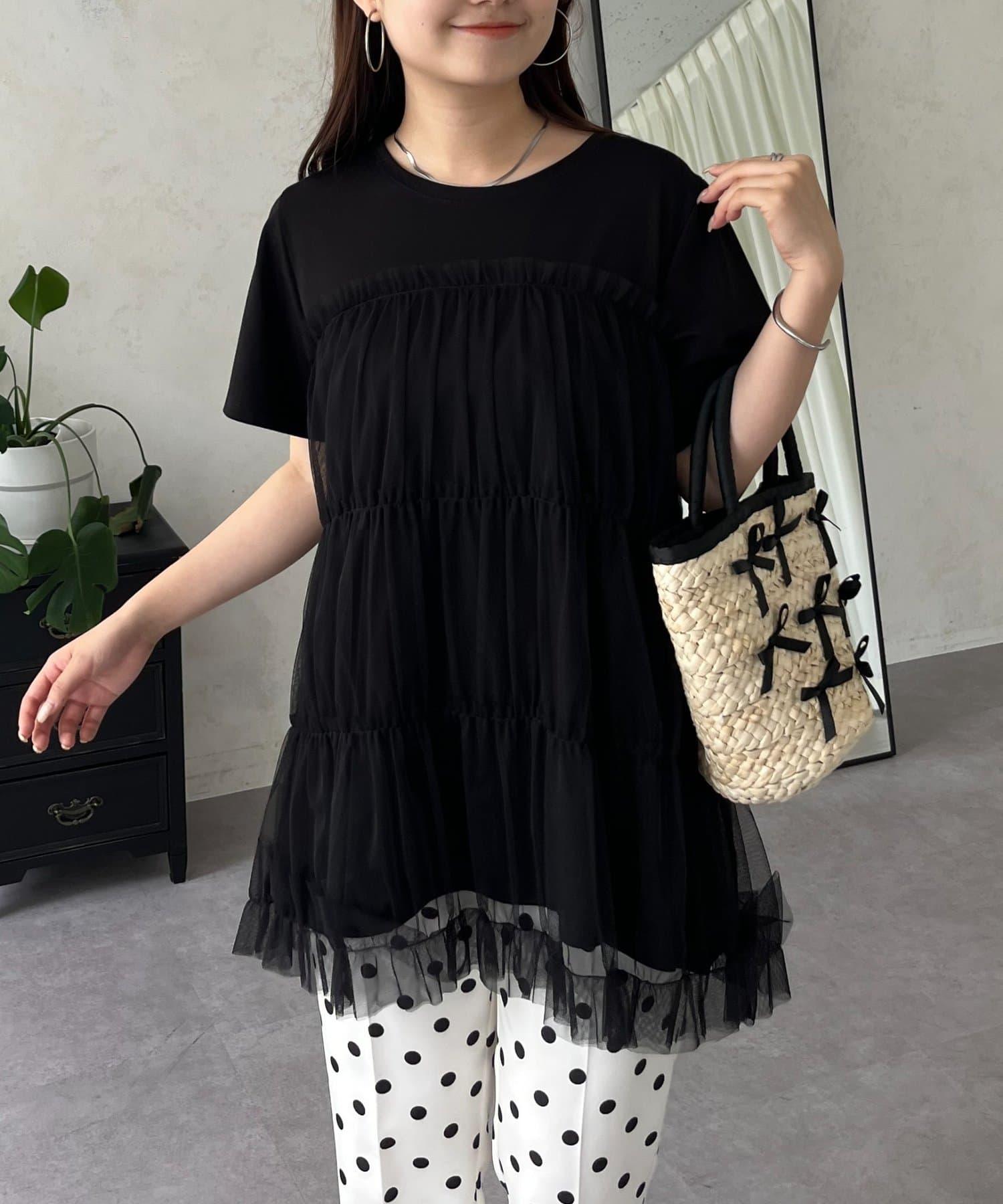 薄紗層疊設計的 T 恤,盡顯迷人風采。
